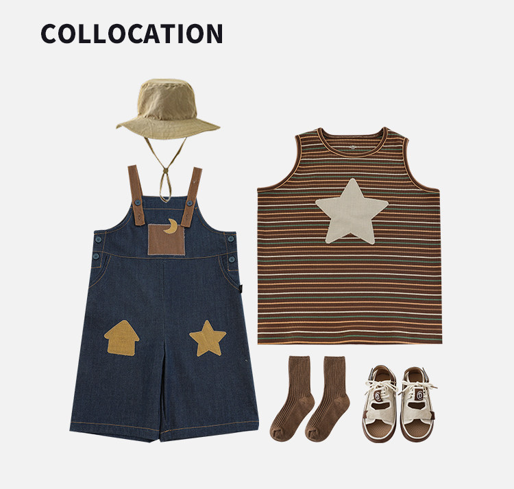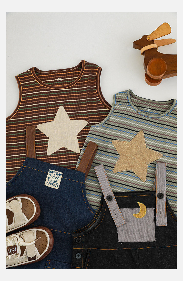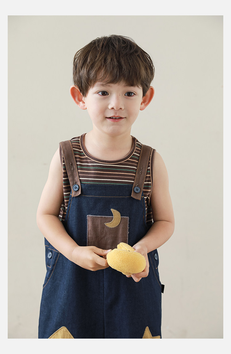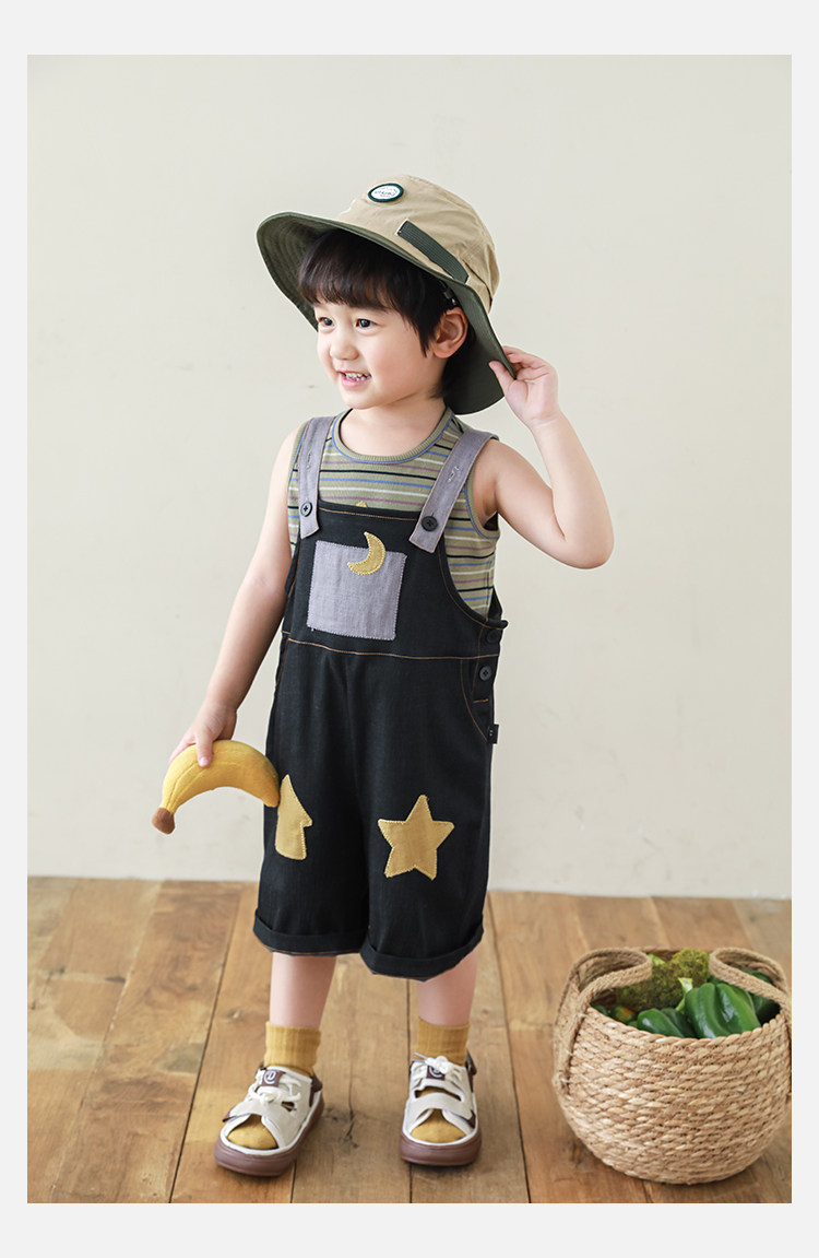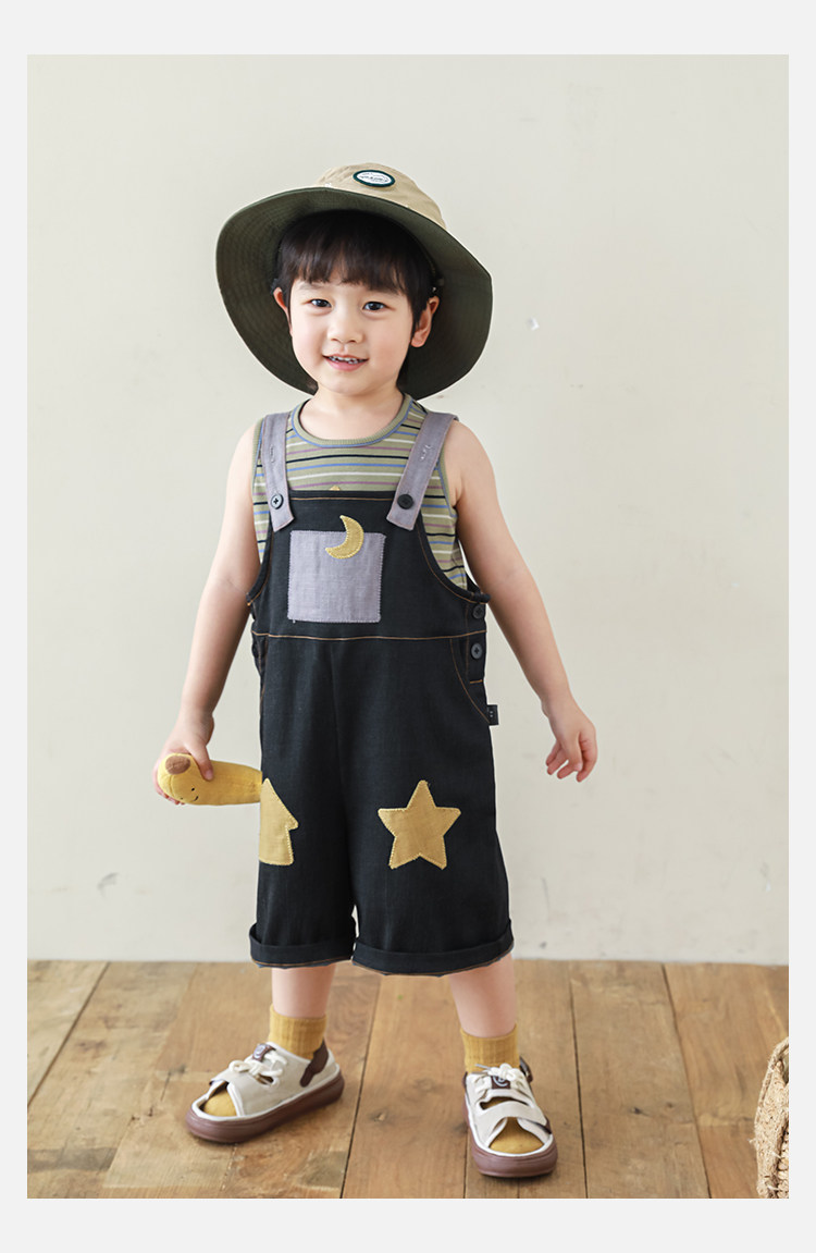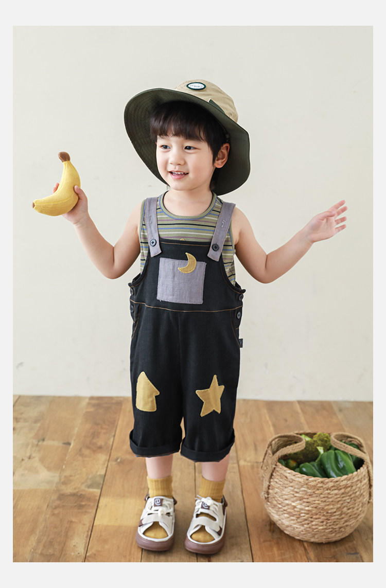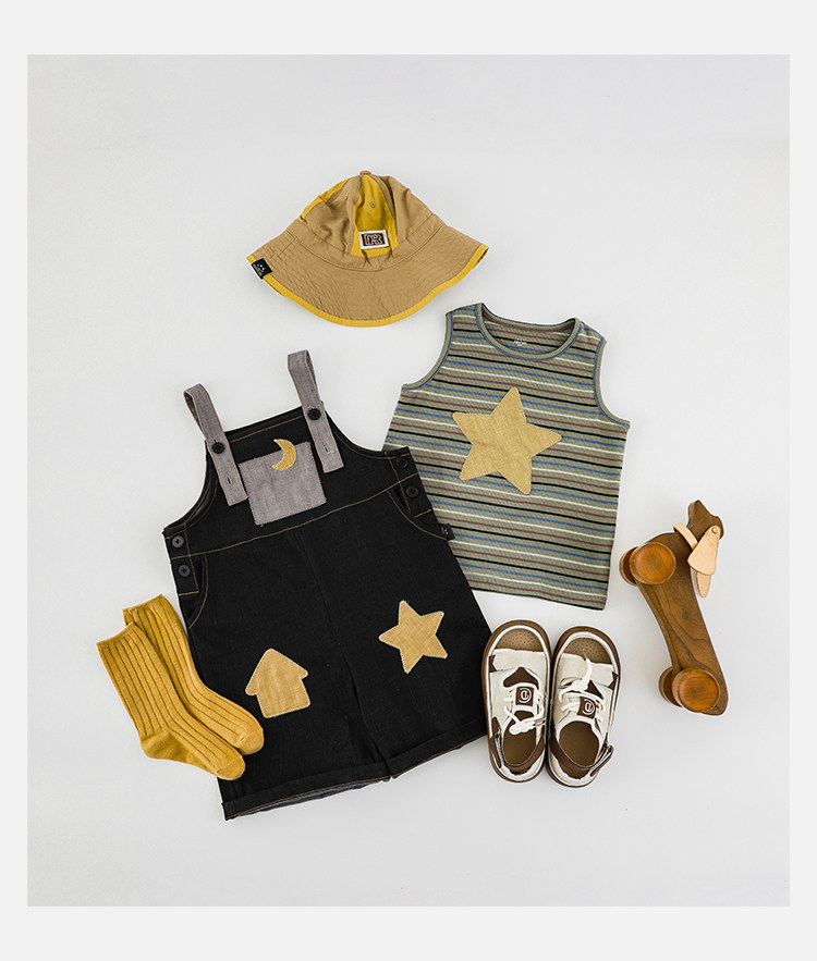 우리부이데님 남아용 작업복 바지 2026년 신상품 가볍고 통기성 좋은 별 패치가 있는 스타일리쉬한 아동 바지 트렌디