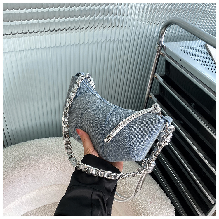 데님 컬러 시리즈 여성용 소형 가방 하이 엔드 언더암 체인 백 간단한 유행 질감 올 매치 숄더 크로스 바디 백스토어 가기