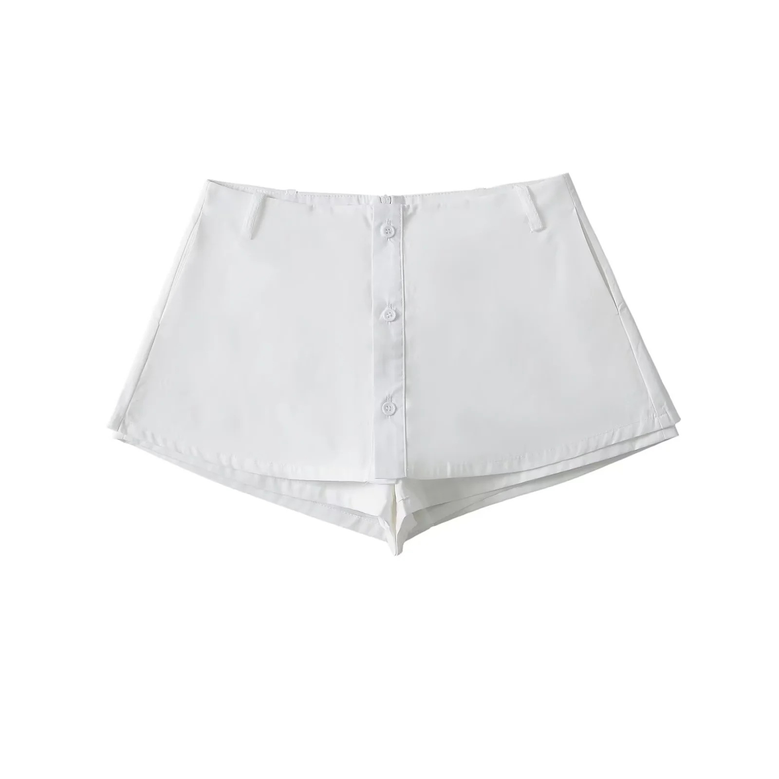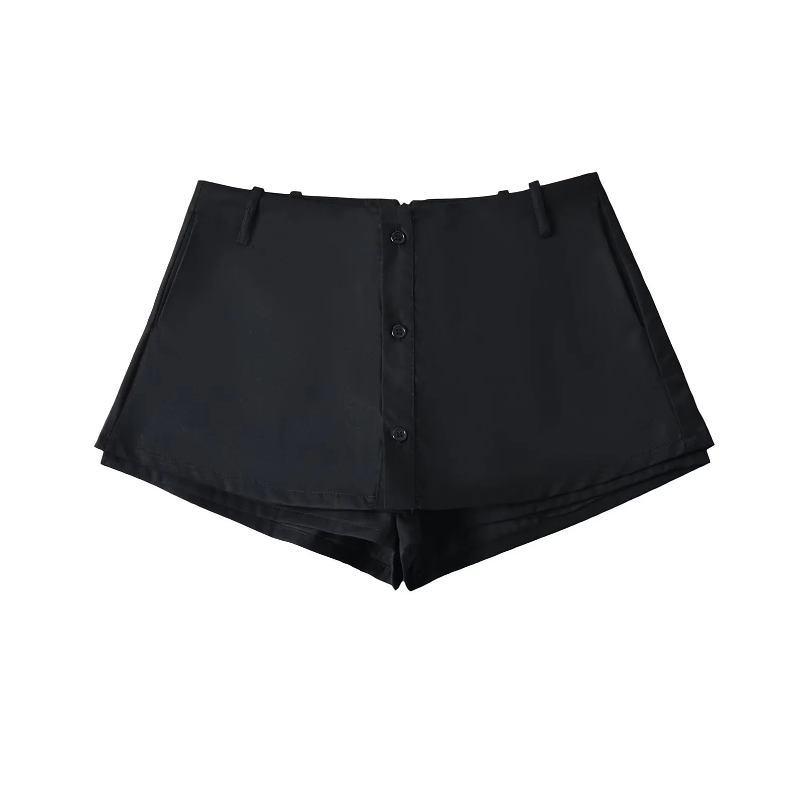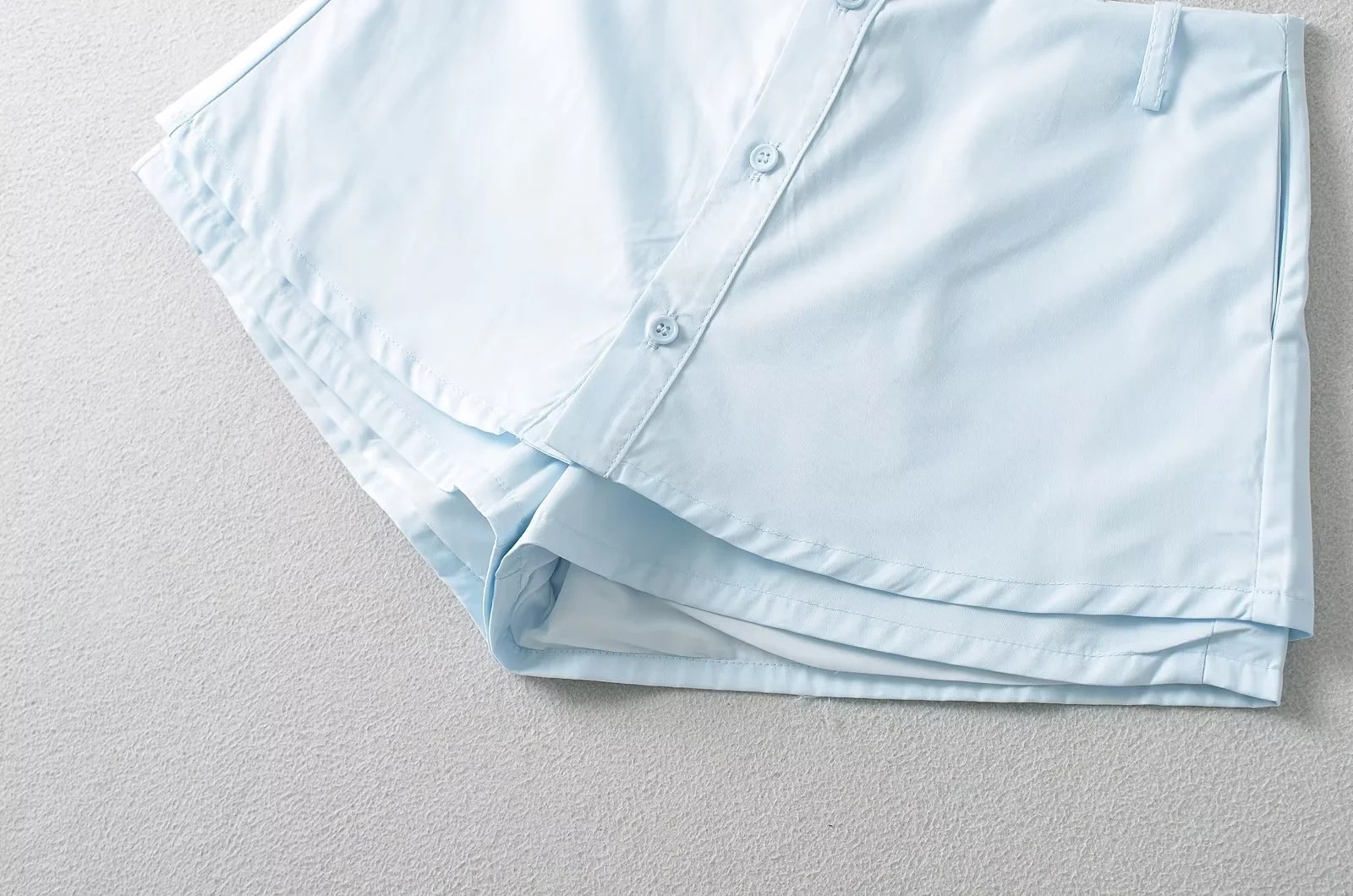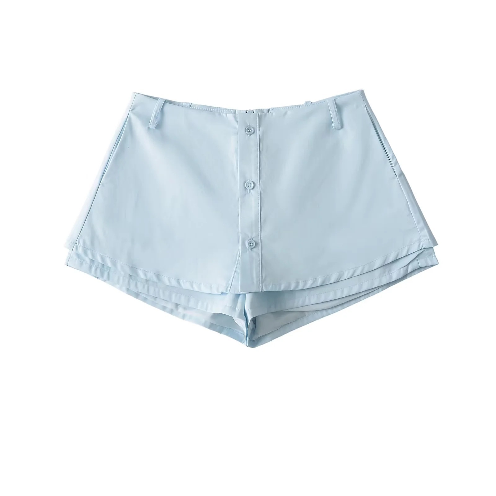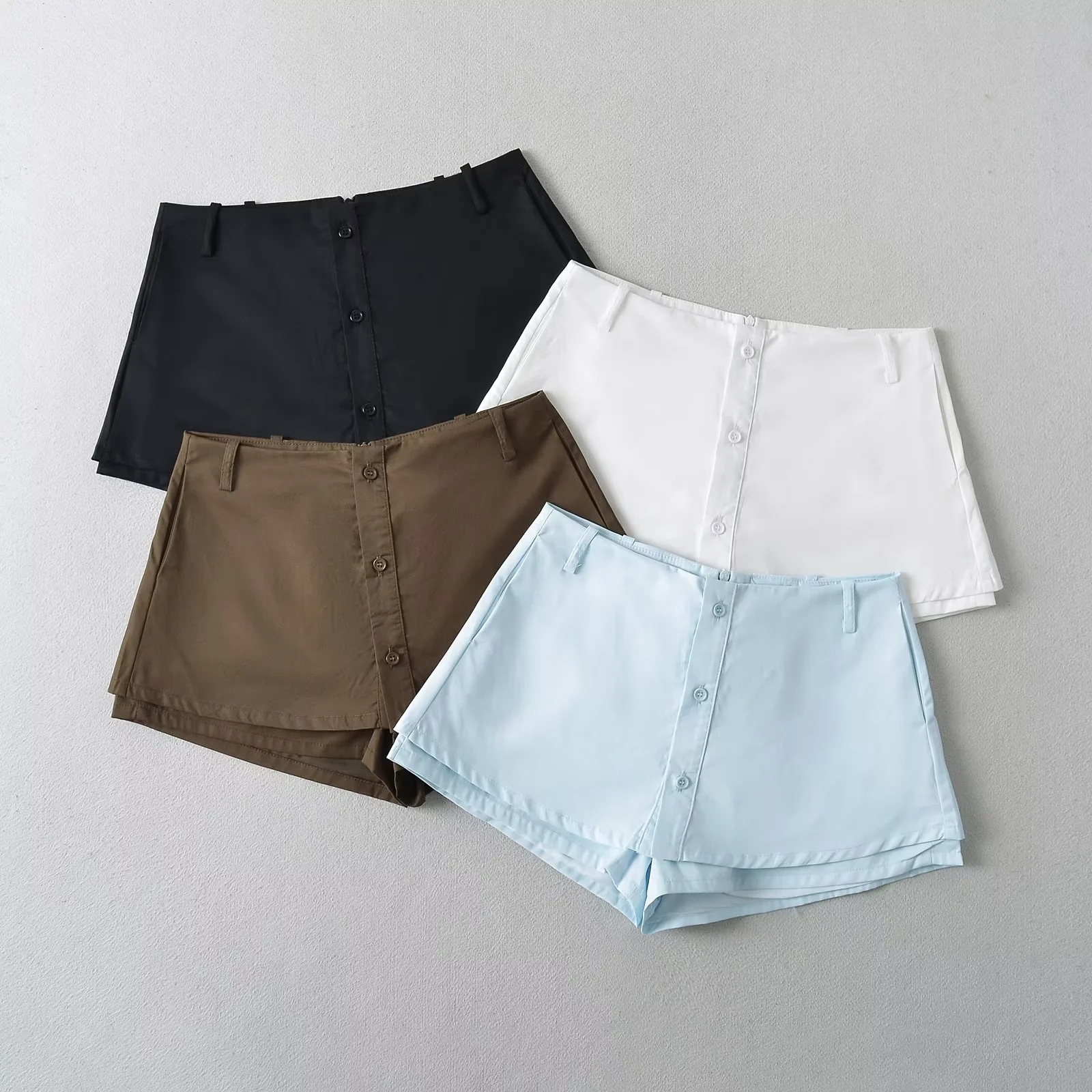 2024 여름 새로운 여성 의류 대학 스타일의 가짜 투피스 버튼 눈부심 방지 뜨거운 소녀 높은 허리 미니 A 라인 스커트