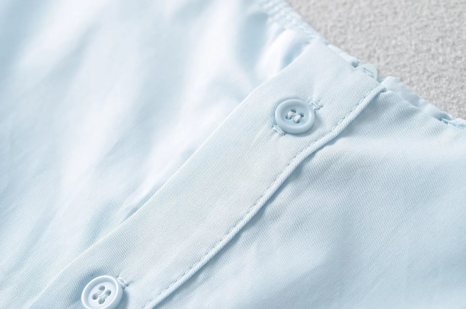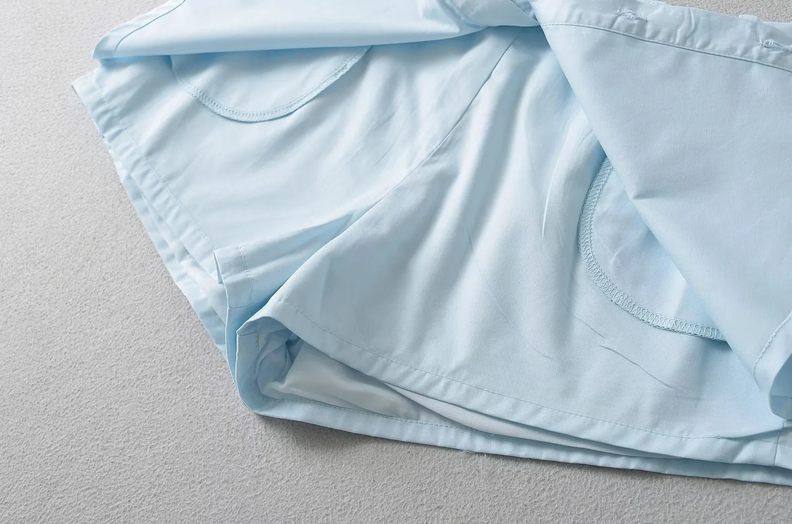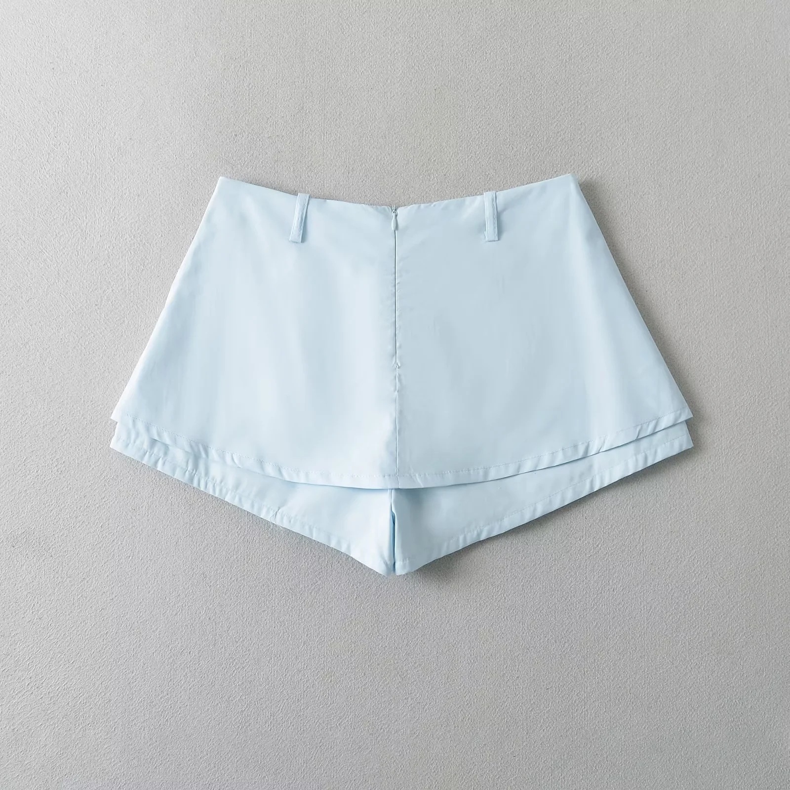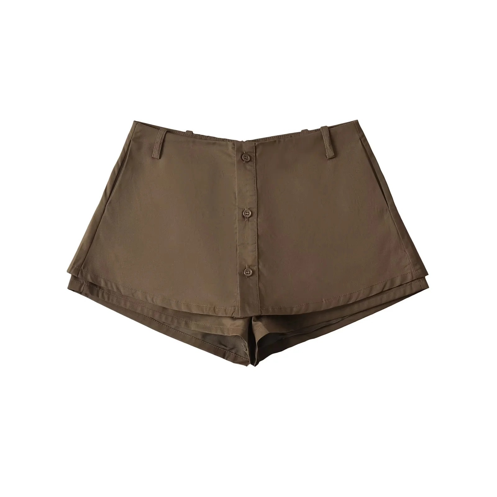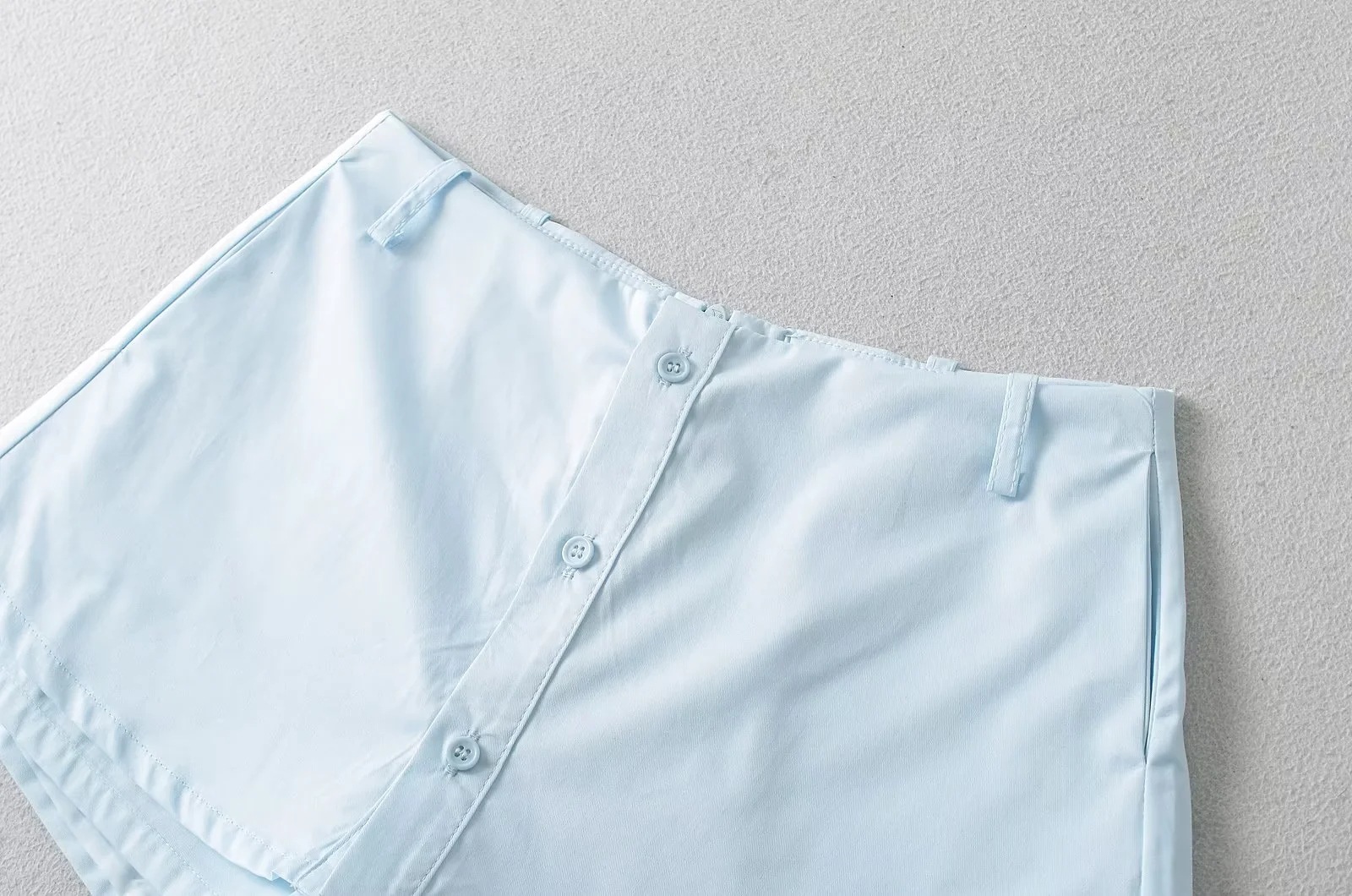 2024 여름 새로운 여성 의류 대학 스타일의 가짜 투피스 버튼 눈부심 방지 뜨거운 소녀 높은 허리 미니 A 라인 스커트