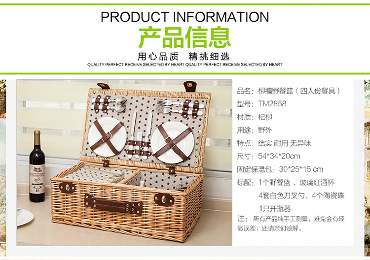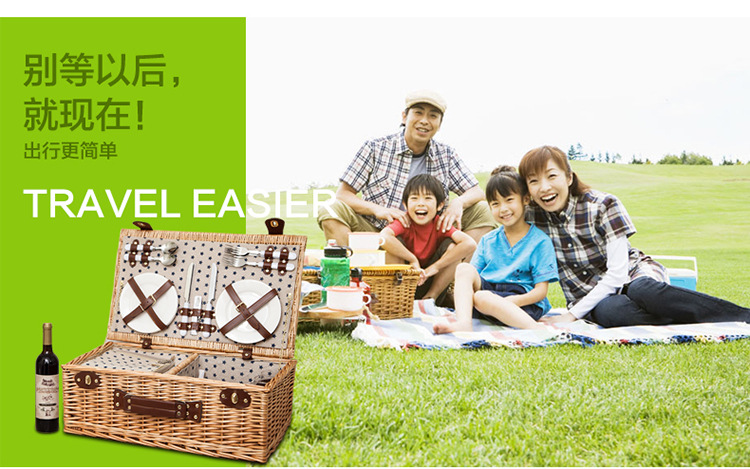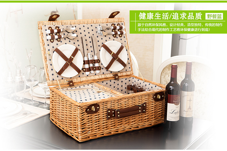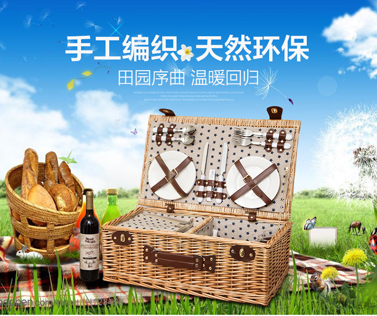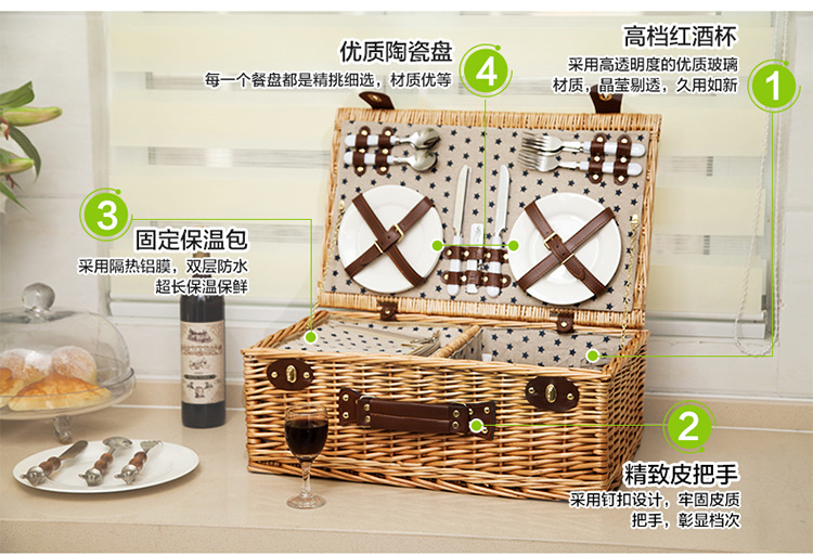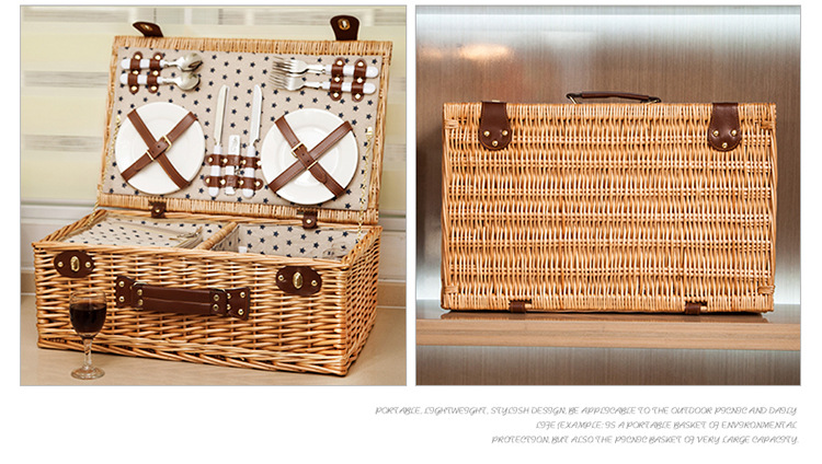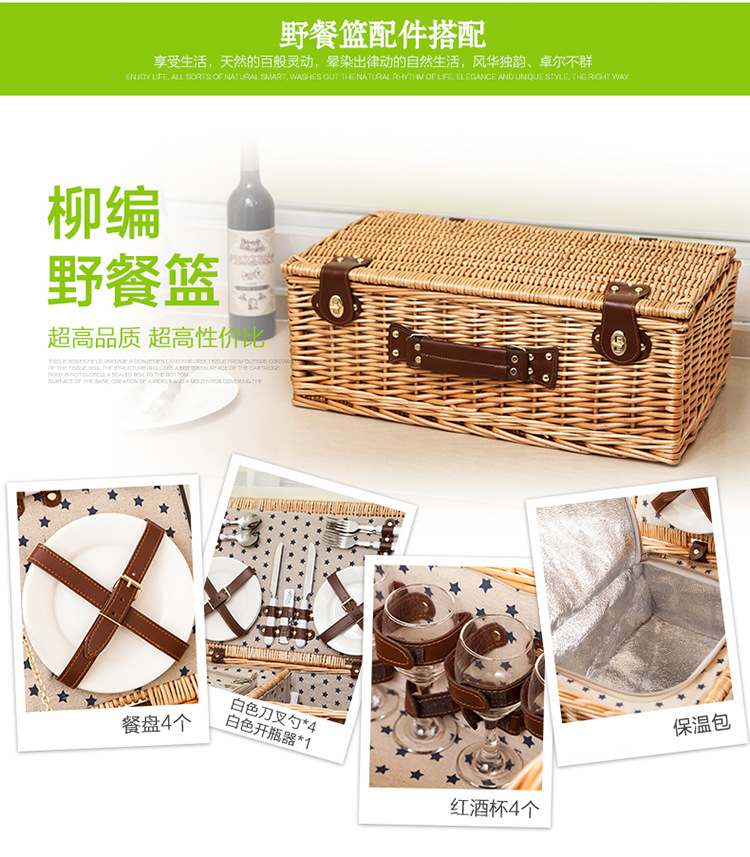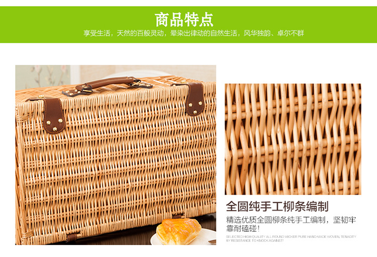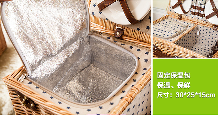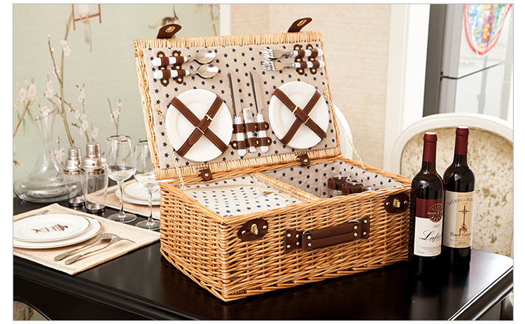 대외 무역 맞춤형 등나무 피크닉 바구니, 버드나무 수납 바구니, 과일 바구니, 식기류가 포함된 보온 휴대용 바구니, 피크닉 바구니 도매스토어 가기