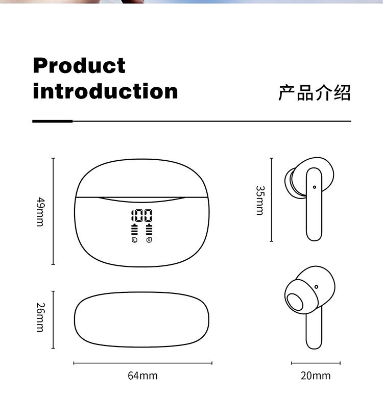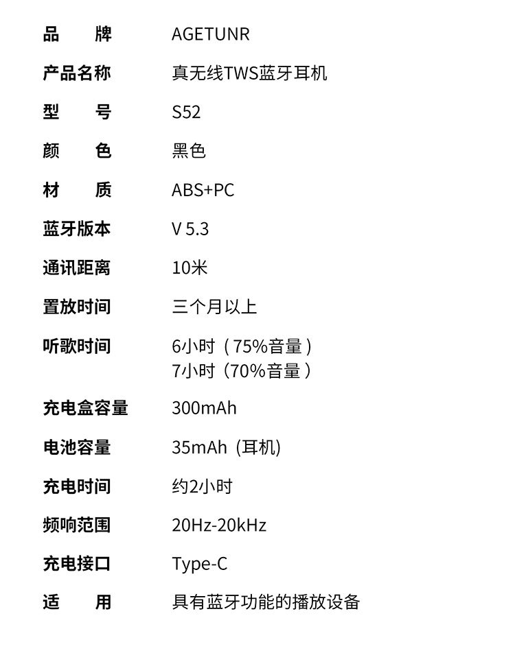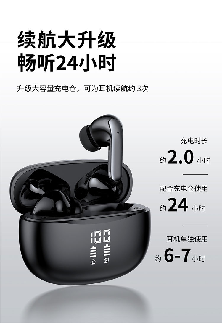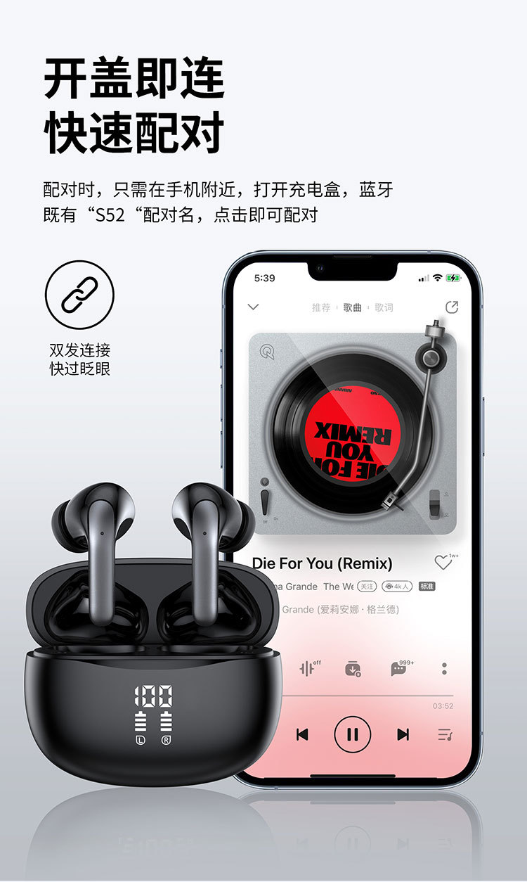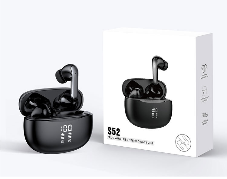 S52 소프트 플러그 인 이어 블루투스 헤드셋 긴 내구성 무선 TWS 영화관 음질 소음 감소 및 귀 통증