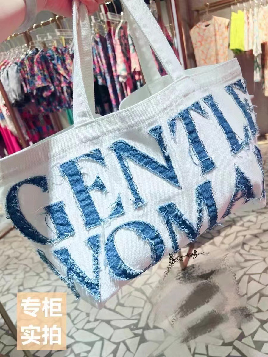 데님 가방 태국 트렌드 브랜드 대용량 핸드백 레터링 백 숄더백 데님 레터링 패치 백 스트리트 패션스토어 가기