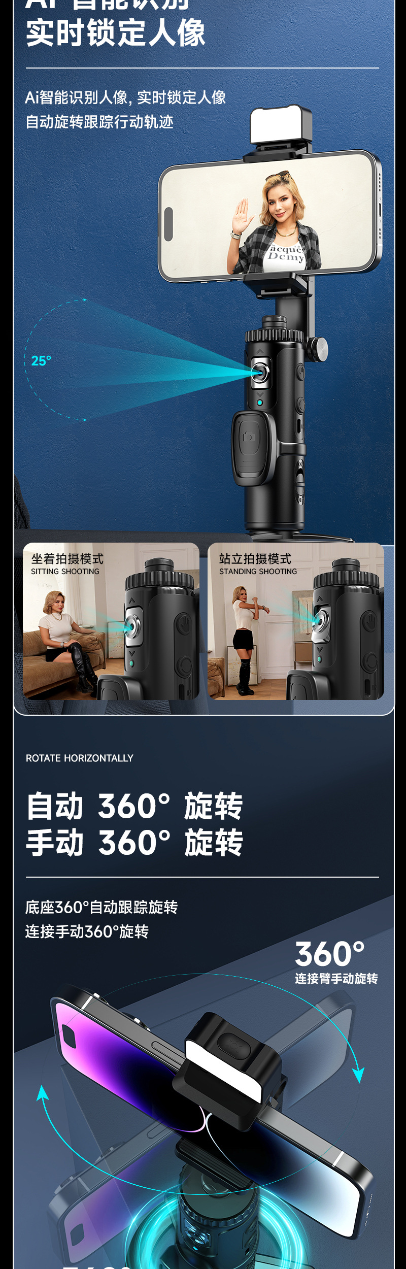 쌓인 A300 데스크톱 휴대 전화 후속 Yuntai 쉐이크 음성 라이브 잠금 AI 얼굴 인식 후속 브래킷 360