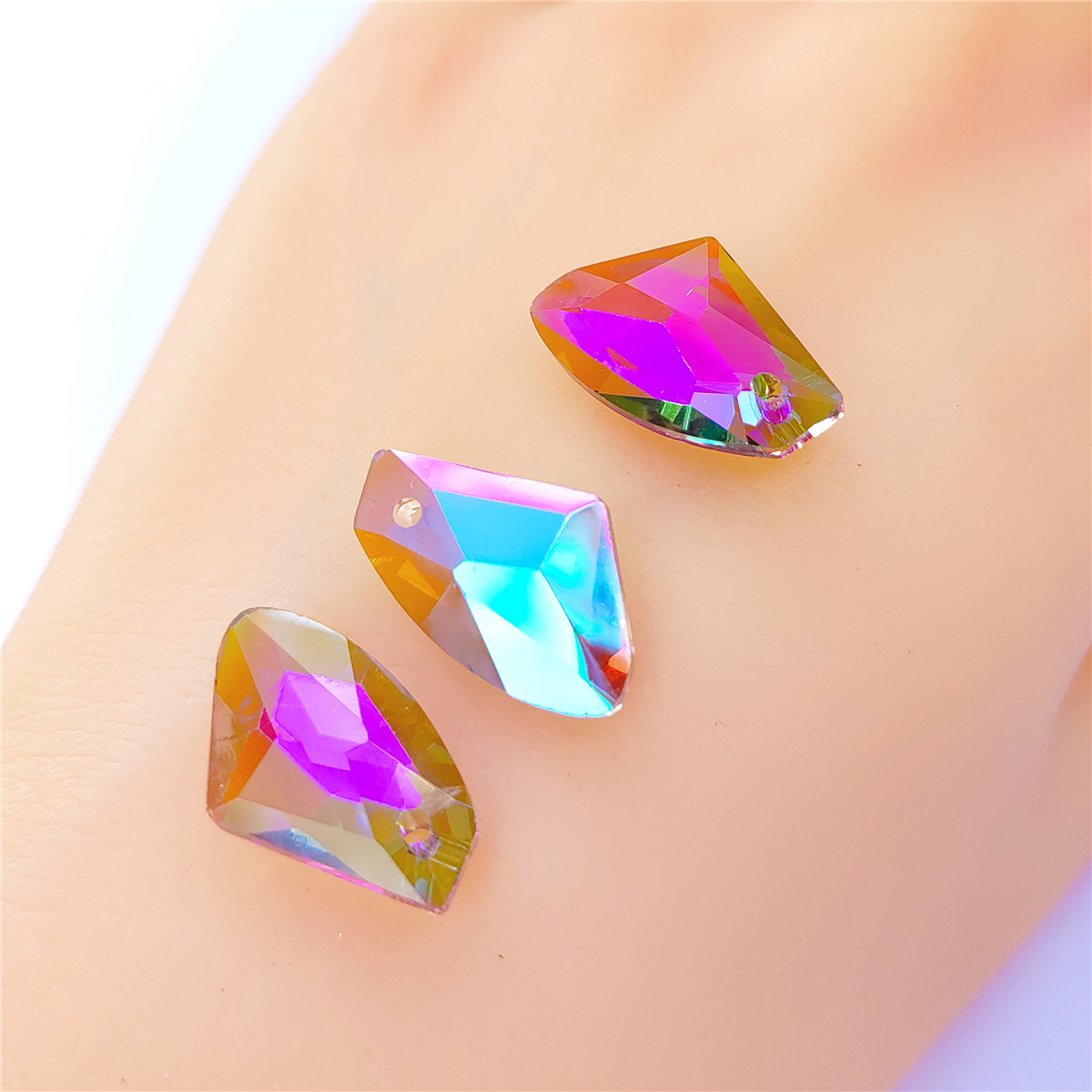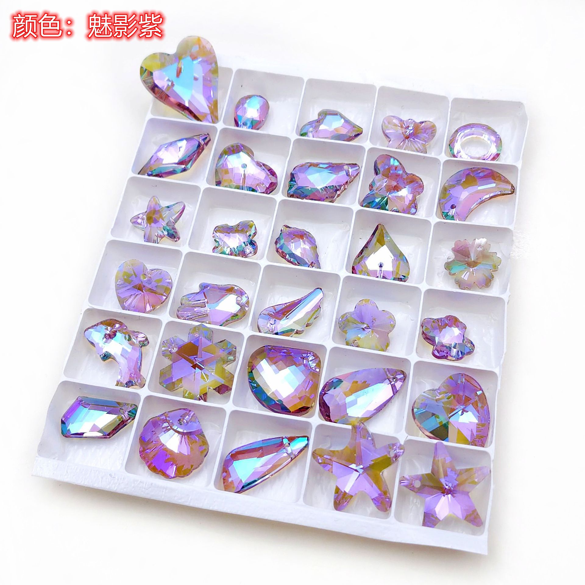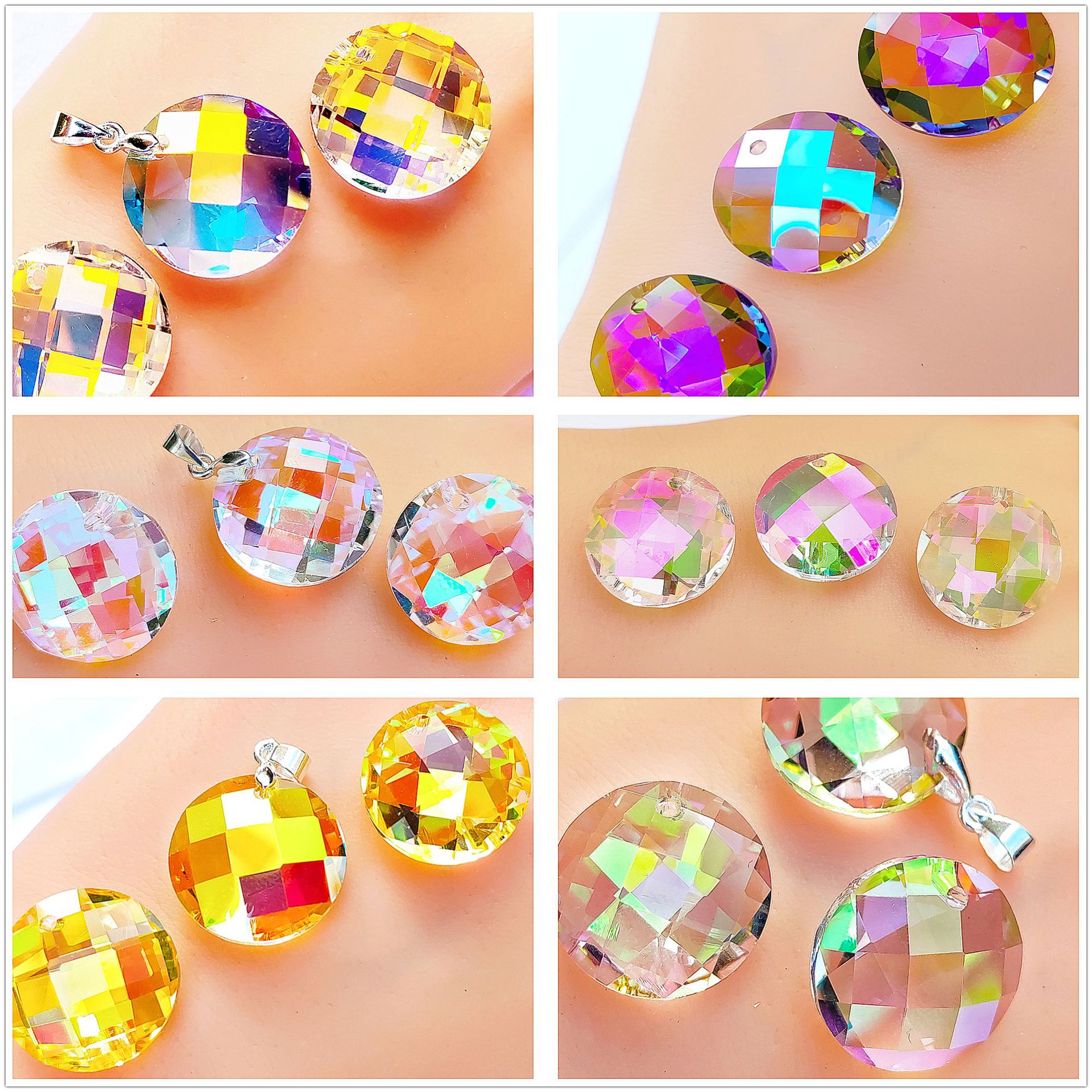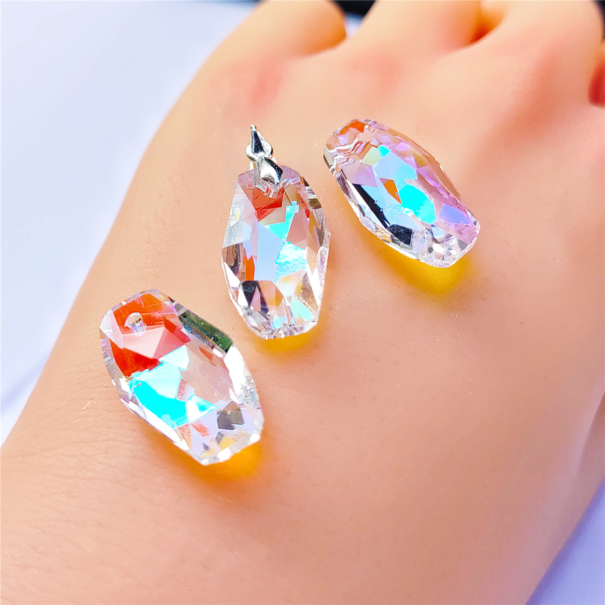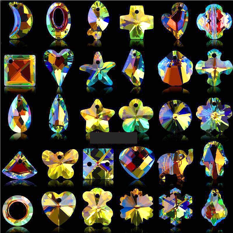 여러 크리스탈 펜던트의 배치 전기 도금 오로라 매직 비즈 diy 액세서리 단일 구멍 유리 구슬 팔찌 소재스토어 가기