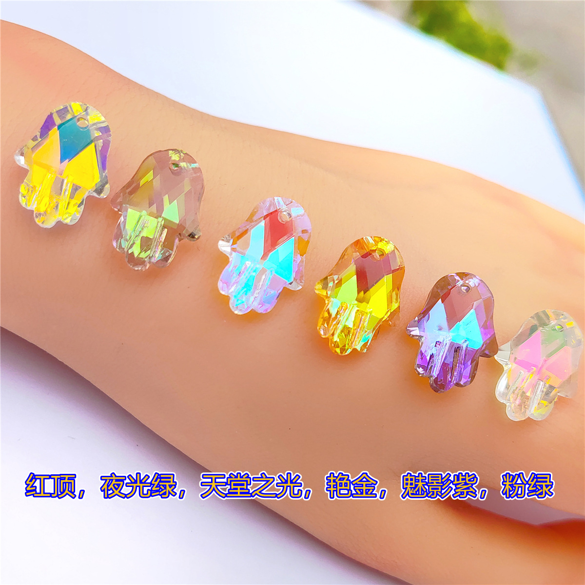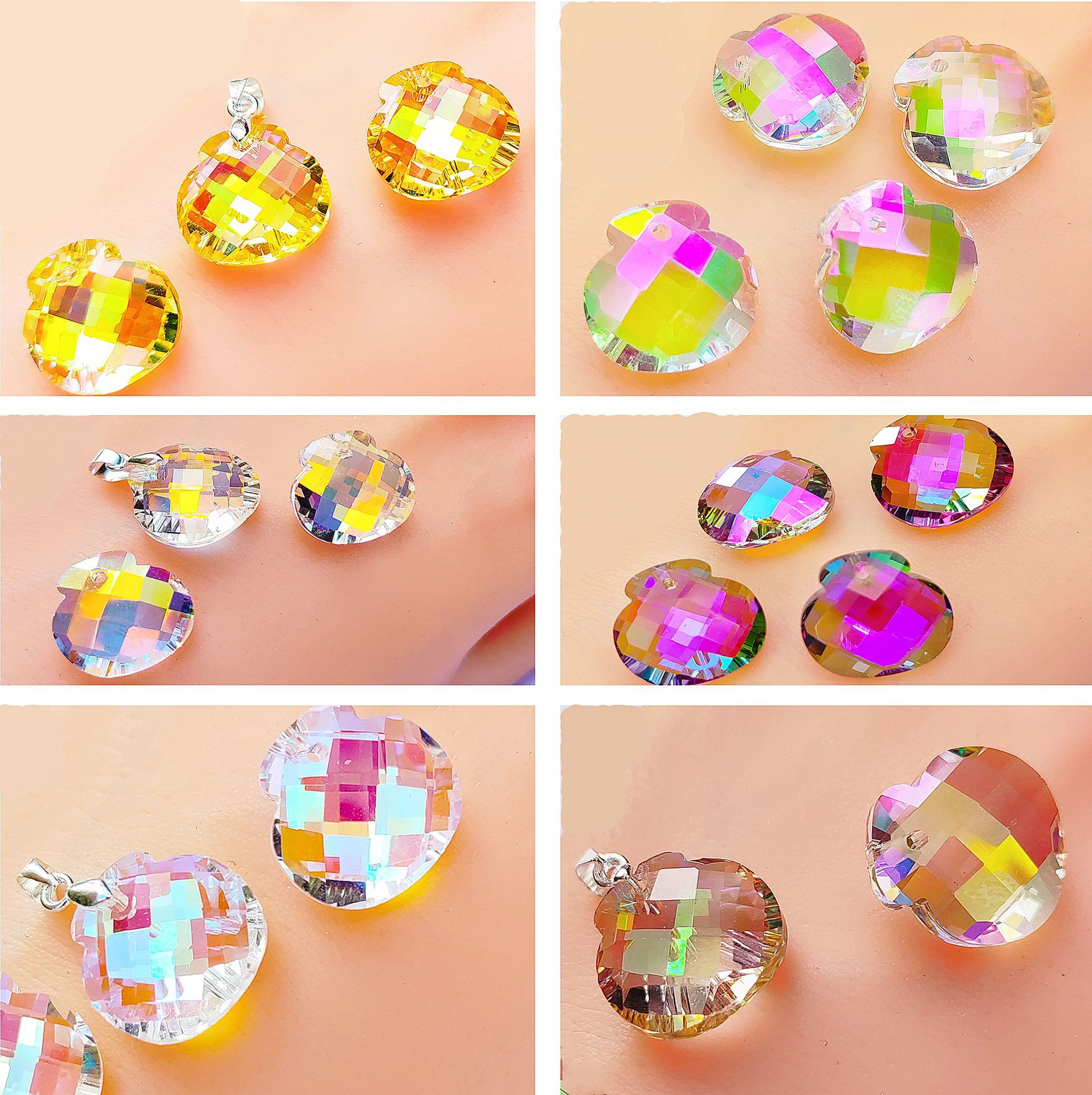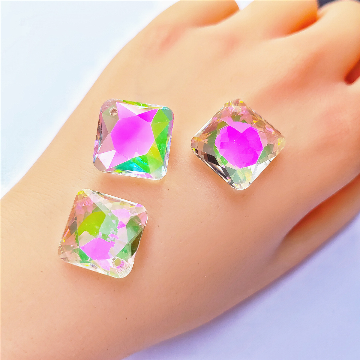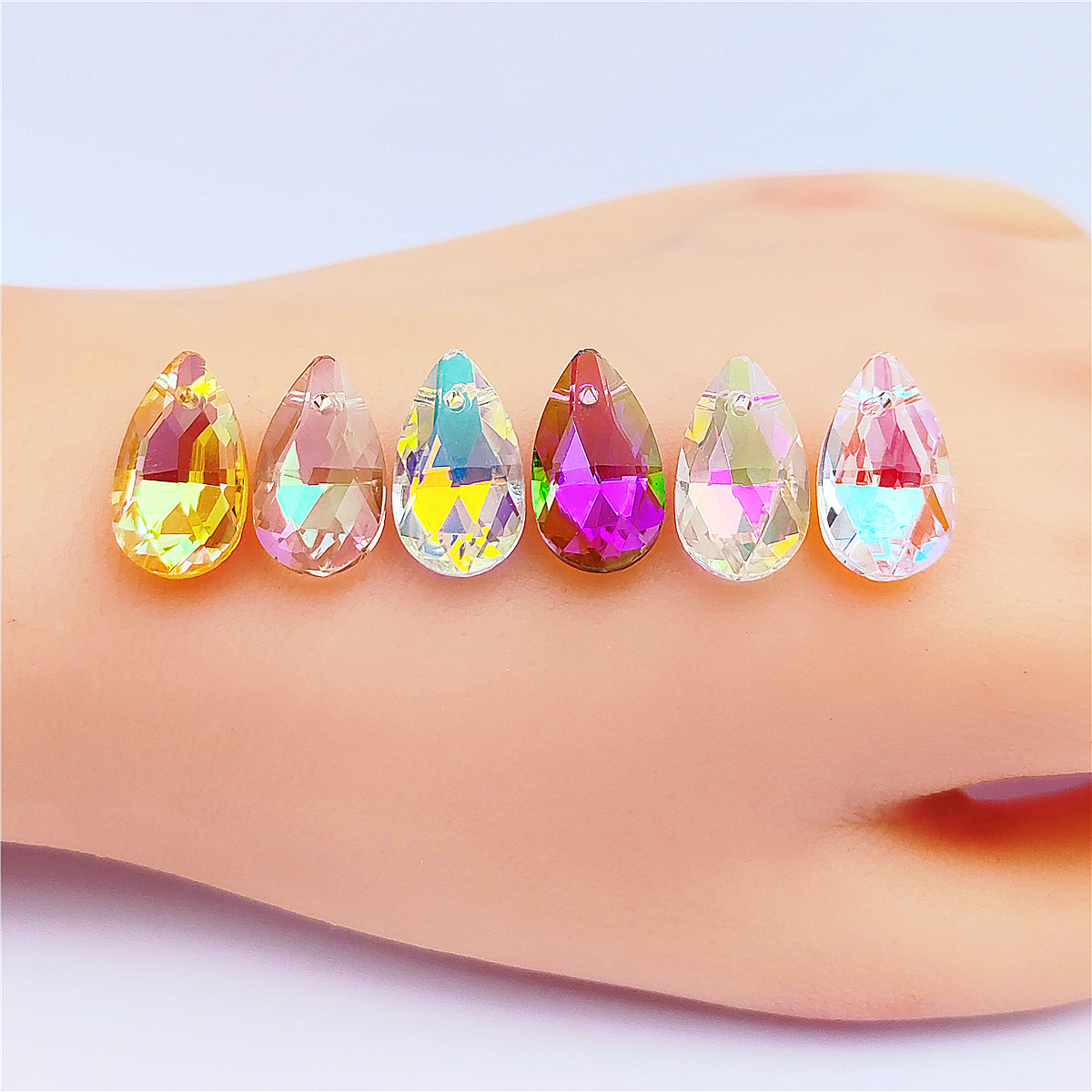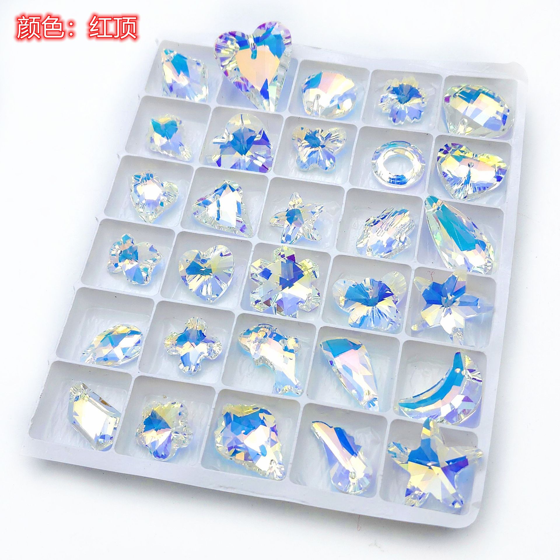 여러 크리스탈 펜던트의 배치 전기 도금 오로라 매직 비즈 diy 액세서리 단일 구멍 유리 구슬 팔찌 소재스토어 가기
