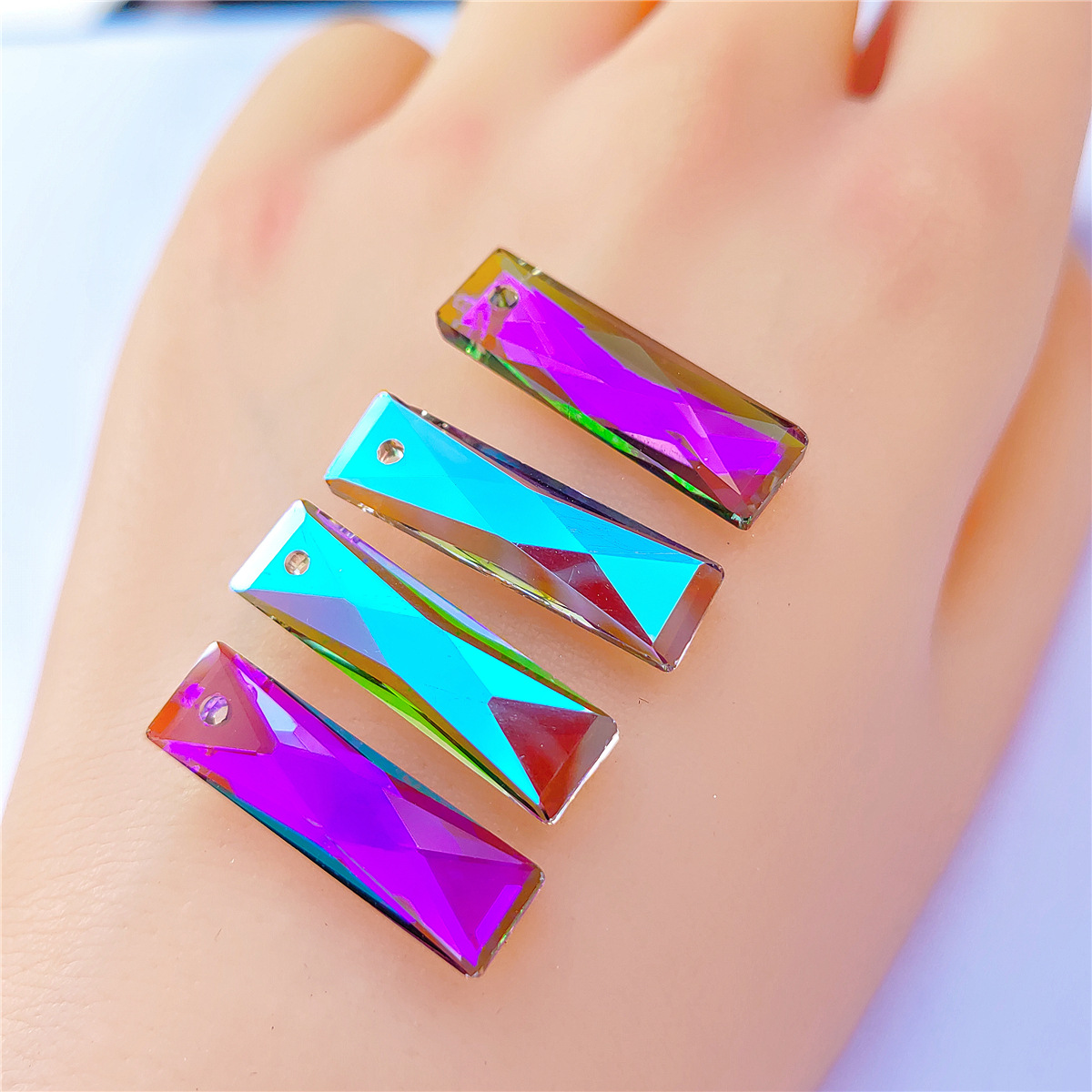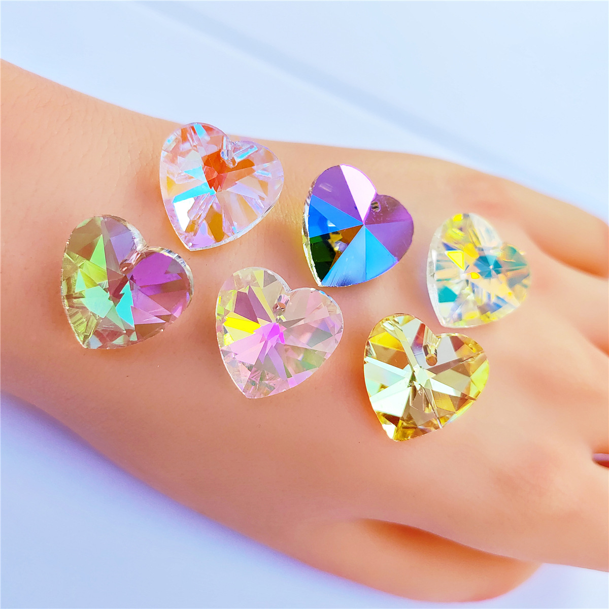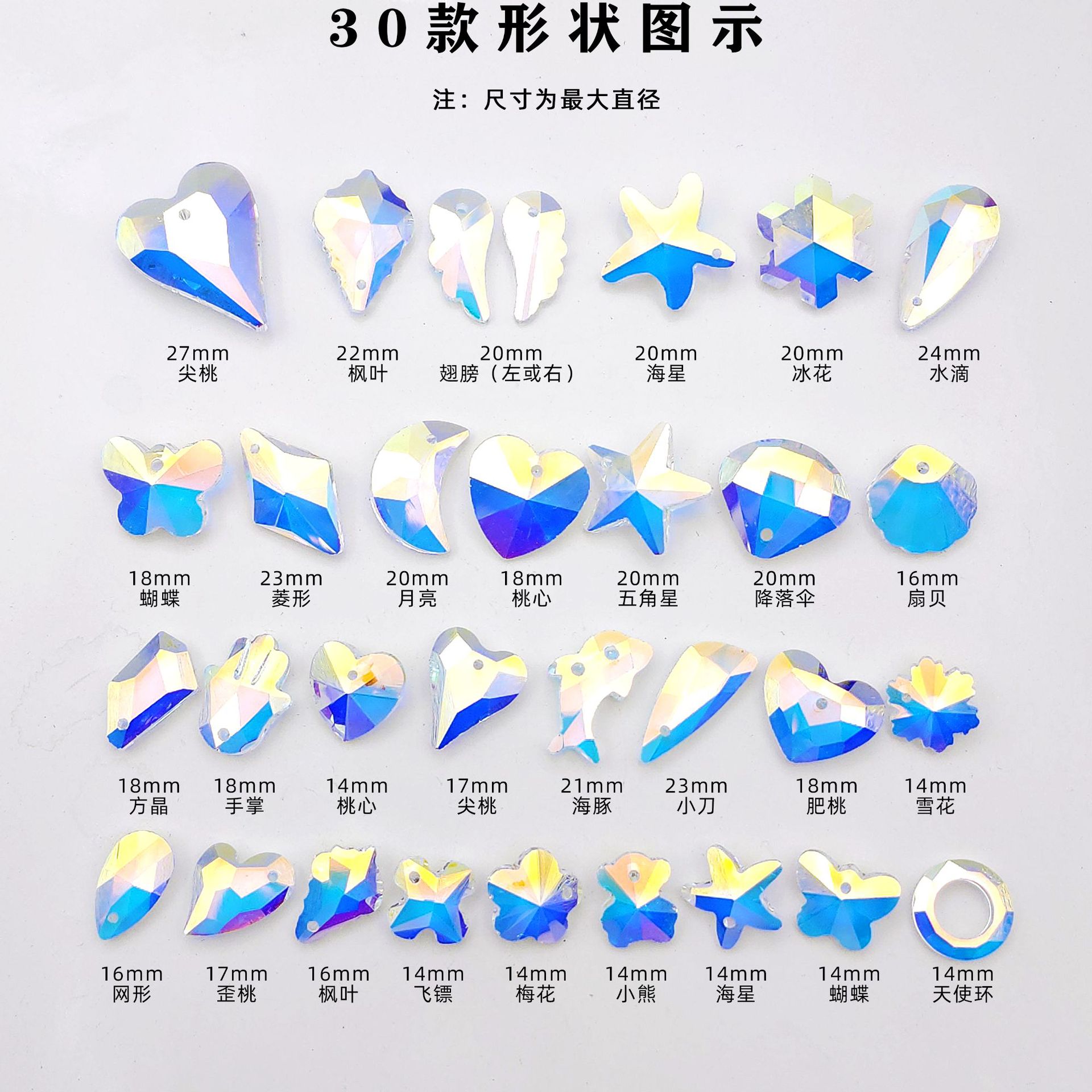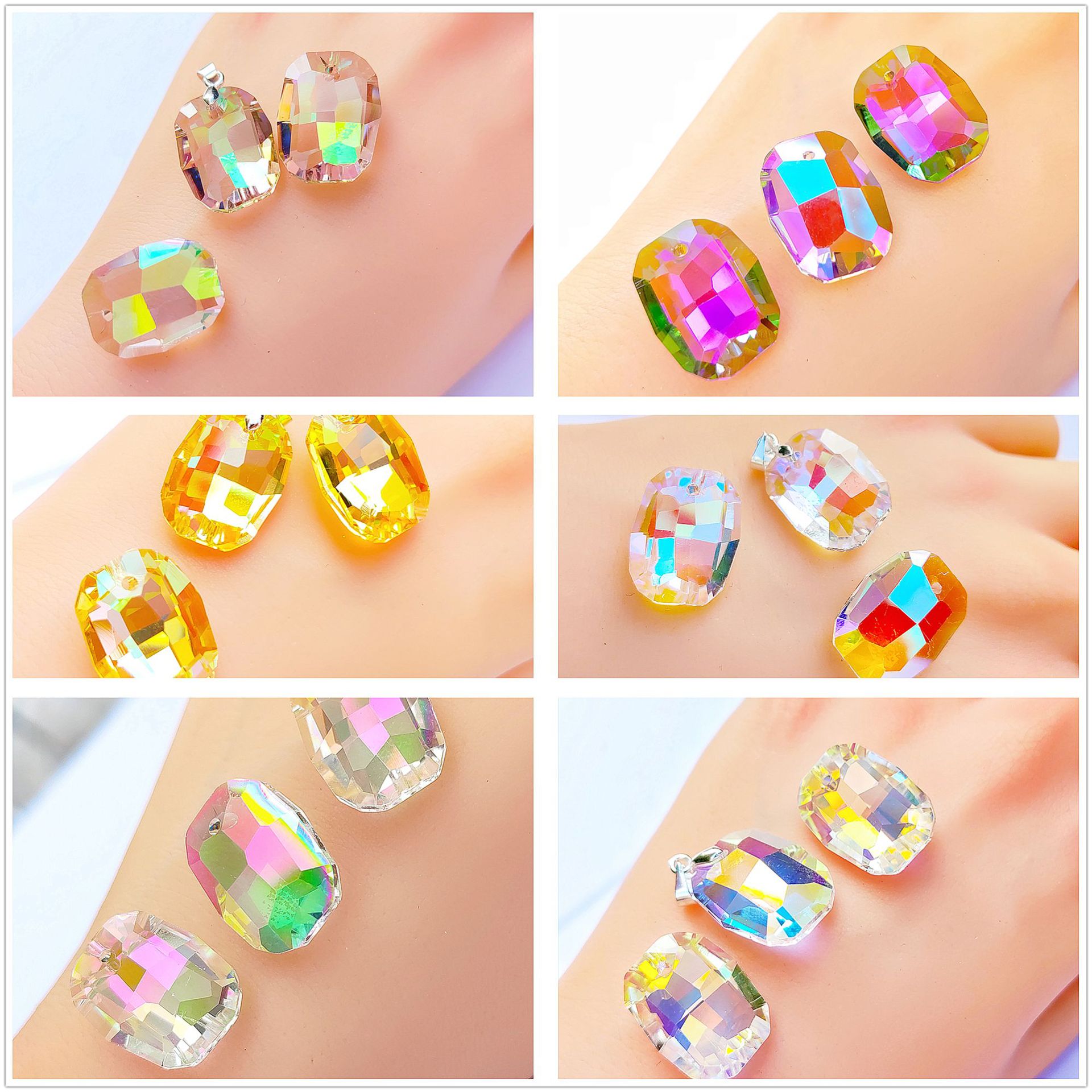 여러 크리스탈 펜던트의 배치 전기 도금 오로라 매직 비즈 diy 액세서리 단일 구멍 유리 구슬 팔찌 소재스토어 가기