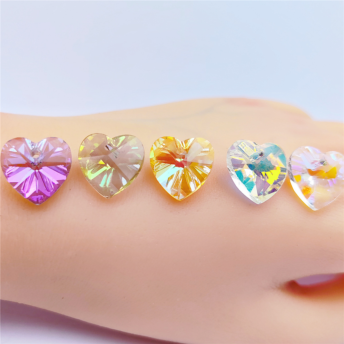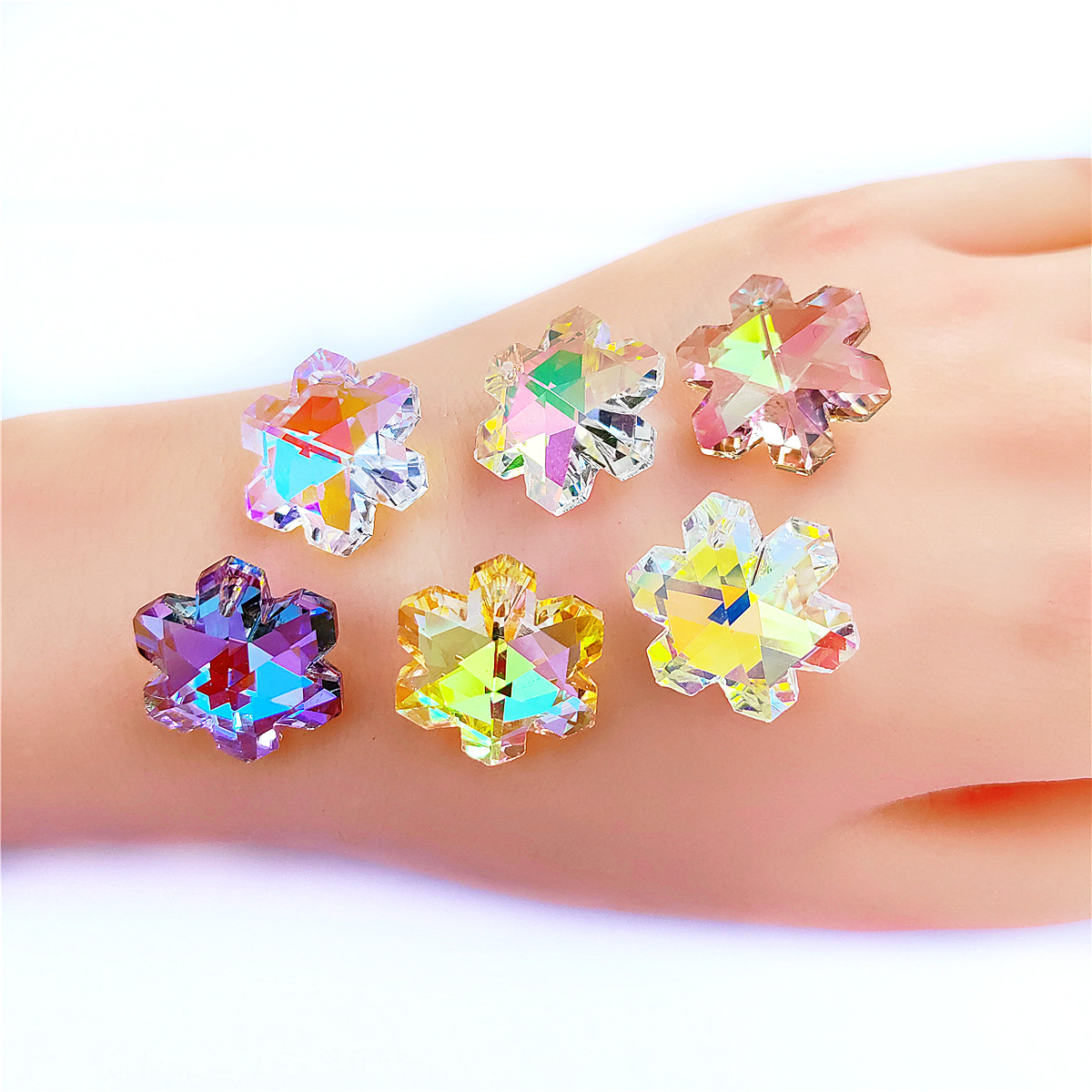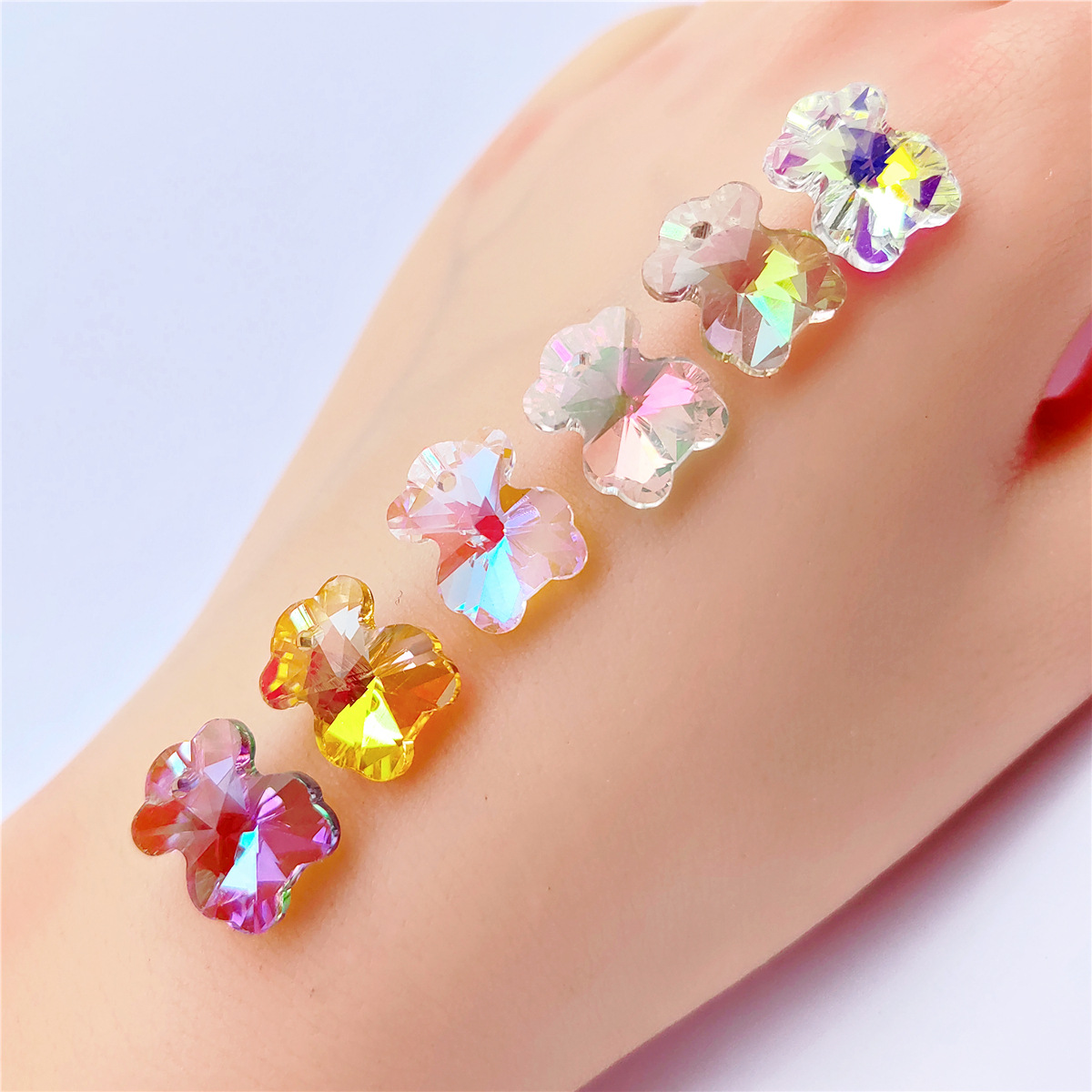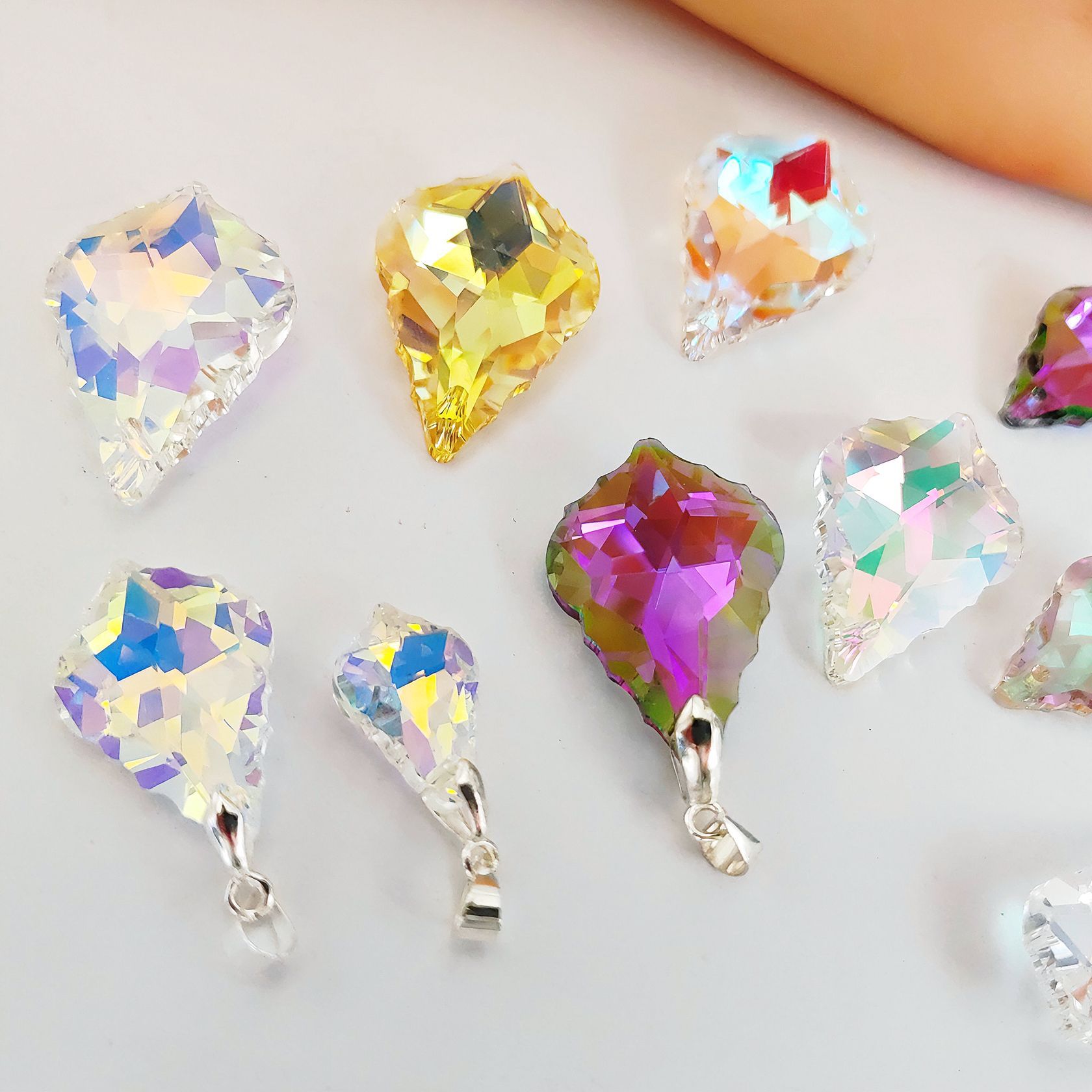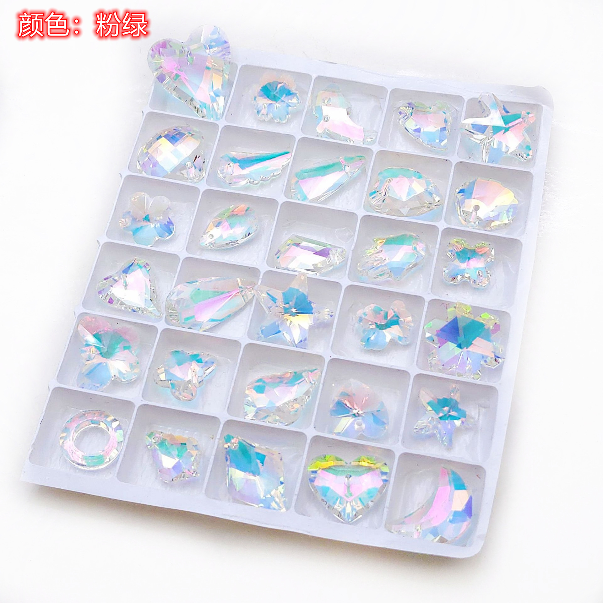 여러 크리스탈 펜던트의 배치 전기 도금 오로라 매직 비즈 diy 액세서리 단일 구멍 유리 구슬 팔찌 소재스토어 가기