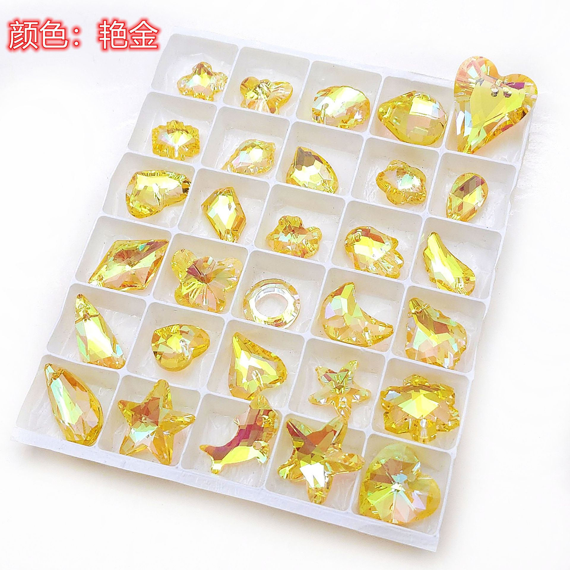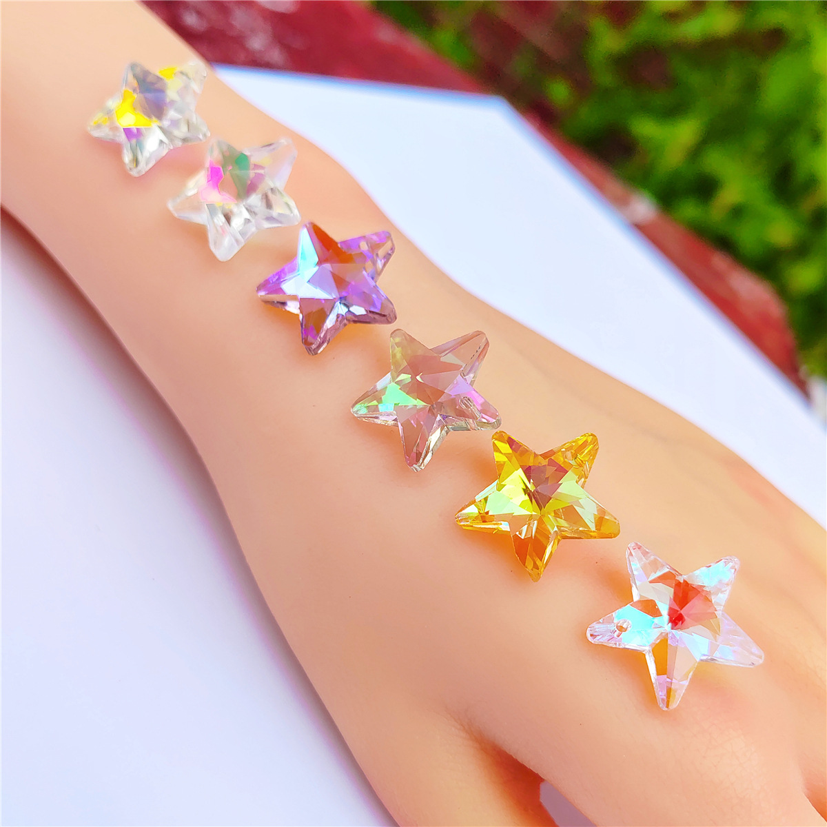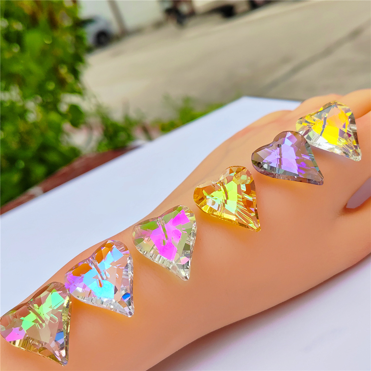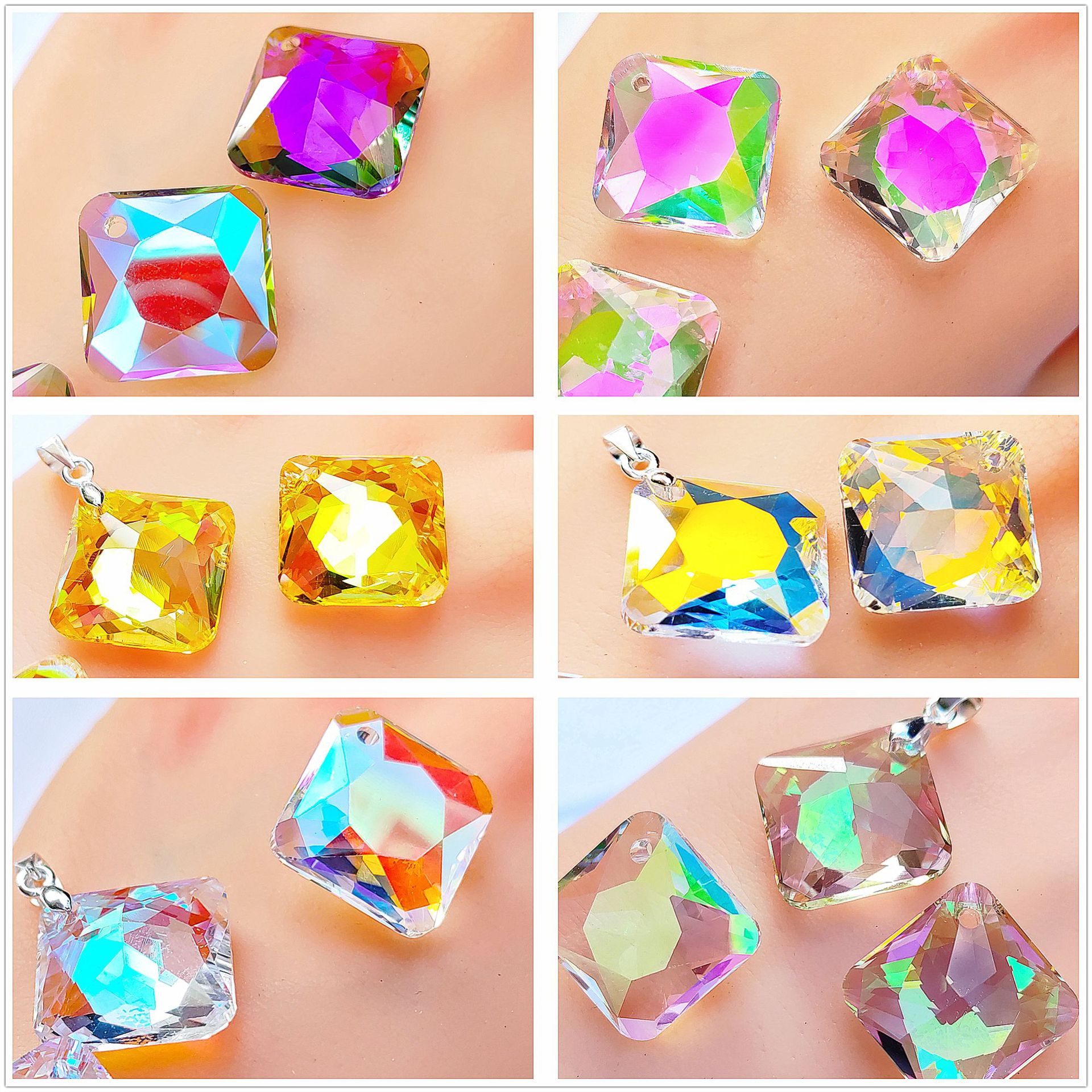 여러 크리스탈 펜던트의 배치 전기 도금 오로라 매직 비즈 diy 액세서리 단일 구멍 유리 구슬 팔찌 소재스토어 가기