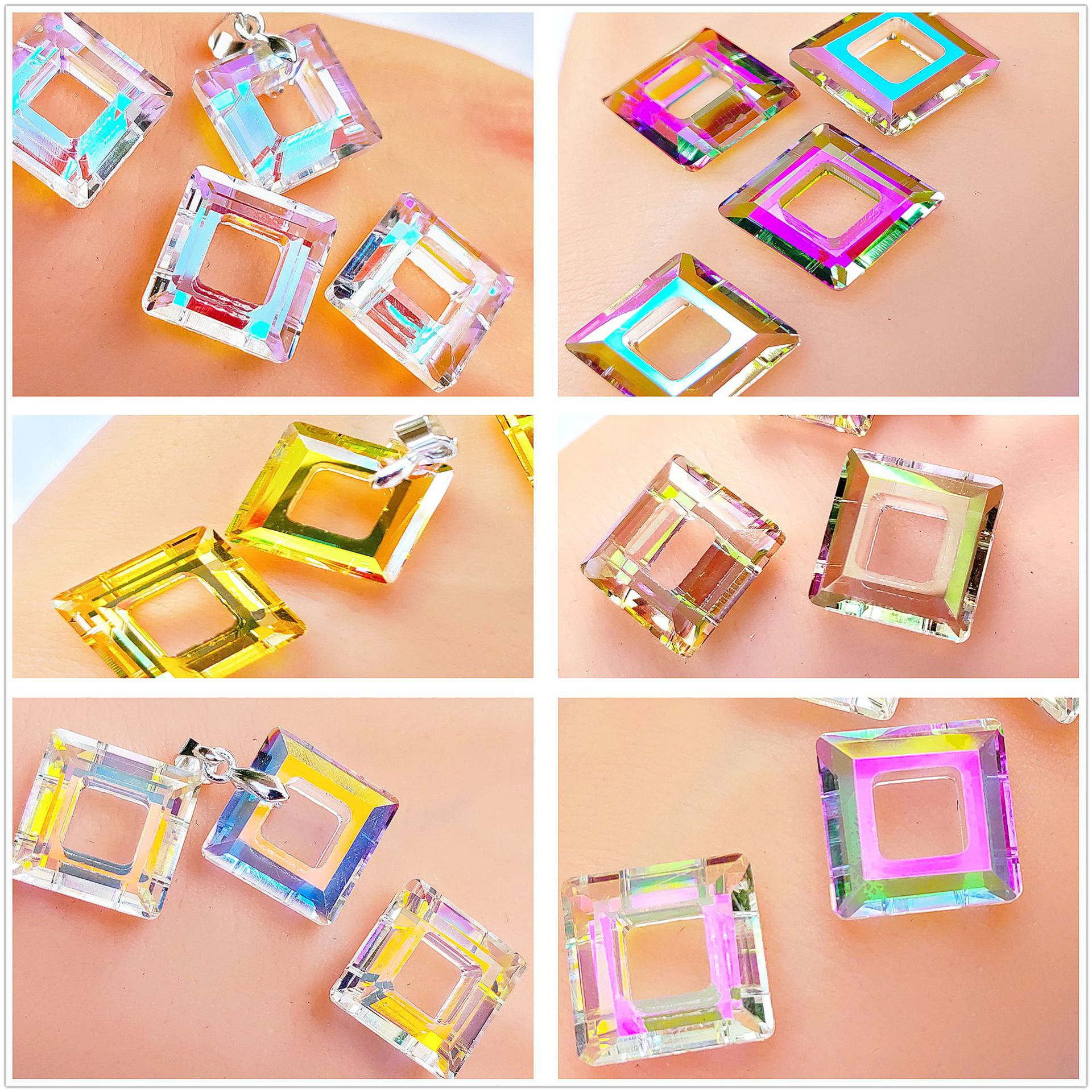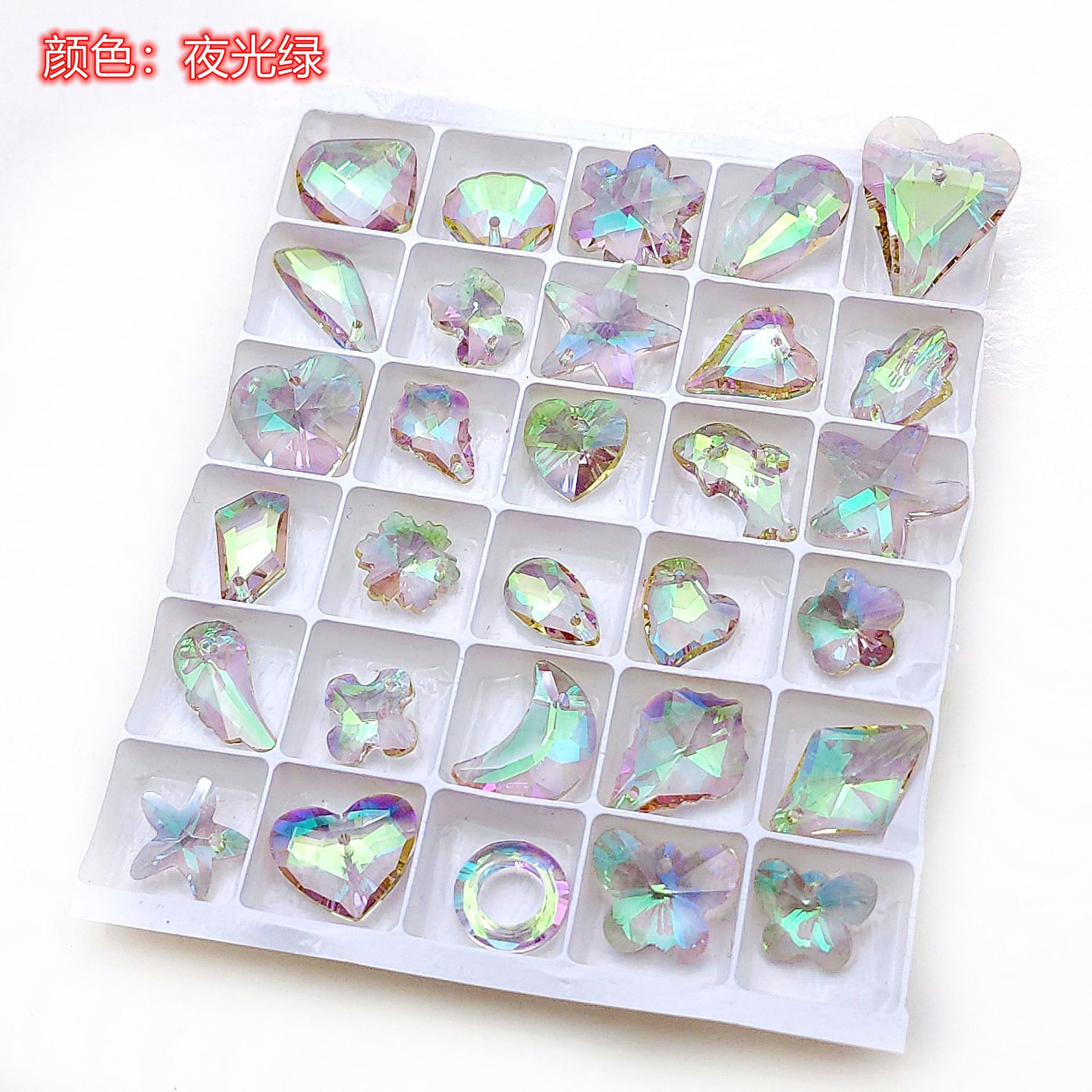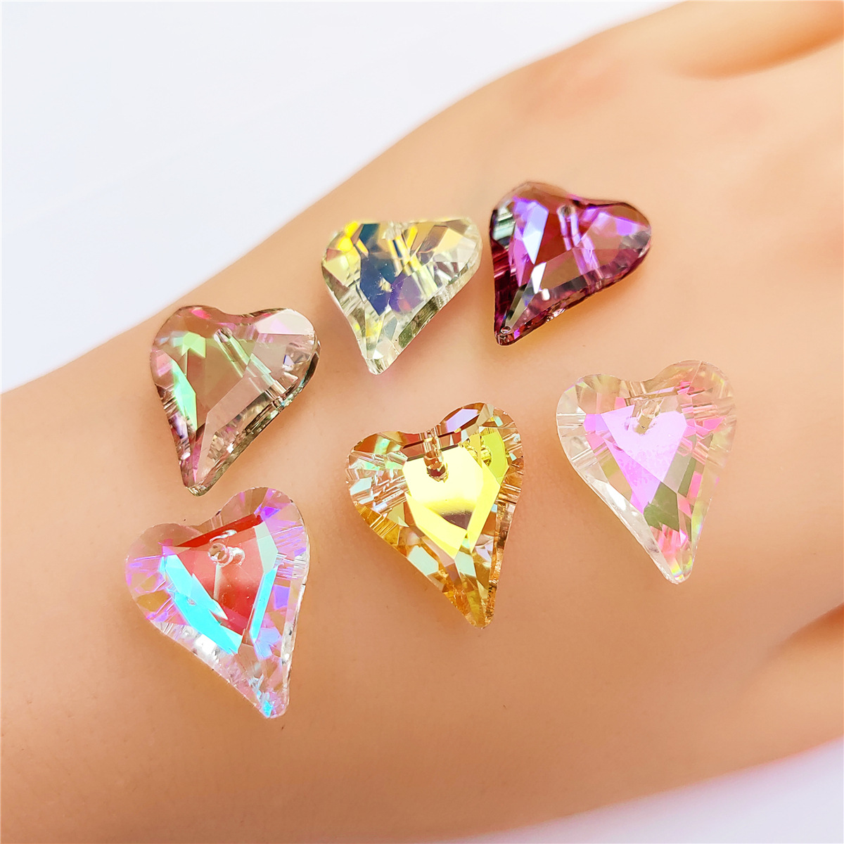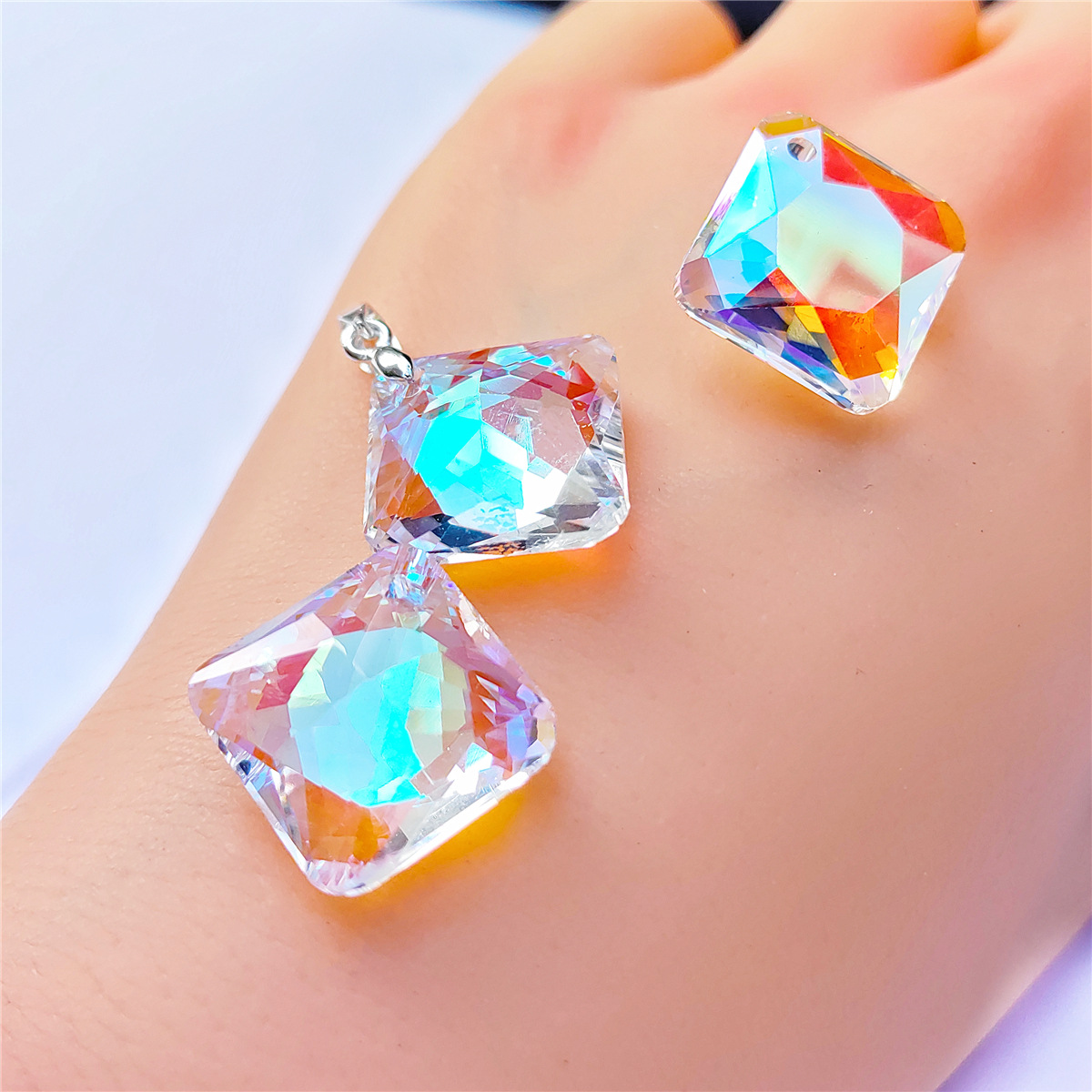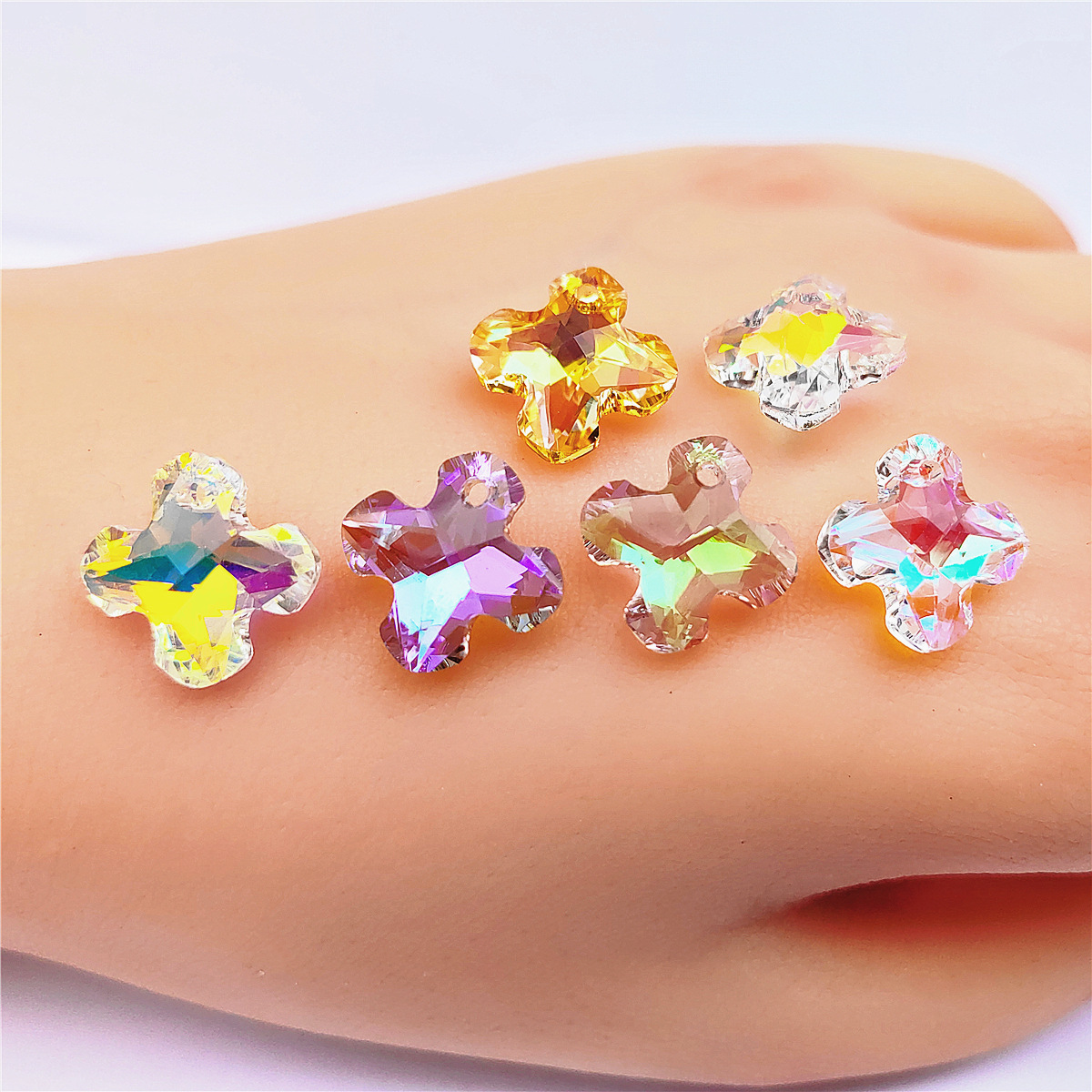 여러 크리스탈 펜던트의 배치 전기 도금 오로라 매직 비즈 diy 액세서리 단일 구멍 유리 구슬 팔찌 소재스토어 가기