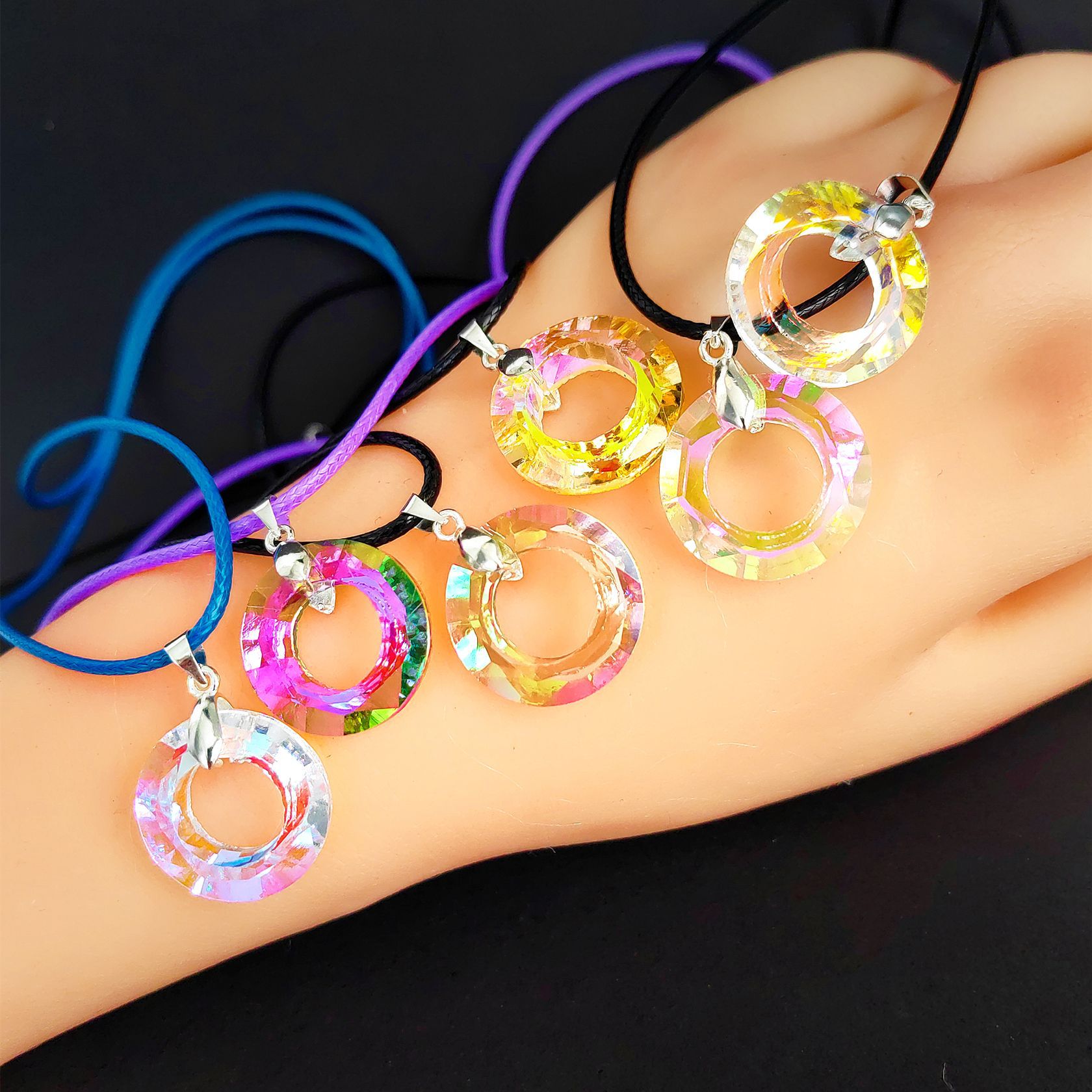 여러 크리스탈 펜던트의 배치 전기 도금 오로라 매직 비즈 diy 액세서리 단일 구멍 유리 구슬 팔찌 소재