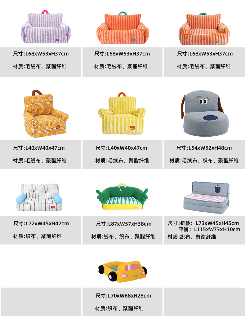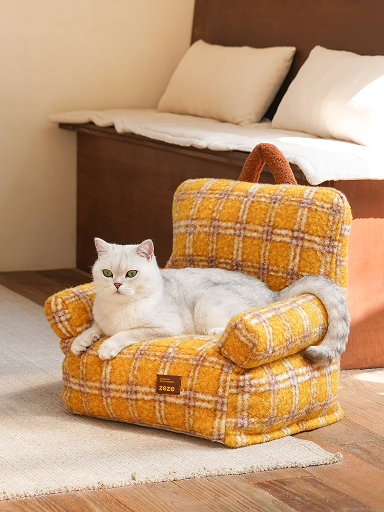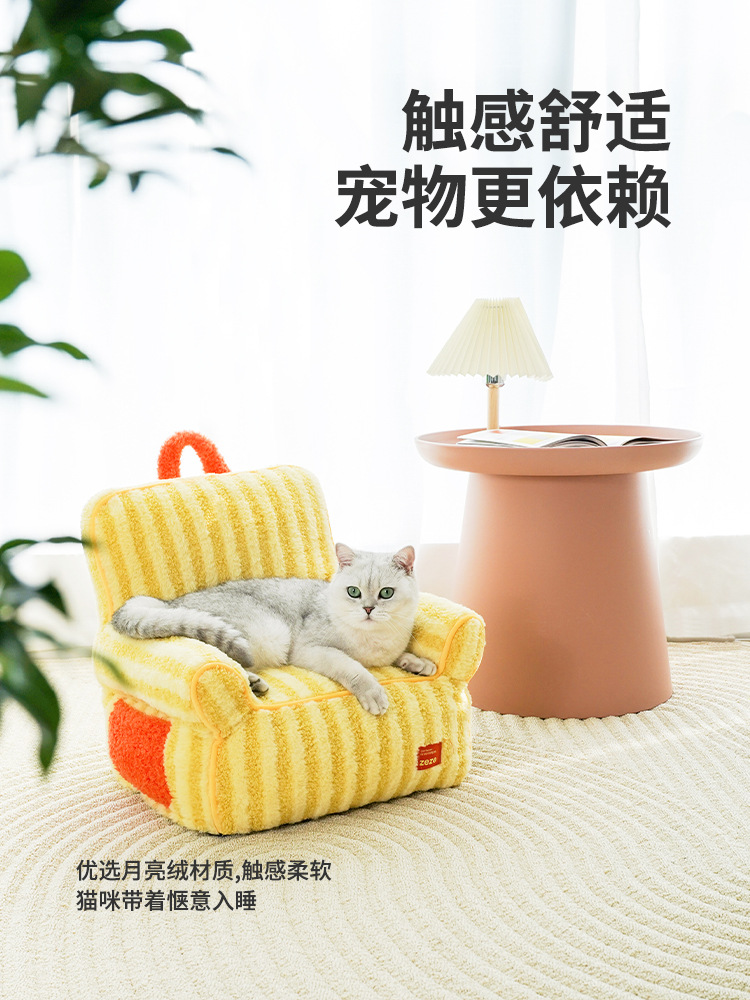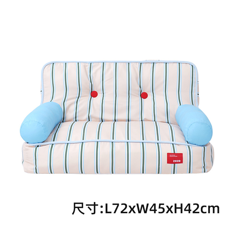 • 줄무늬 노란색 부드러운 벨벳 애완 동물 소파