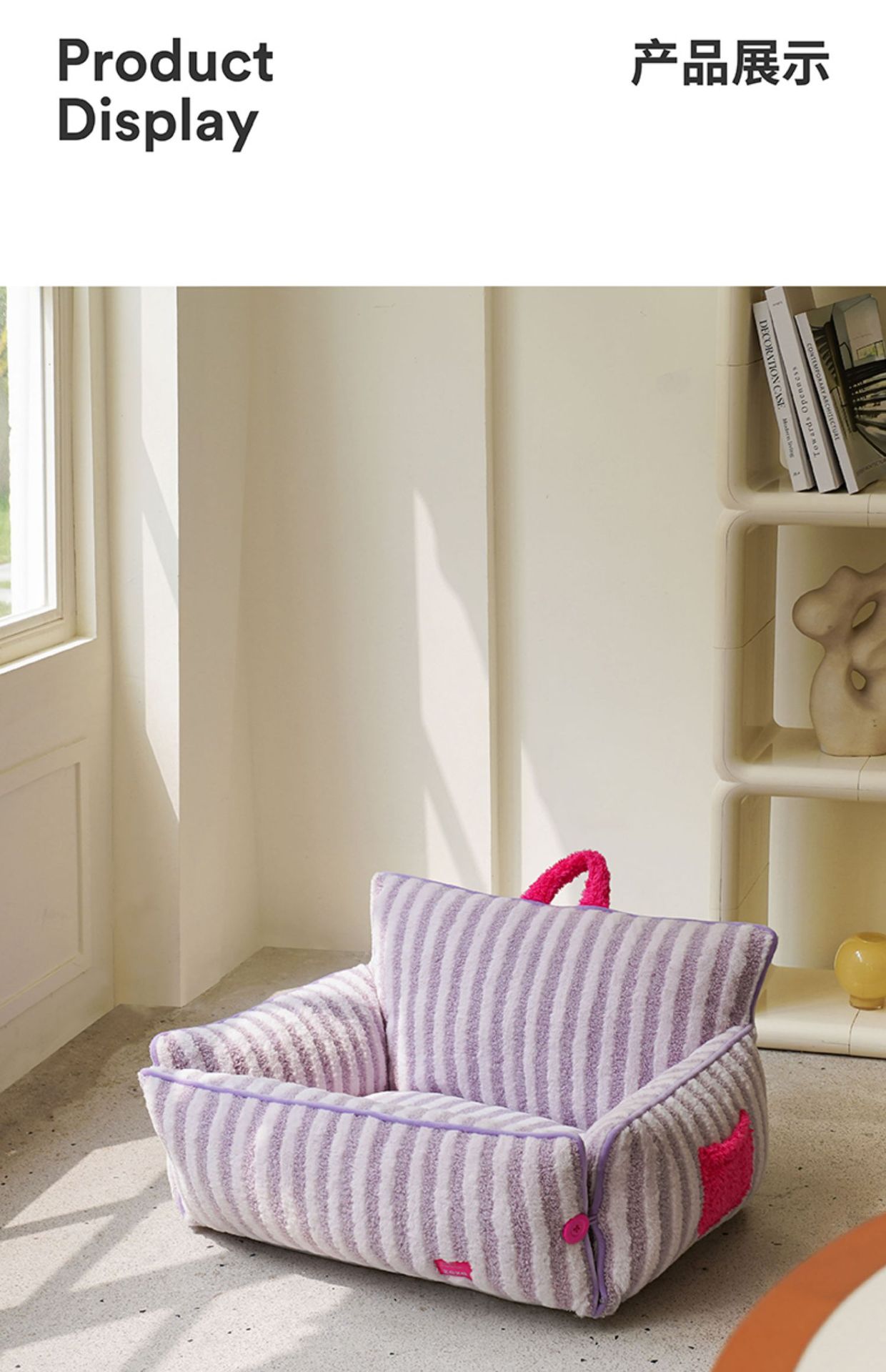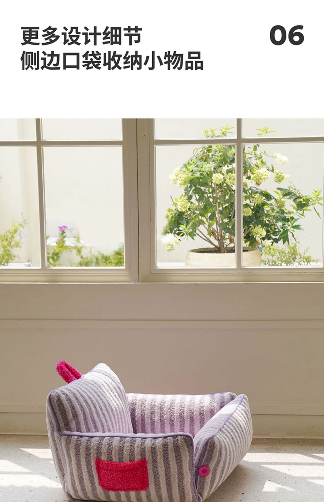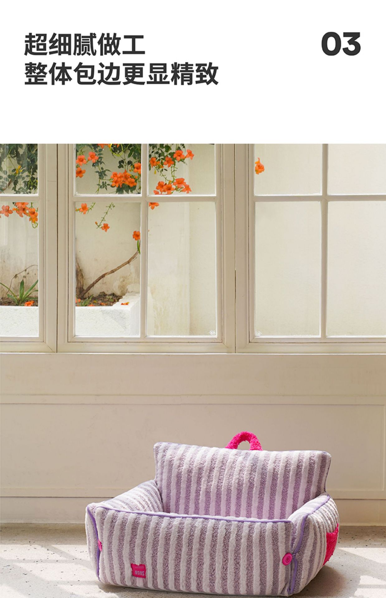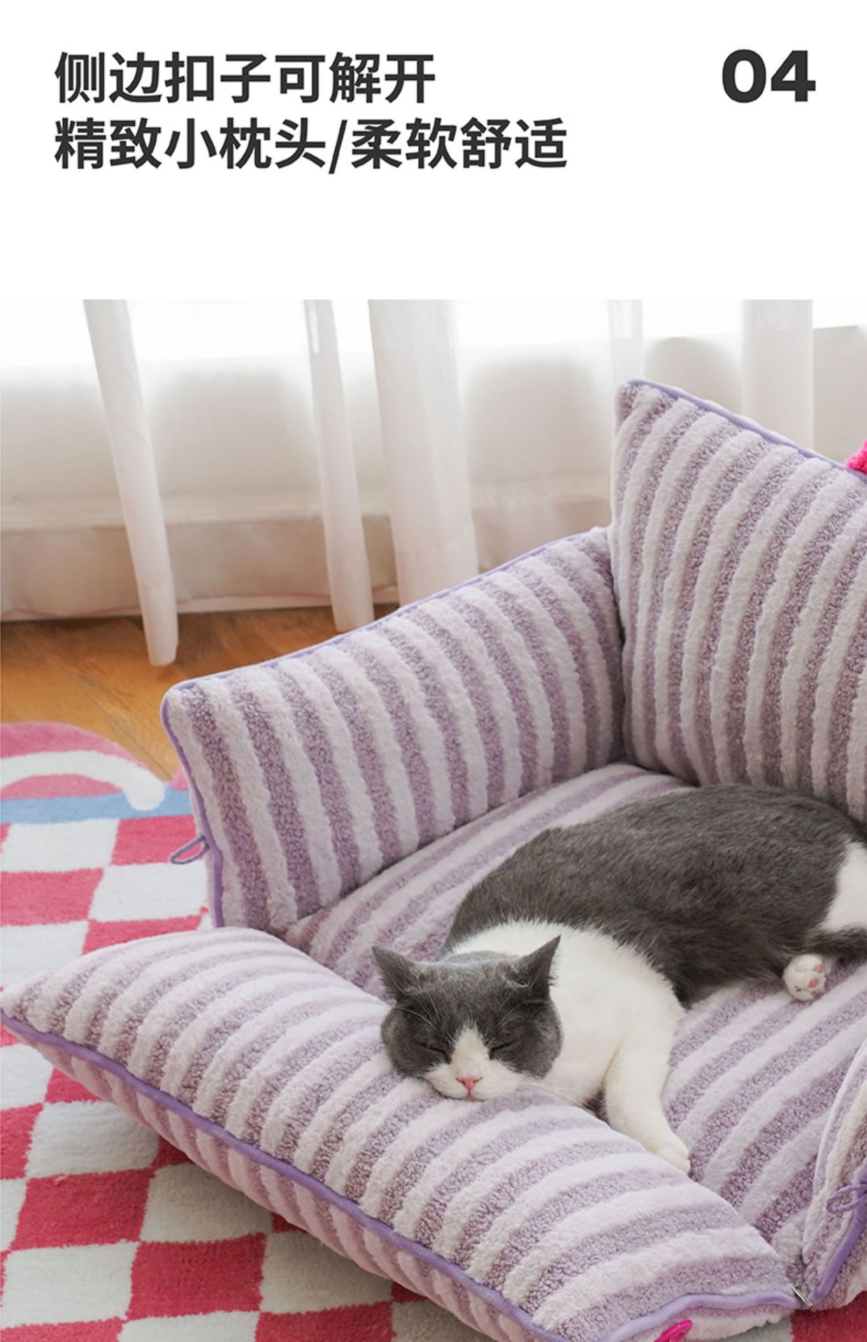 • 줄무늬 부드러운 벨벳 애완동물 침대 보라색(버튼이 있는 업그레이드 버전)