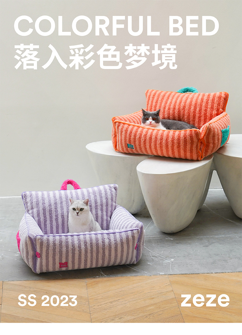 • 줄무늬 부드러운 벨벳 애완동물 침대 오렌지(클래식 스타일)