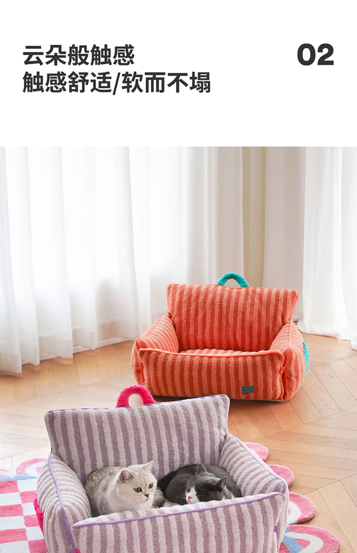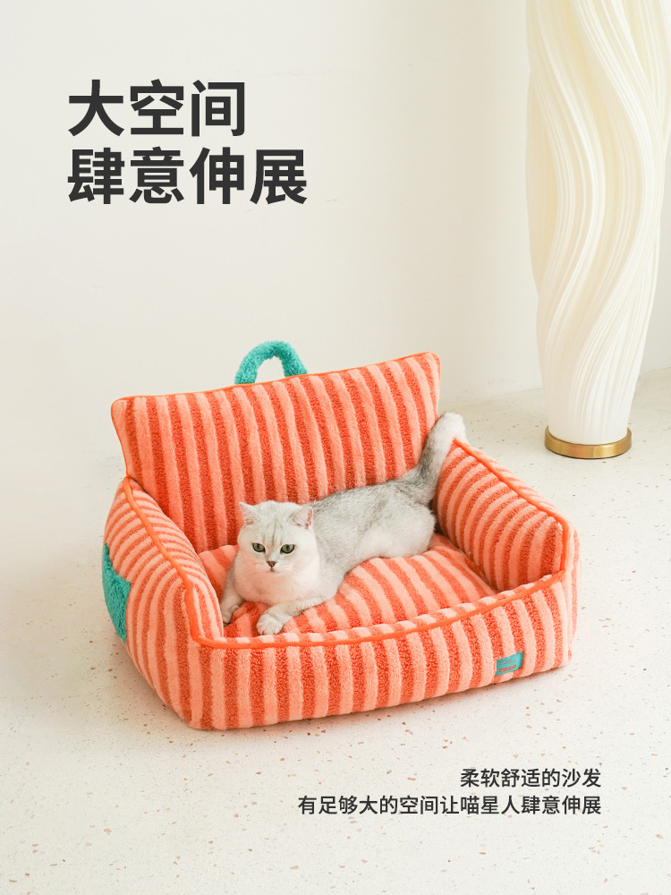• 줄무늬 부드러운 벨벳 애완동물 침대 오렌지(버튼이 있는 업그레이드 버전)