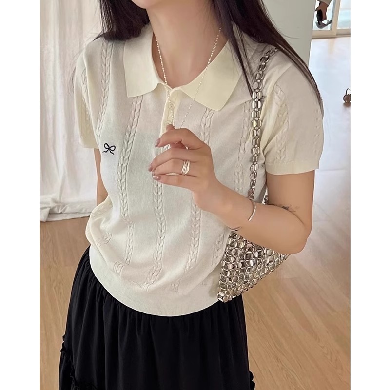 正肩t恤女 大朗针织衫工厂 翻领POLO衫 针织衫女夏薄款 上衣女夏高级感 女装夏高级感 韩系上衣女夏 针织上衣女夏 短袖上衣女高级感 短袖上衣女夏 短袖上衣正肩 针织衫女夏薄款 针织短袖t恤女 针织t恤女 上衣修身显瘦 上衣女夏修身