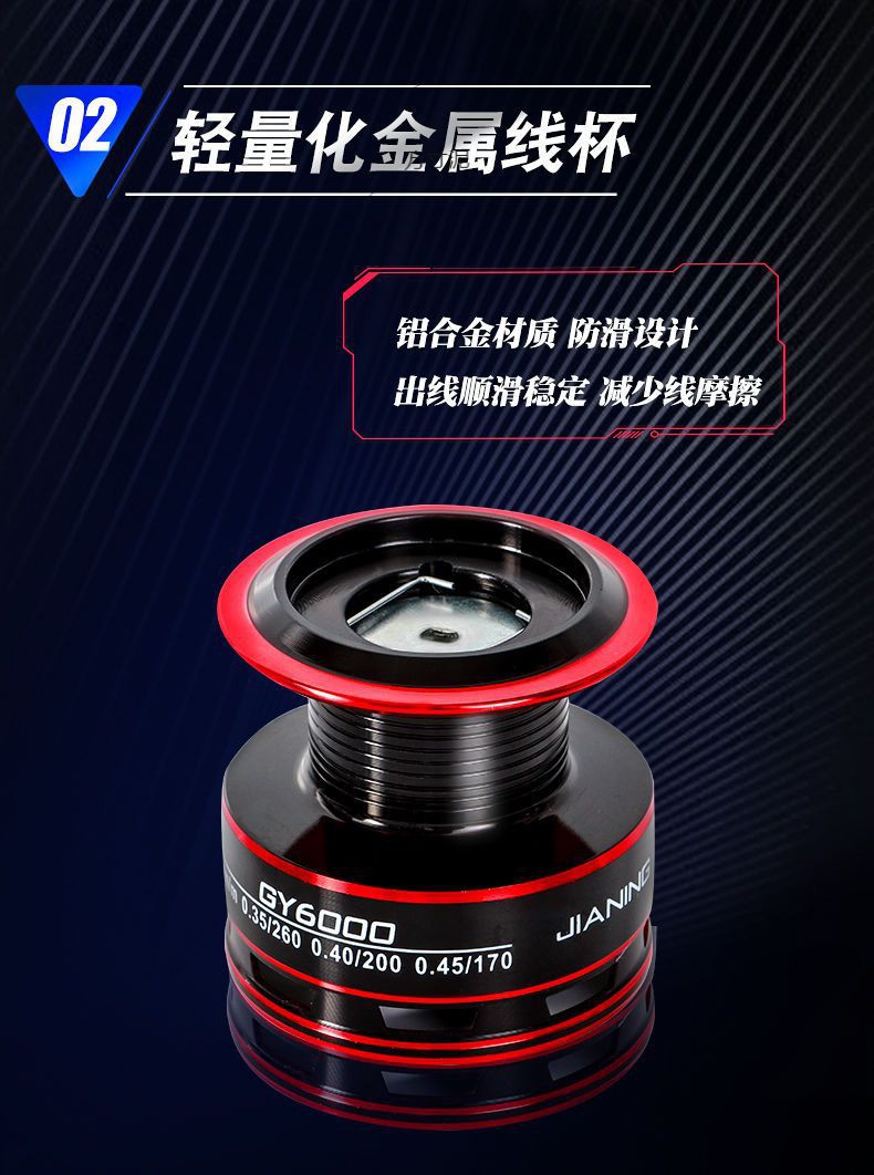 • 검정과 빨강 6000 시리즈(대형 낚시 릴) - 낚싯줄 100m 개 포함 - [3호]