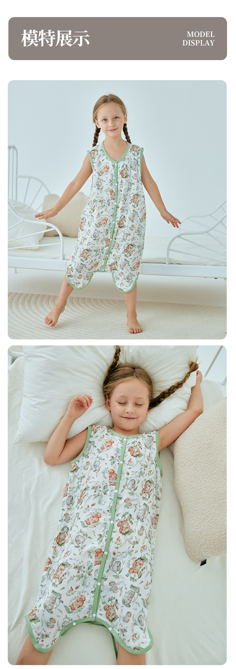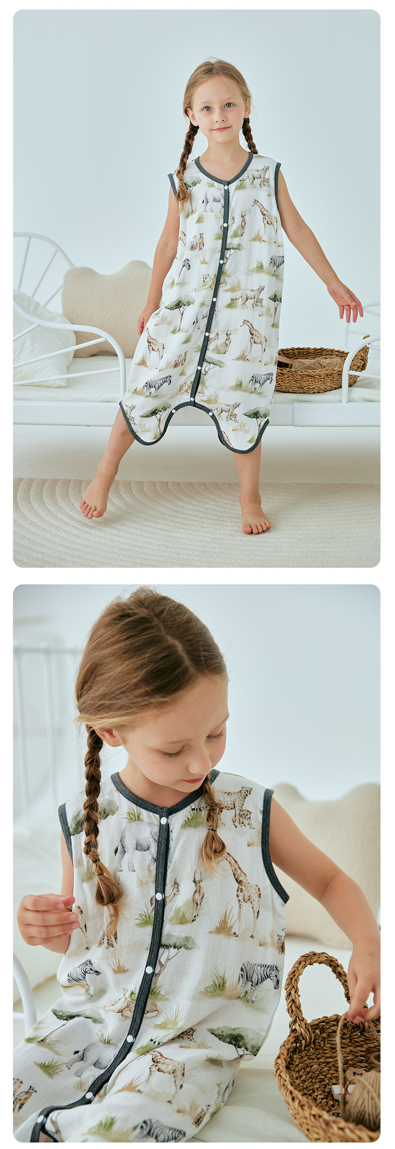 여름 대나무 섬유 클래스 A 얇은 대나무 면 거즈 배꼽 보호 민소매 어린이 아기 아기 에어컨 방 잠옷 침낭스토어 가기