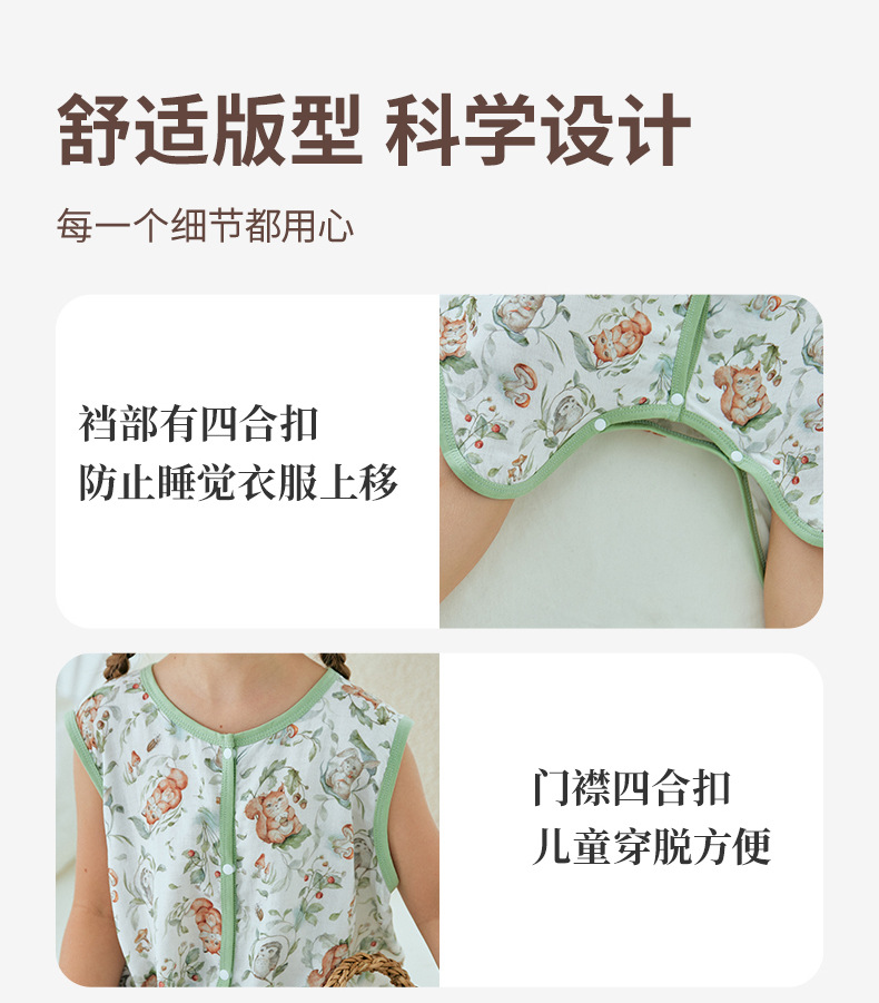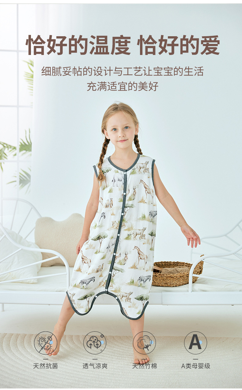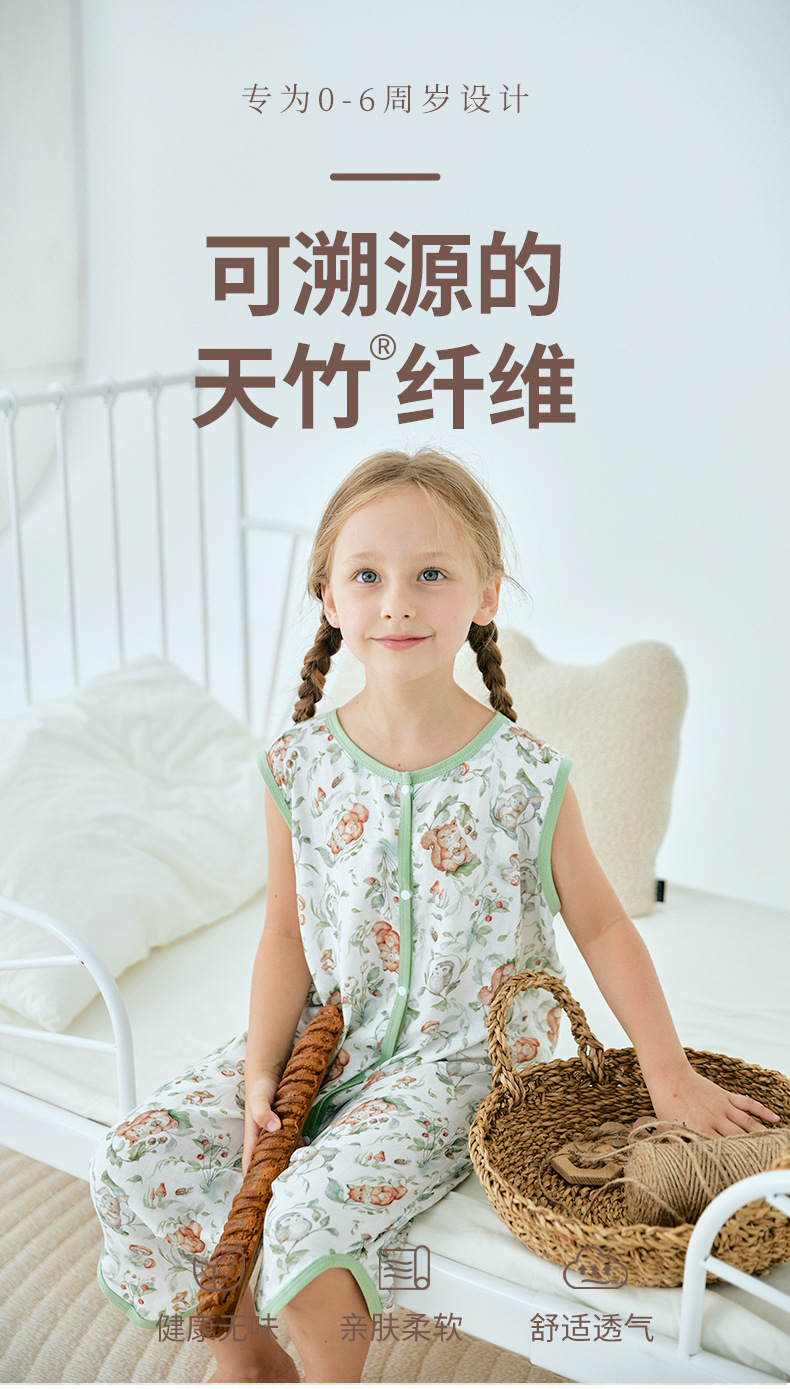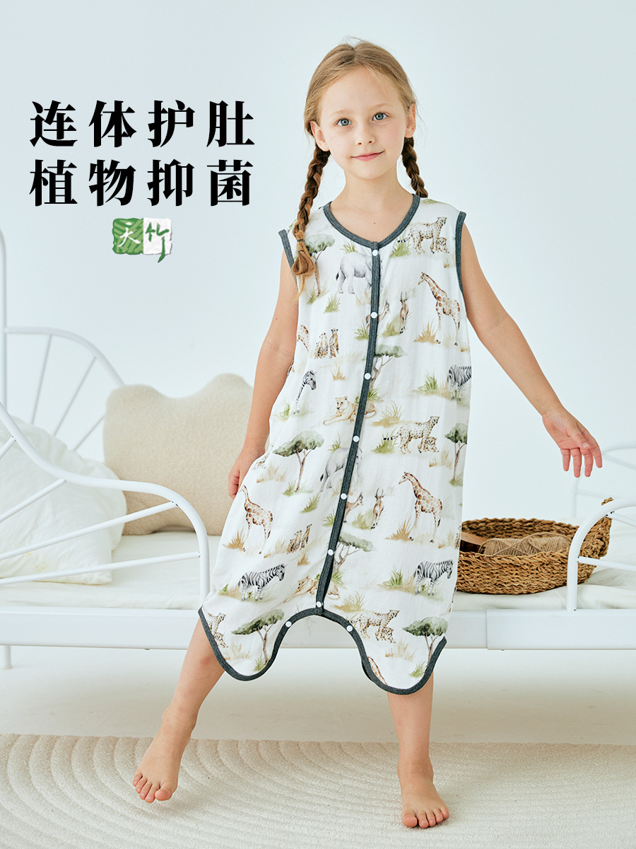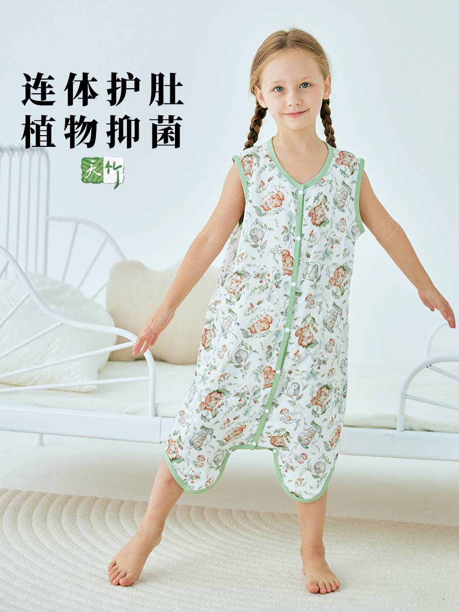 여름 대나무 섬유 클래스 A 얇은 대나무 면 거즈 배꼽 보호 민소매 어린이 아기 아기 에어컨 방 잠옷 침낭
