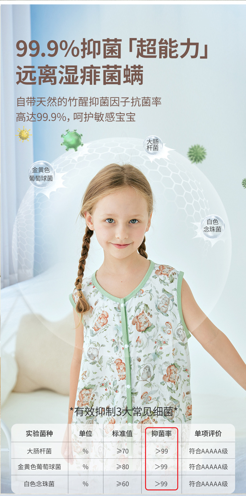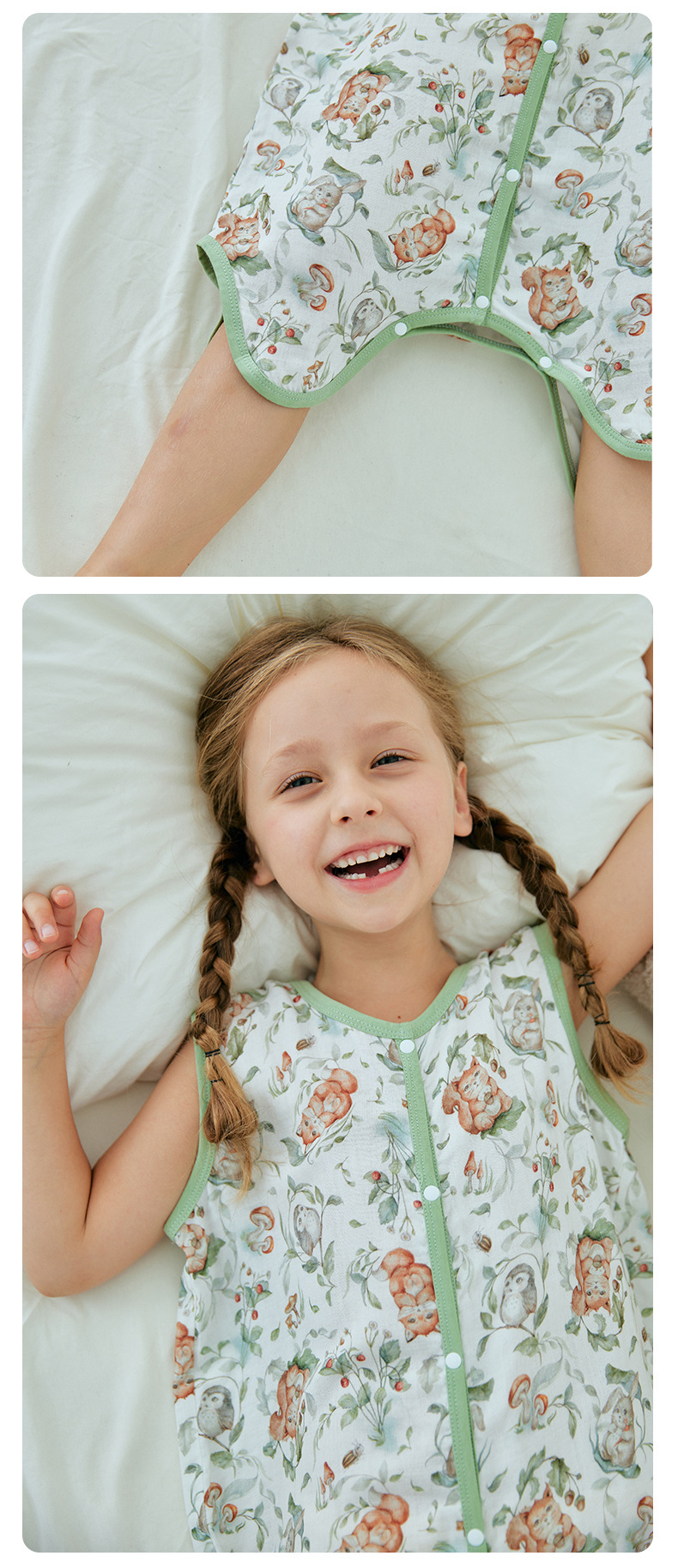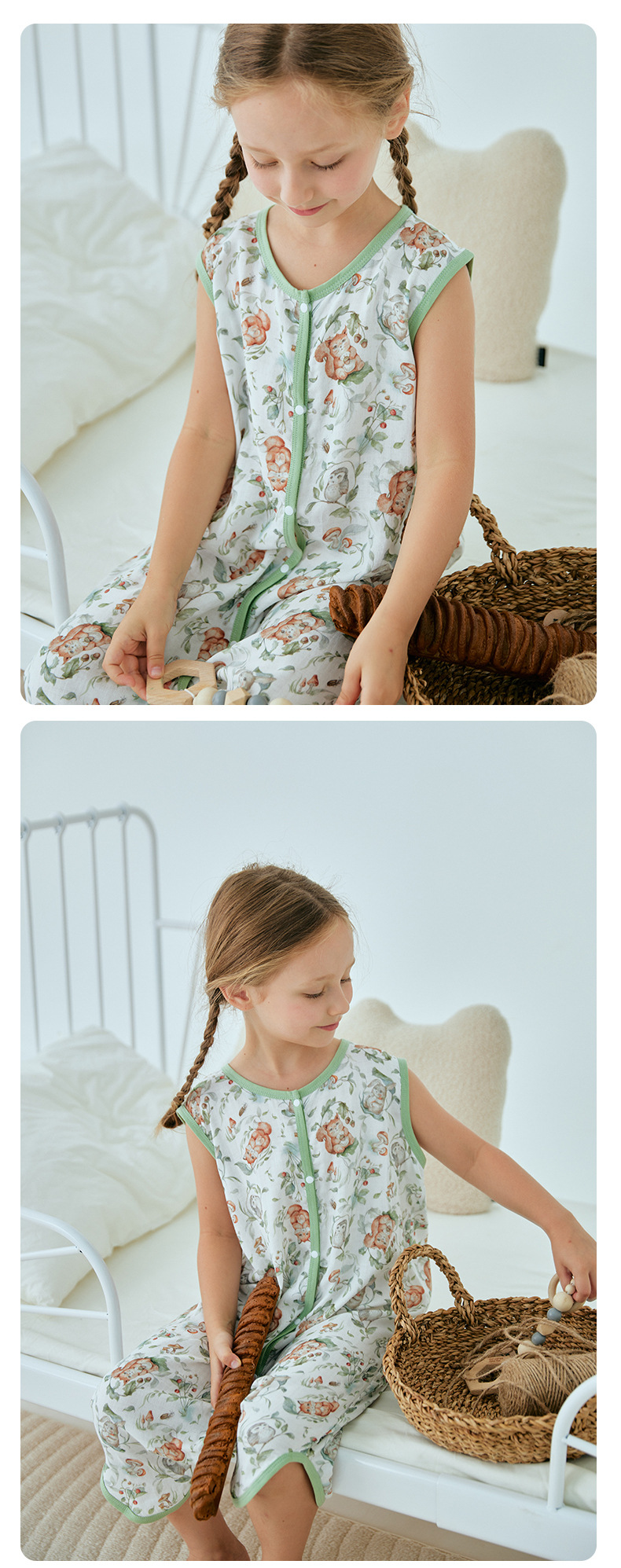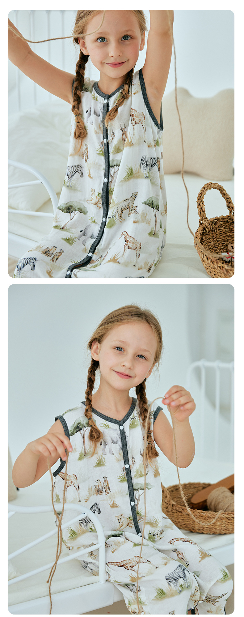 여름 대나무 섬유 클래스 A 얇은 대나무 면 거즈 배꼽 보호 민소매 어린이 아기 아기 에어컨 방 잠옷 침낭