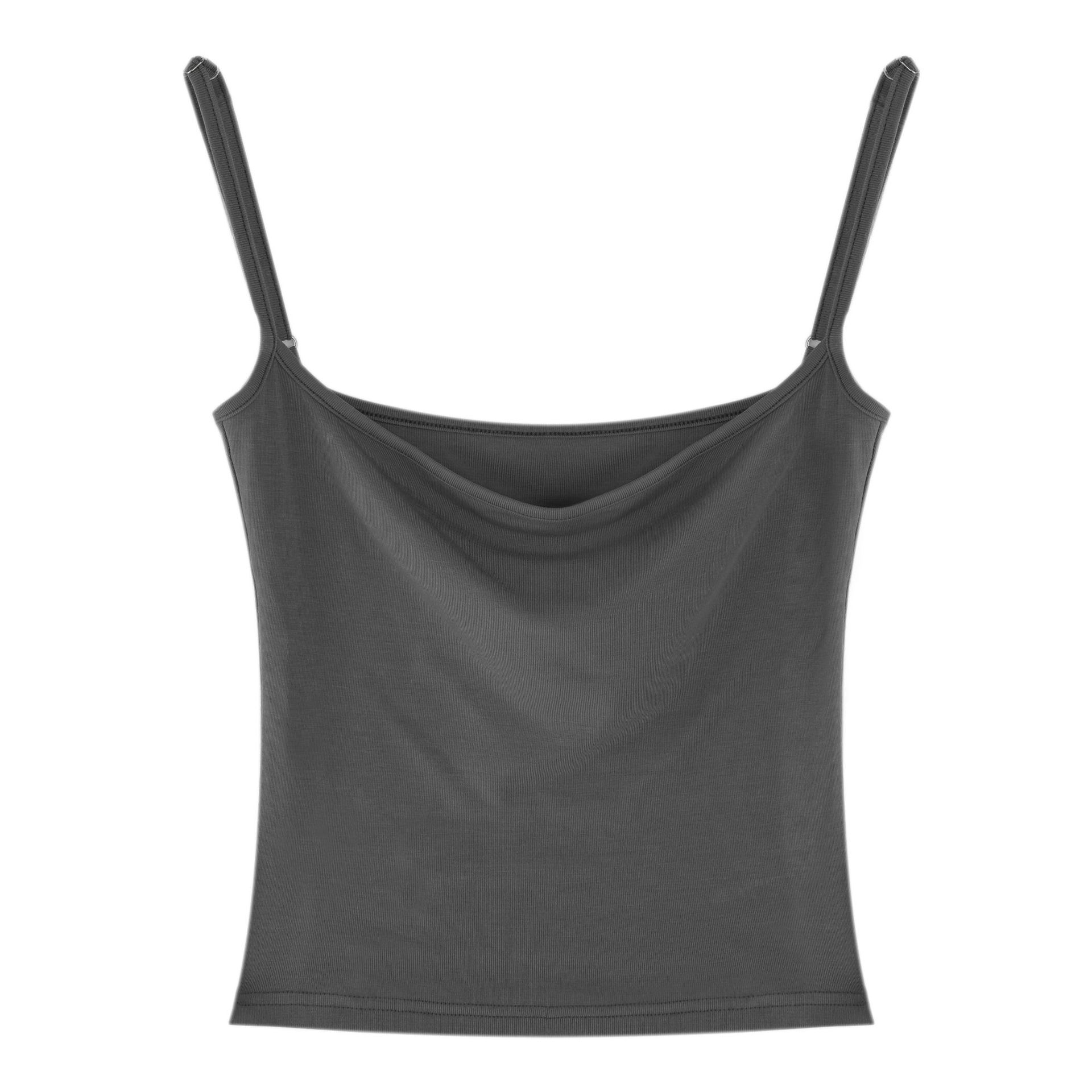 스파이스 소녀 한 줄 카미솔 여성용 가슴 패드 조절 가능한 어깨 스트랩 솔리드 컬러 슬림 핏 슬리밍 짧은 여름스토어 가기