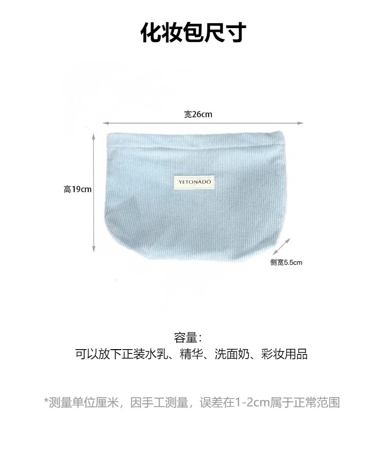 Corduroy 대용량 화장품 가방 맞춤형 여행 스킨 케어 워시 백 클러치 백 학생 보관 가방