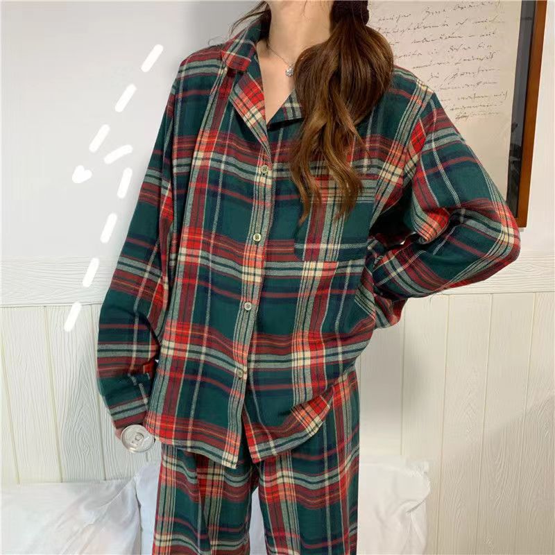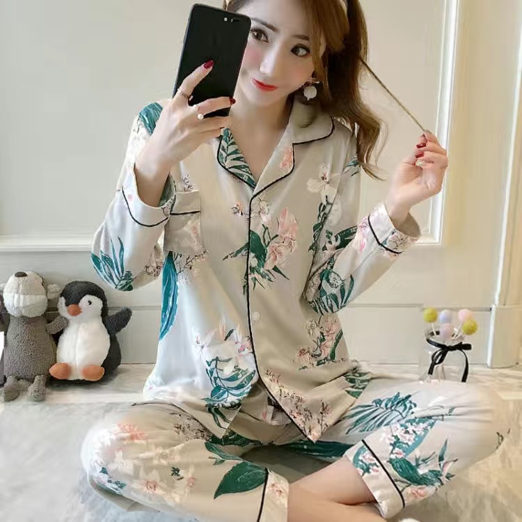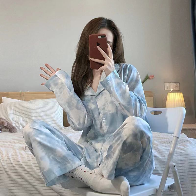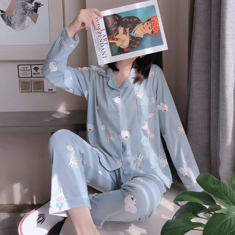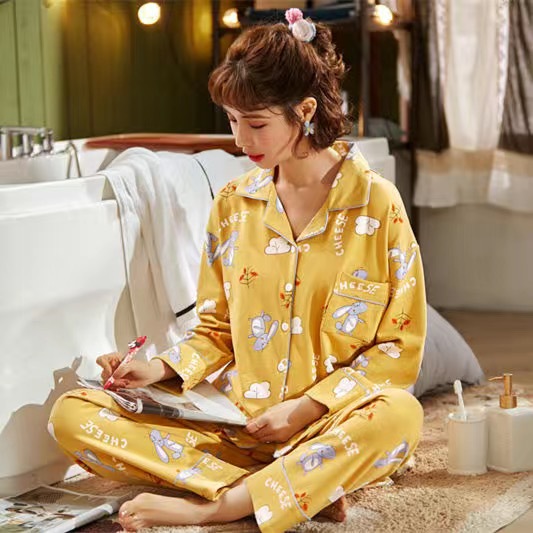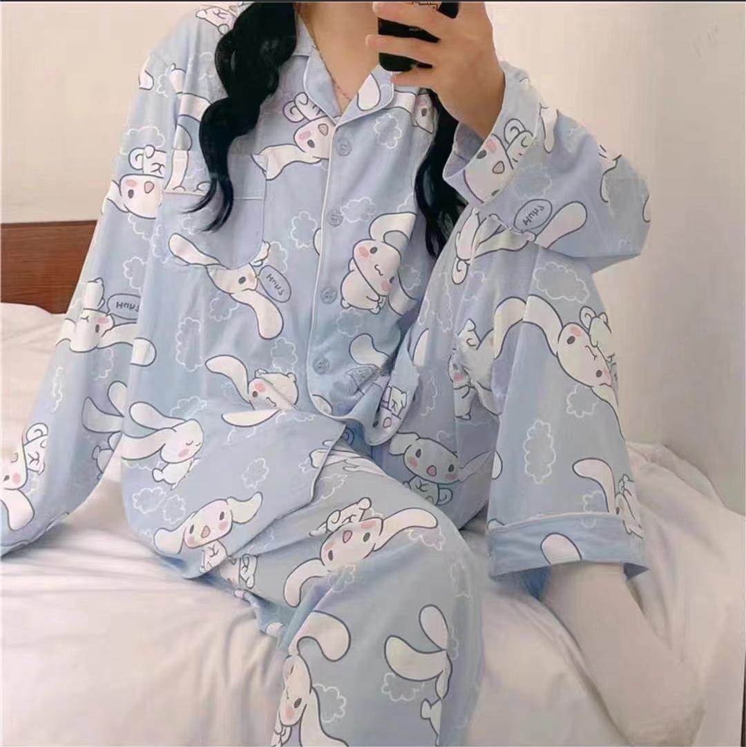 국경 간 대외 무역 봄과 가을 긴 소매 바지 옷깃 새 파자마 여성 카디건 만화 느슨한 홈 의류 세트스토어 가기