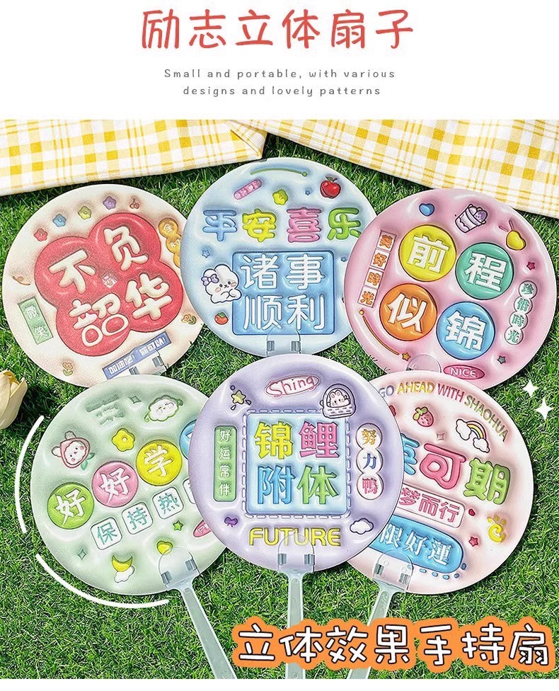 만화 확장 3 차원 손 팬 멋진 영감 텍스트 휴대용 작은 라운드 팬 학생 미니 휴대용 팬 선물스토어 가기