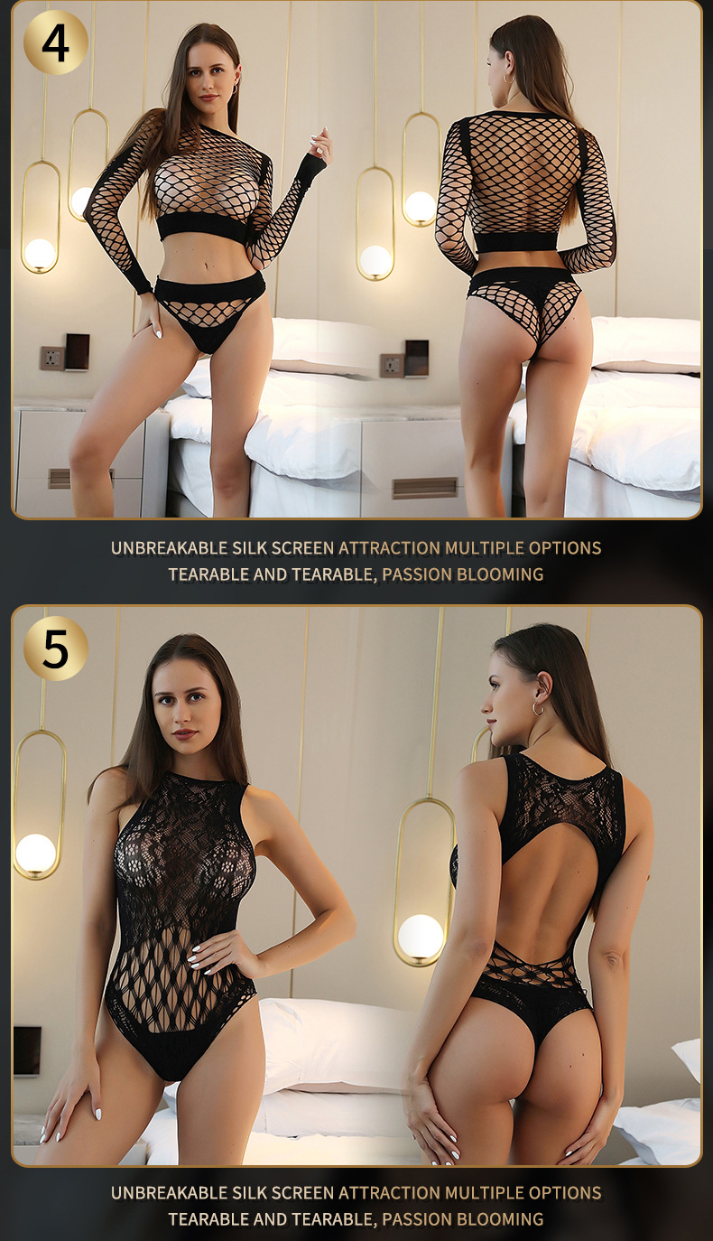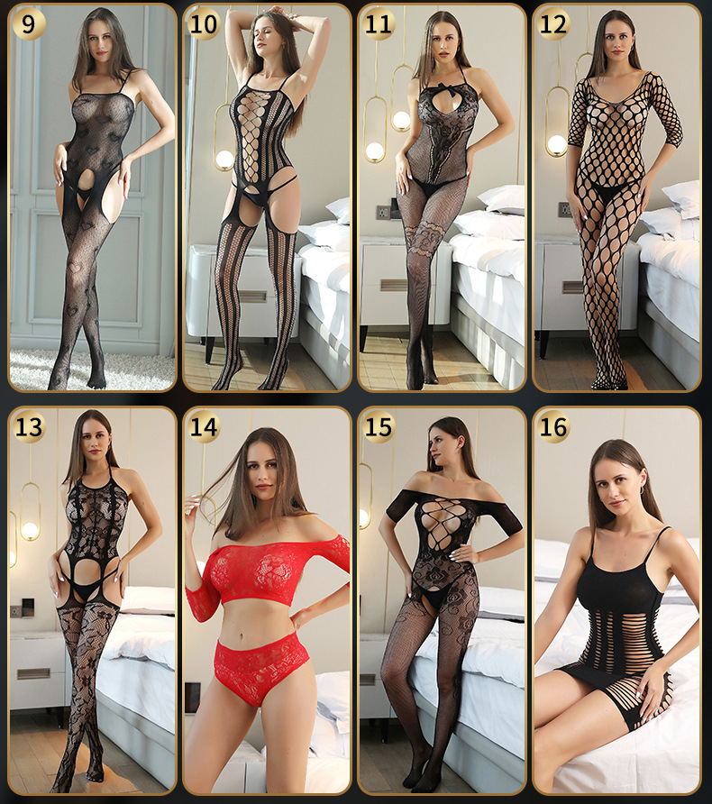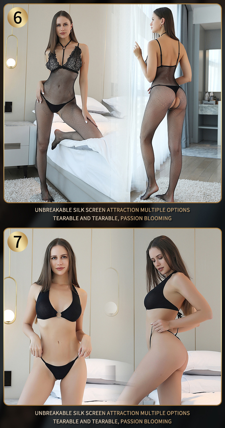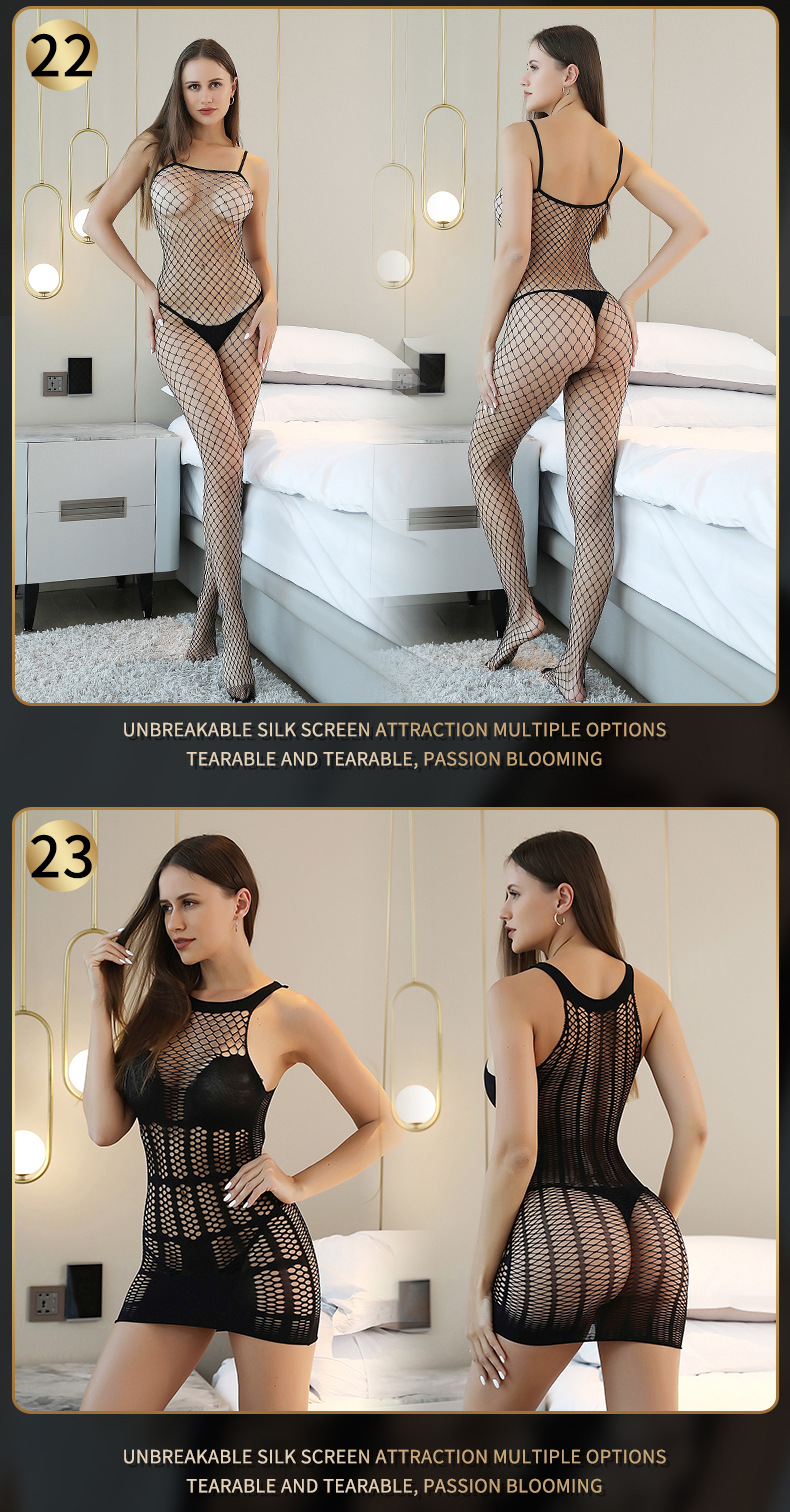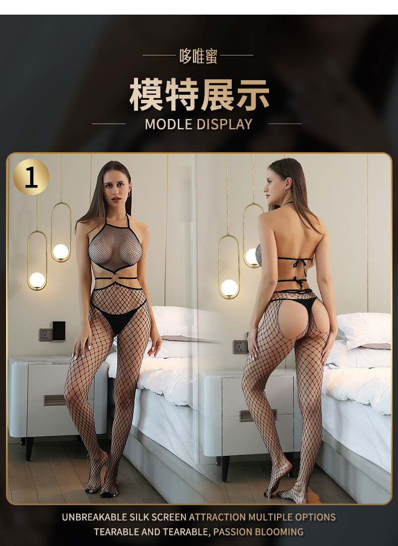 유럽과 미국의 성인 섹시한 속옷, 여성용 오픈 가랑이 점프 슈트, 대형 섹시한 시스루 잠옷 조합, 섹시한 메쉬 스타킹스토어 가기