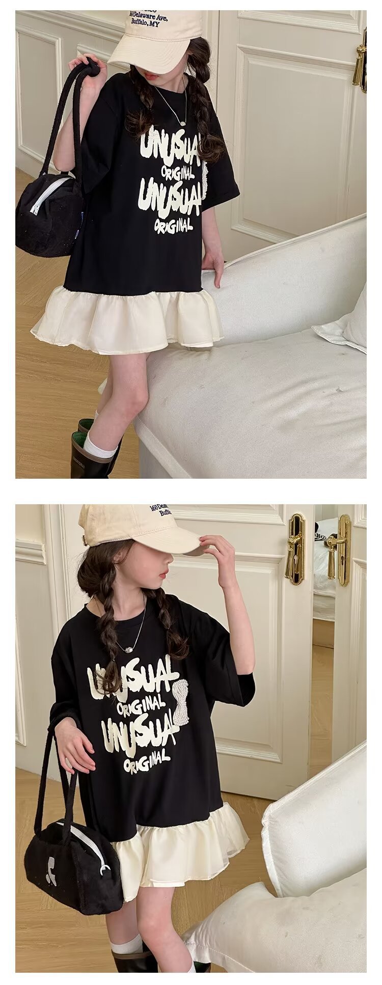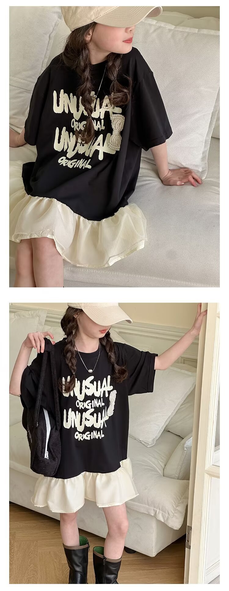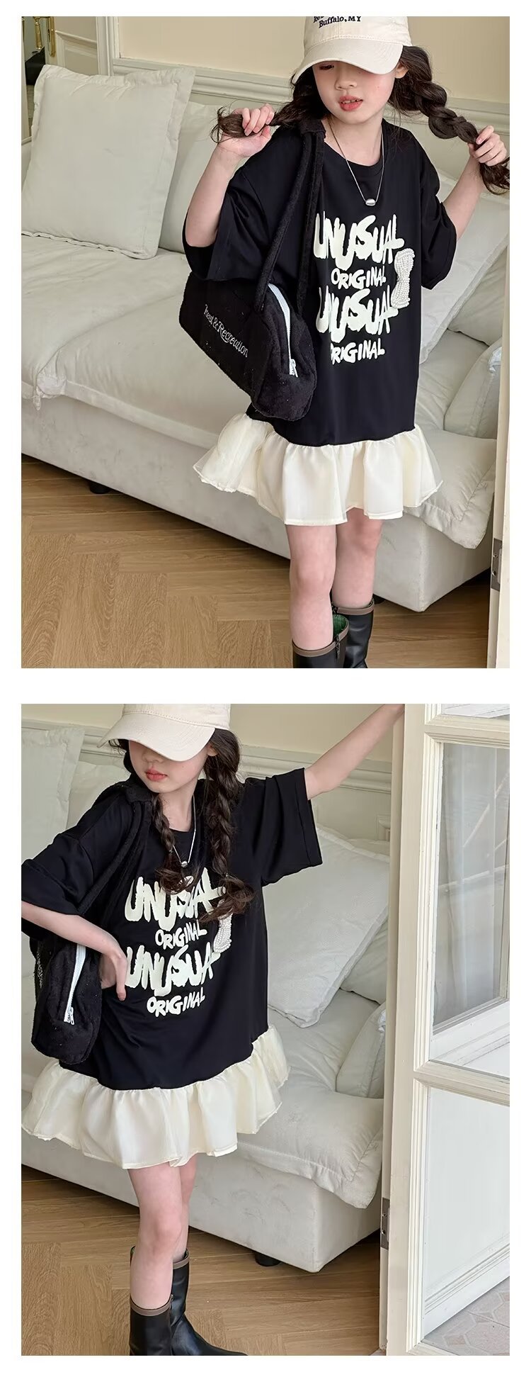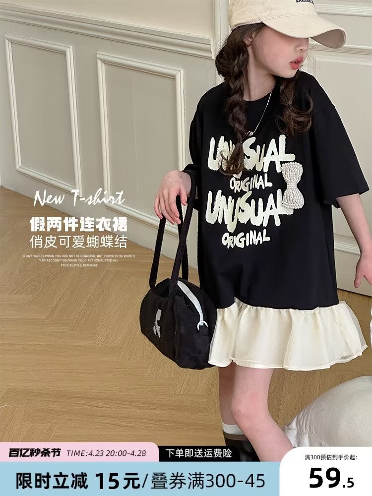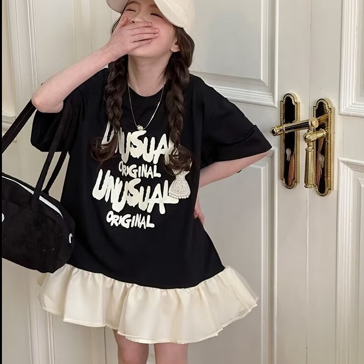 어린이 착용 소녀 여름 가짜 투피스 원피스 여름 새 스타일 한국 스타일 달콤한 반팔 얇은 스커트 중 큰 어린이