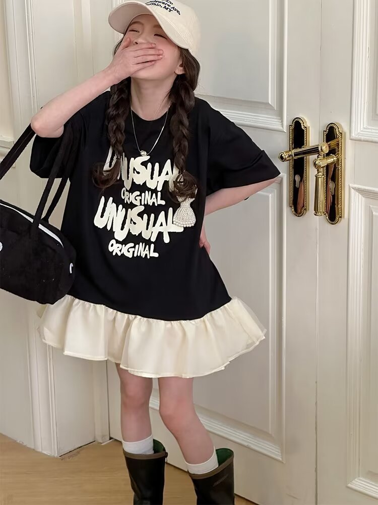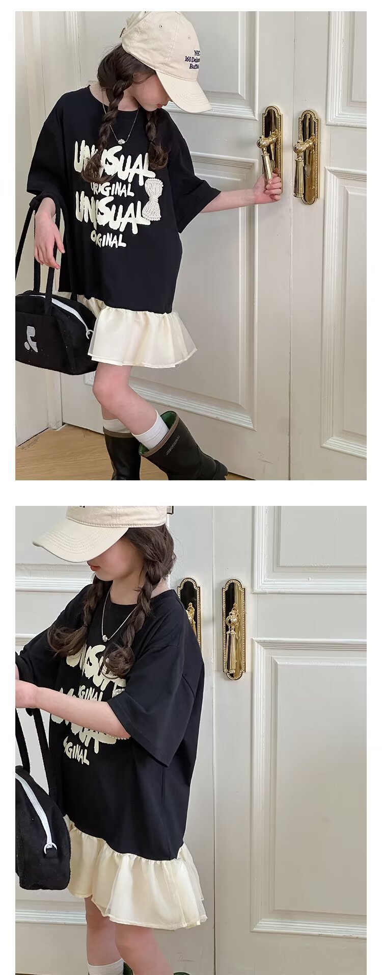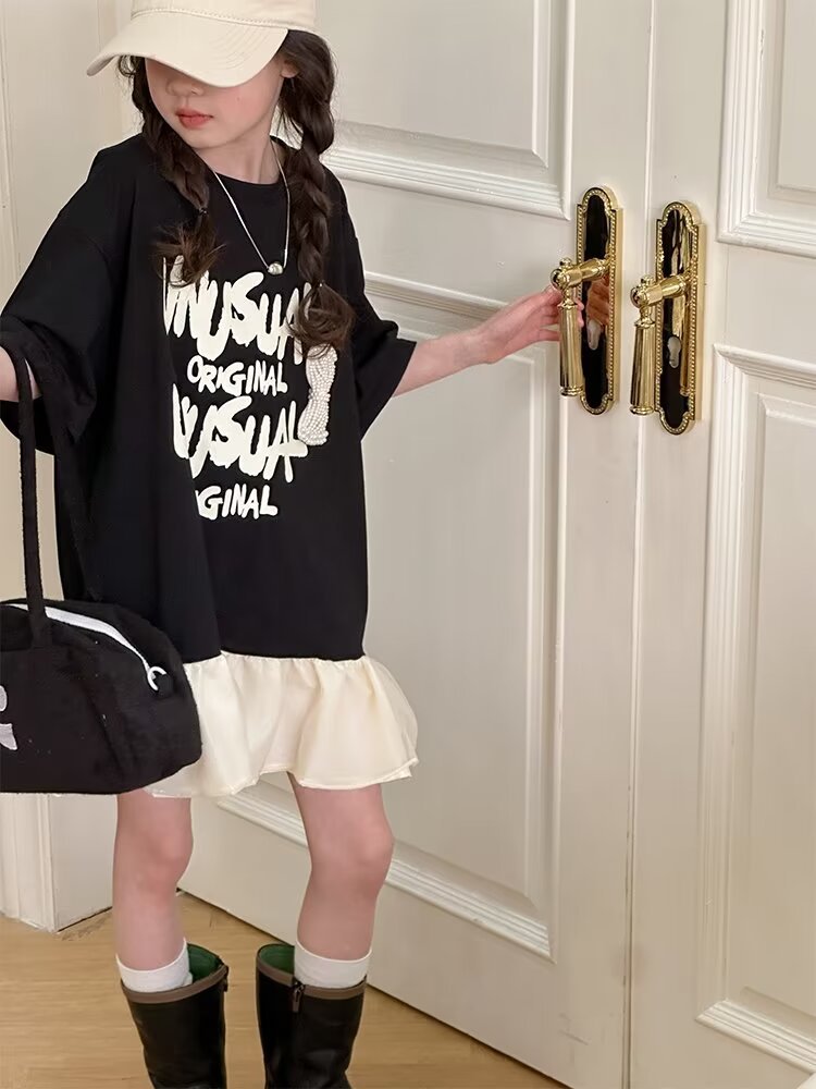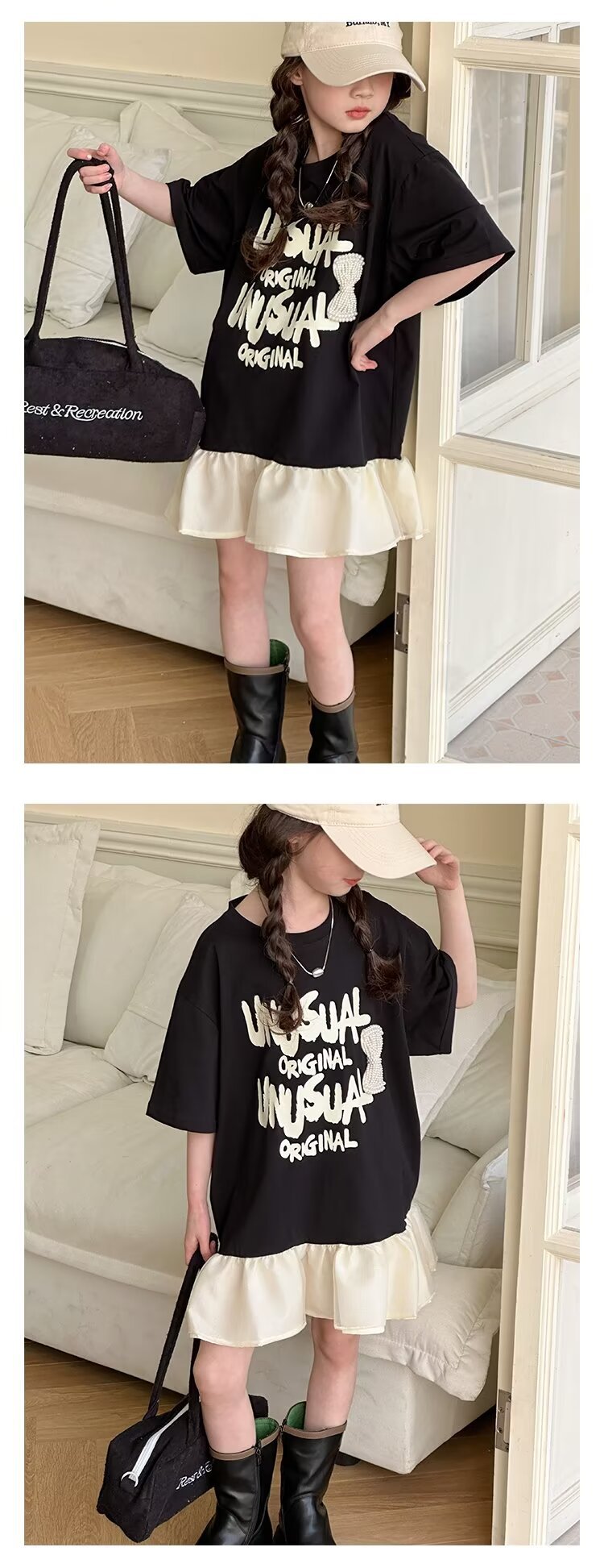 어린이 착용 소녀 여름 가짜 투피스 원피스 여름 새 스타일 한국 스타일 달콤한 반팔 얇은 스커트 중 큰 어린이