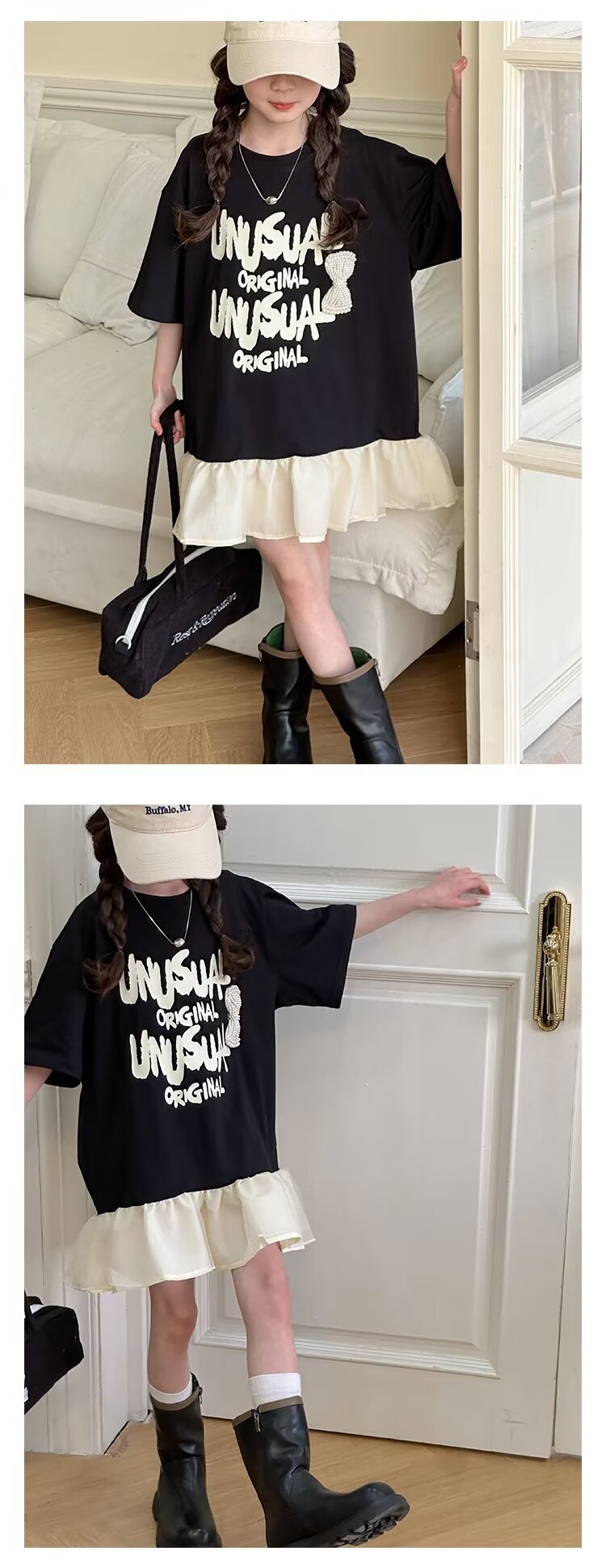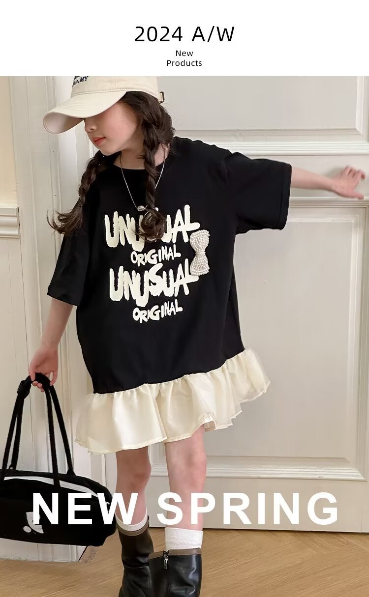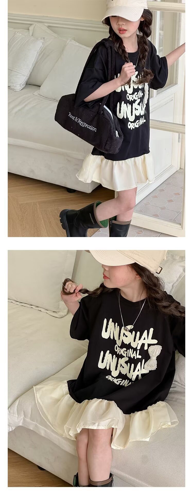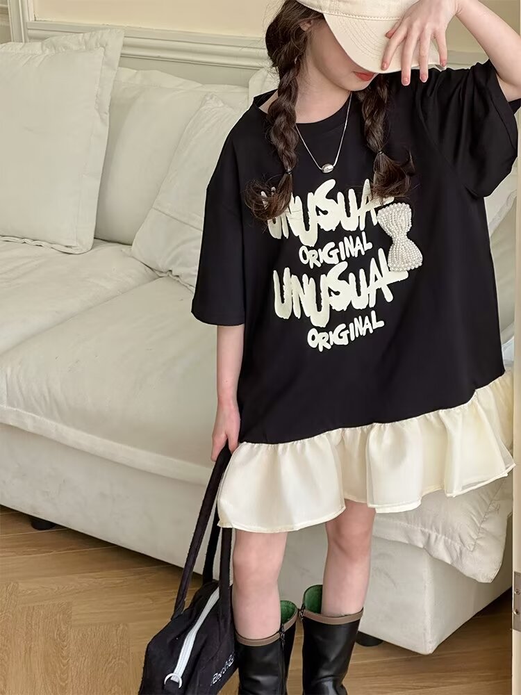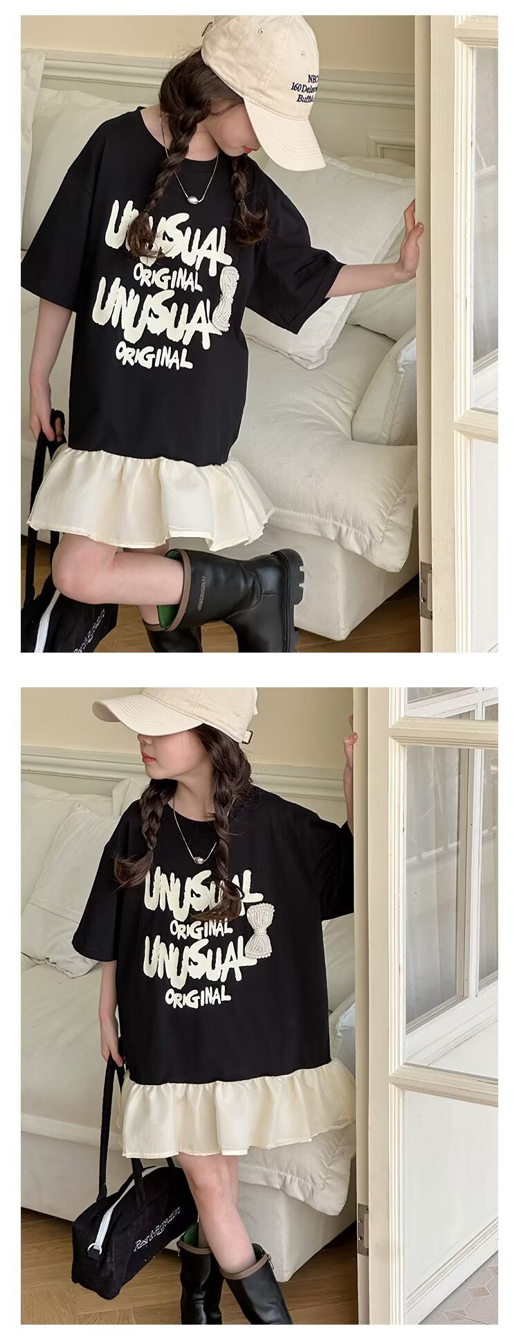 어린이 착용 소녀 여름 가짜 투피스 원피스 여름 새 스타일 한국 스타일 달콤한 반팔 얇은 스커트 중 큰 어린이