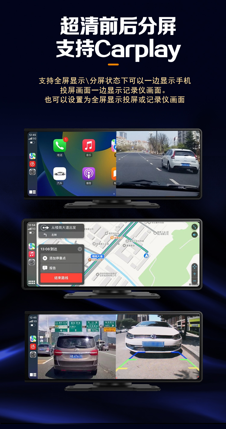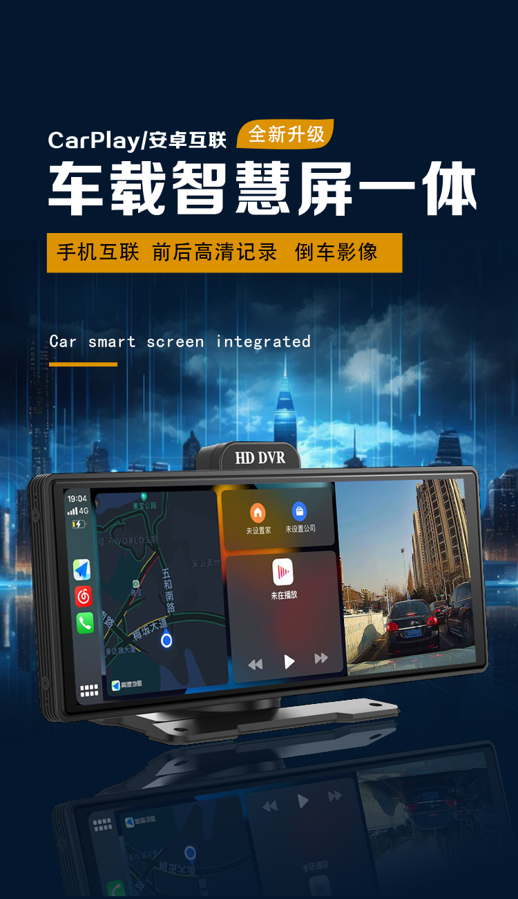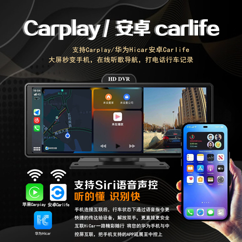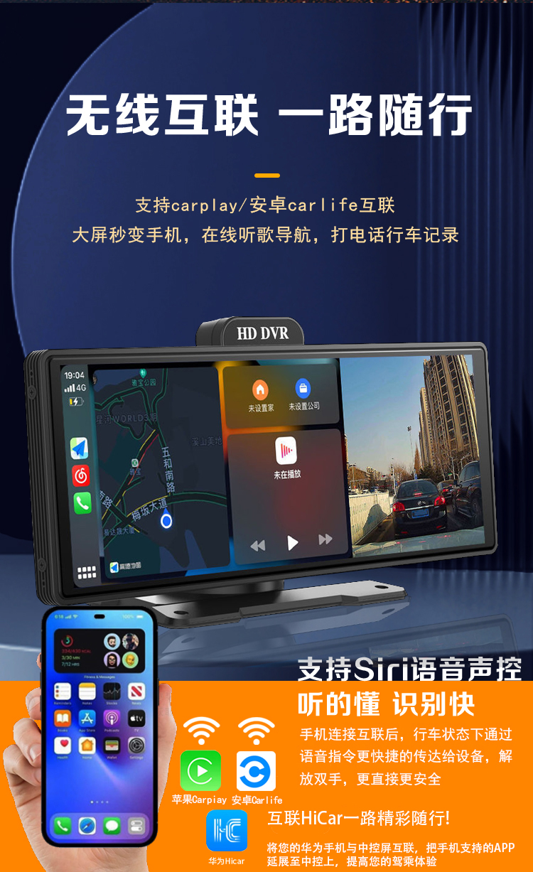 무선 CarplayHicar 인터넷 내비게이션 유니버설 중앙 제어 스마트 스크린 더블 녹화 운전 레코더 반전 이미지