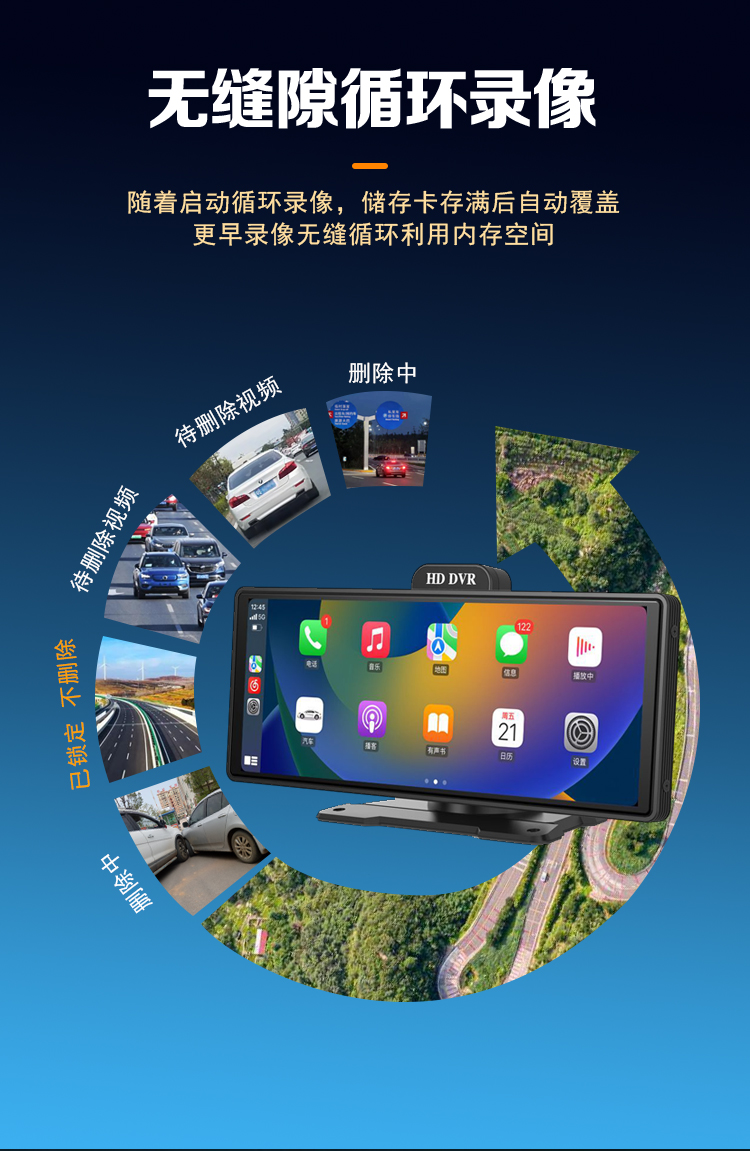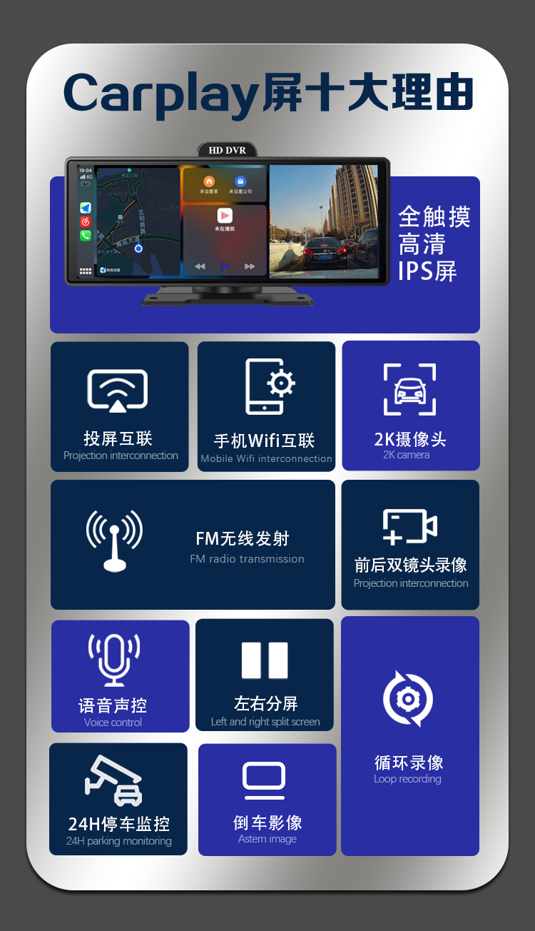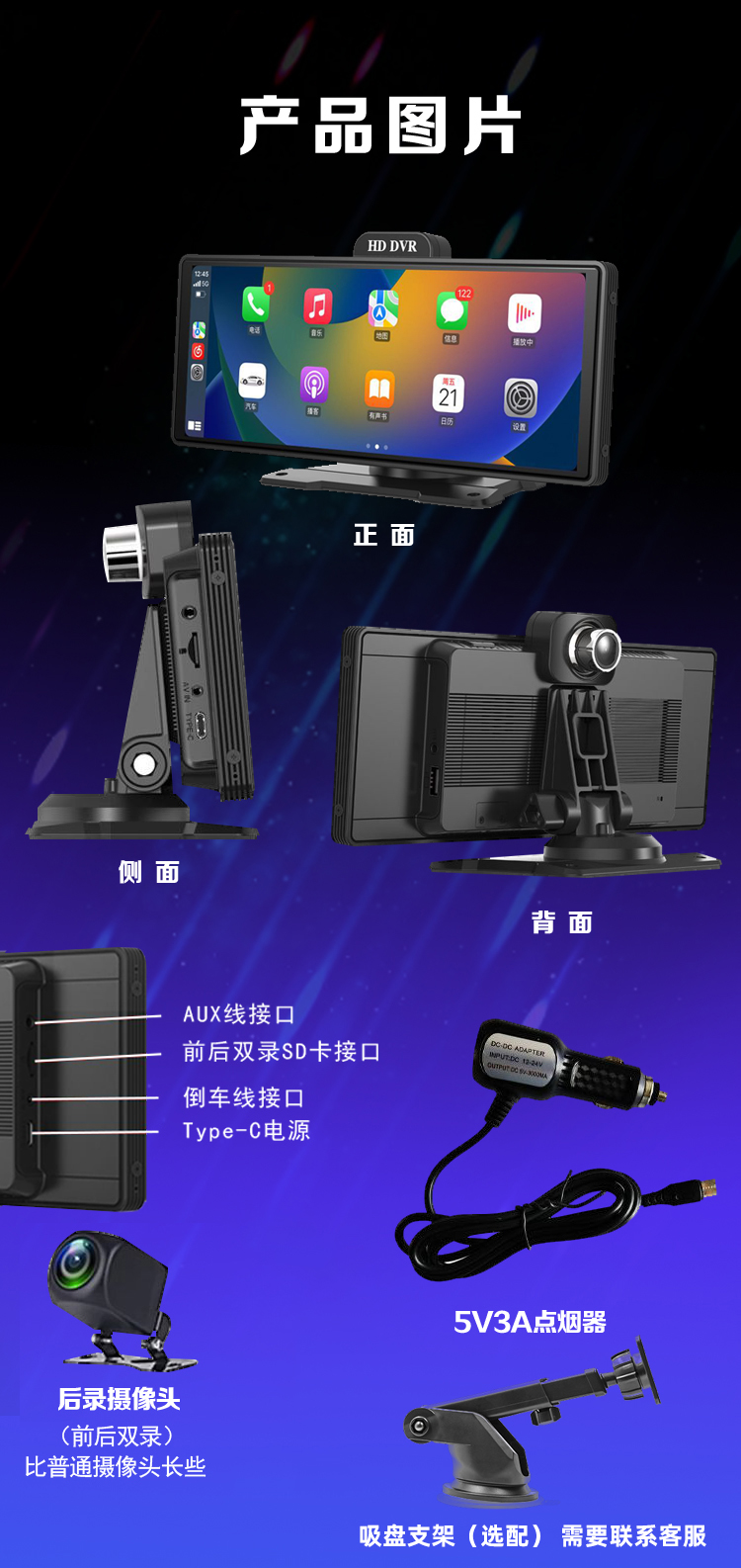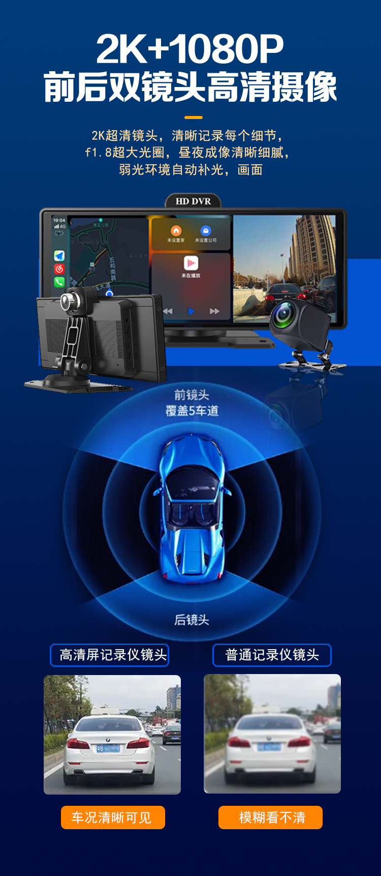 무선 CarplayHicar 인터넷 내비게이션 유니버설 중앙 제어 스마트 스크린 더블 녹화 운전 레코더 반전 이미지
