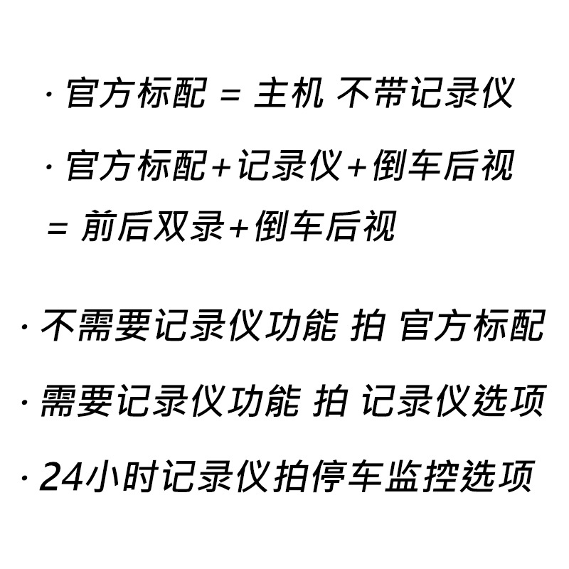 • 참고: 다양한 브래킷을 사용할 수 있으므로 참고해야 합니다! -공식 표준 구성 + 레코더 + 후진