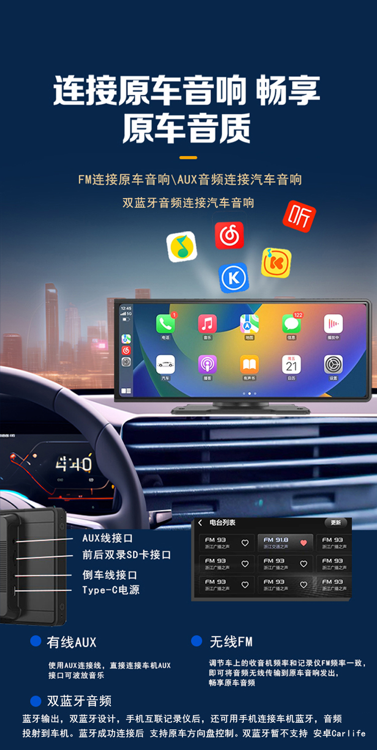 • 참고: 새로 업그레이드된 무선 Carplay+Hicar+Carlife+듀얼 블루투스 오디오!