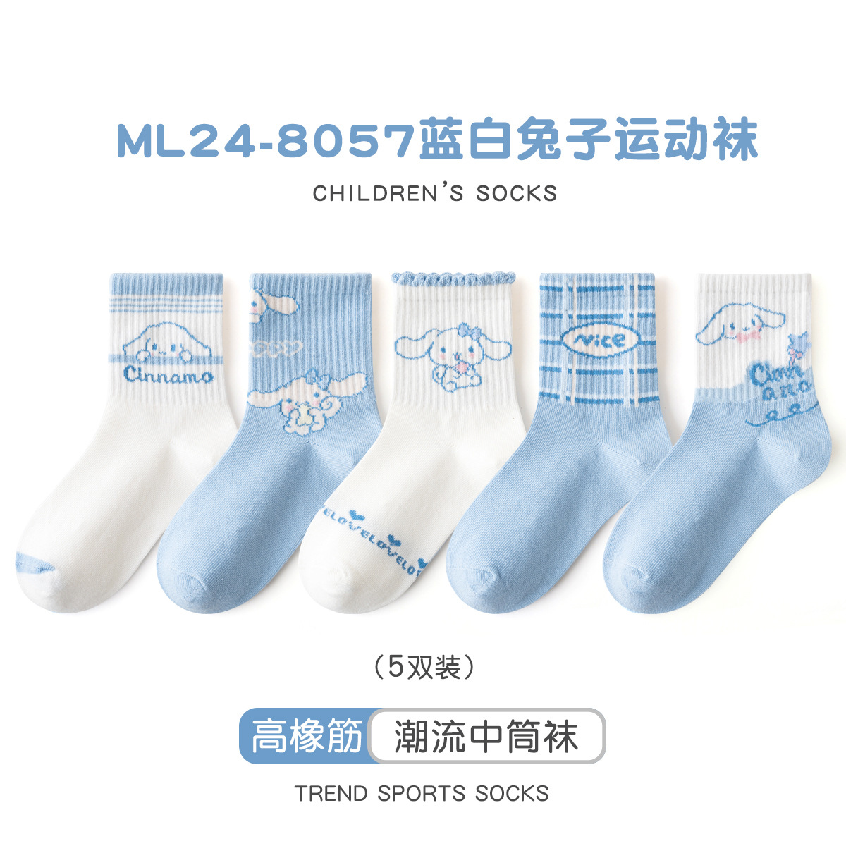 • ML24-8057 파란색과 흰색 토끼 스포츠 양말