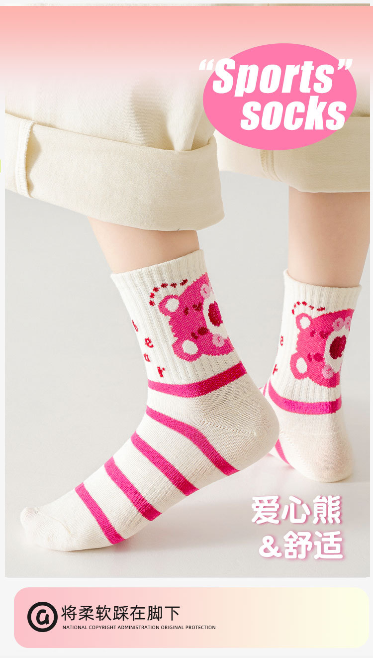 소녀 두리안 양말 가을 땀 흡수성 통기성 높은 고무 귀여운 곰 조수 양말 큰 어린이 스포츠면 양말