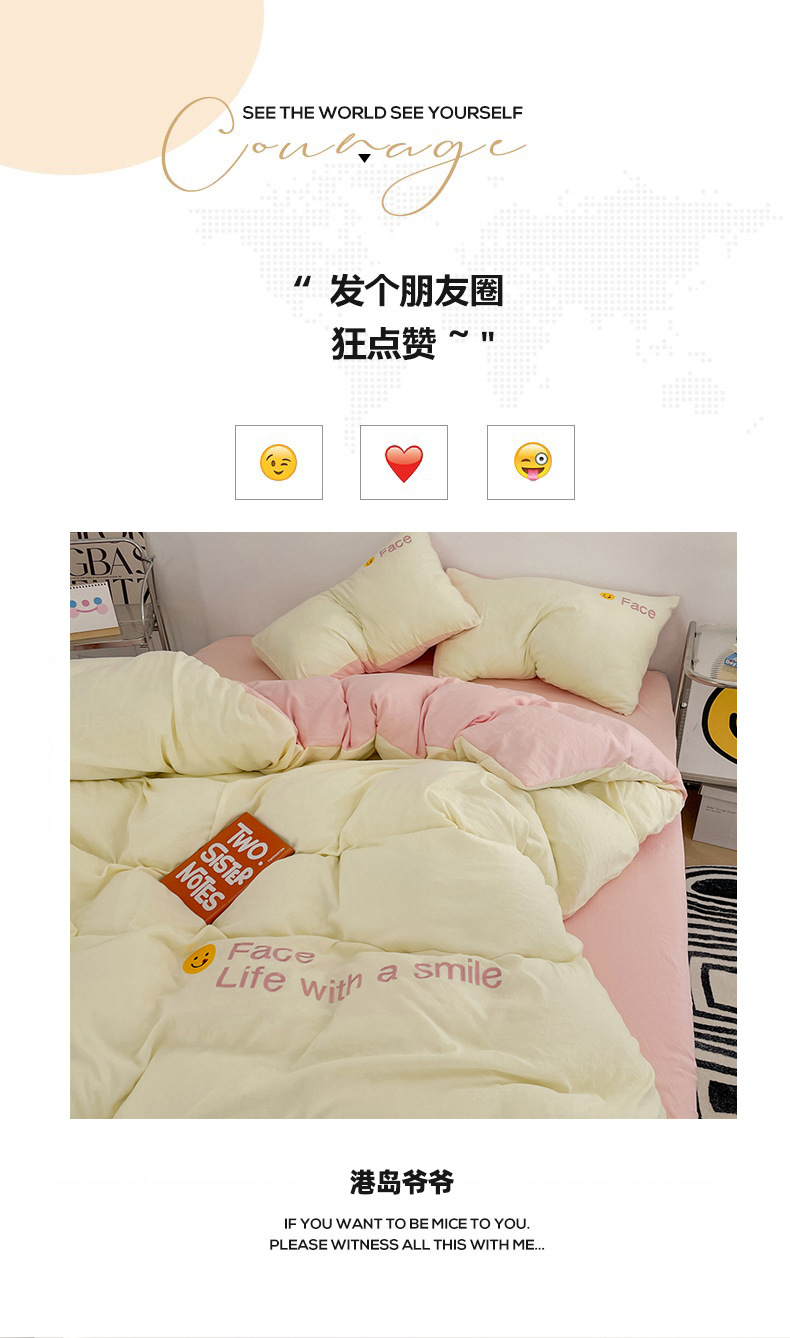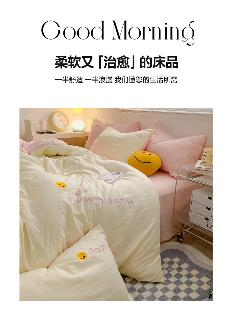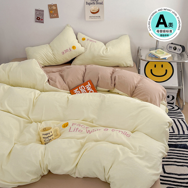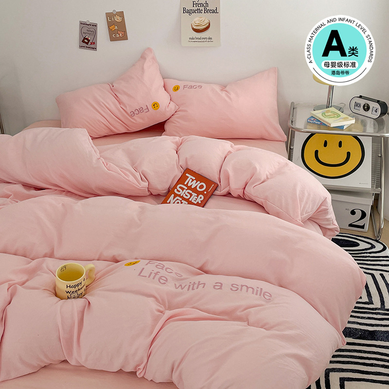 클래스 A 모성 및 유아 등급 수 놓은 Ins Naked 슬리핑 4 피스 침대 시트 퀼트 커버 세척 코튼 침대 커버 대학생 기숙사 3 피스 세트스토어 가기