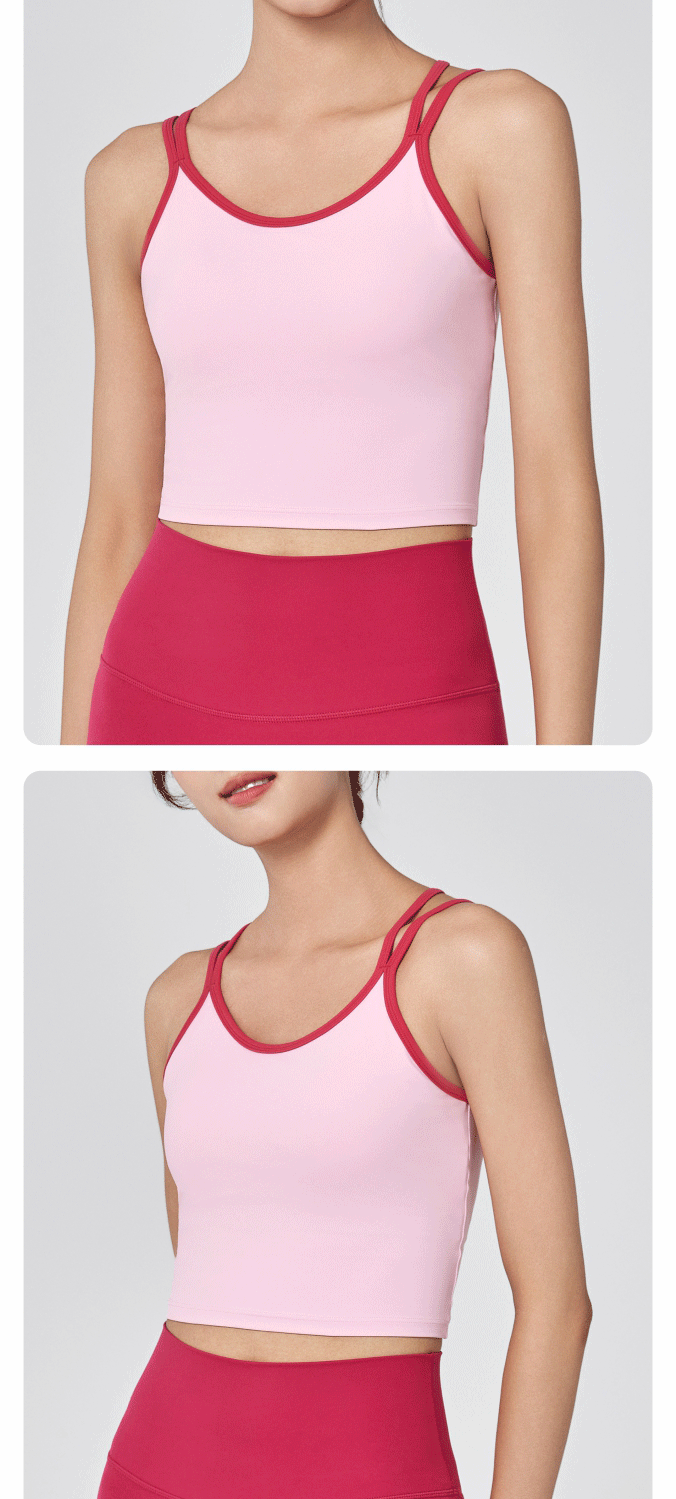 얇은 어깨 끈 아름다움 다시 중간 강도 요가 슬링 최고 스포츠 조끼 원피스 브래지어 고정 컵 스포츠 속옷