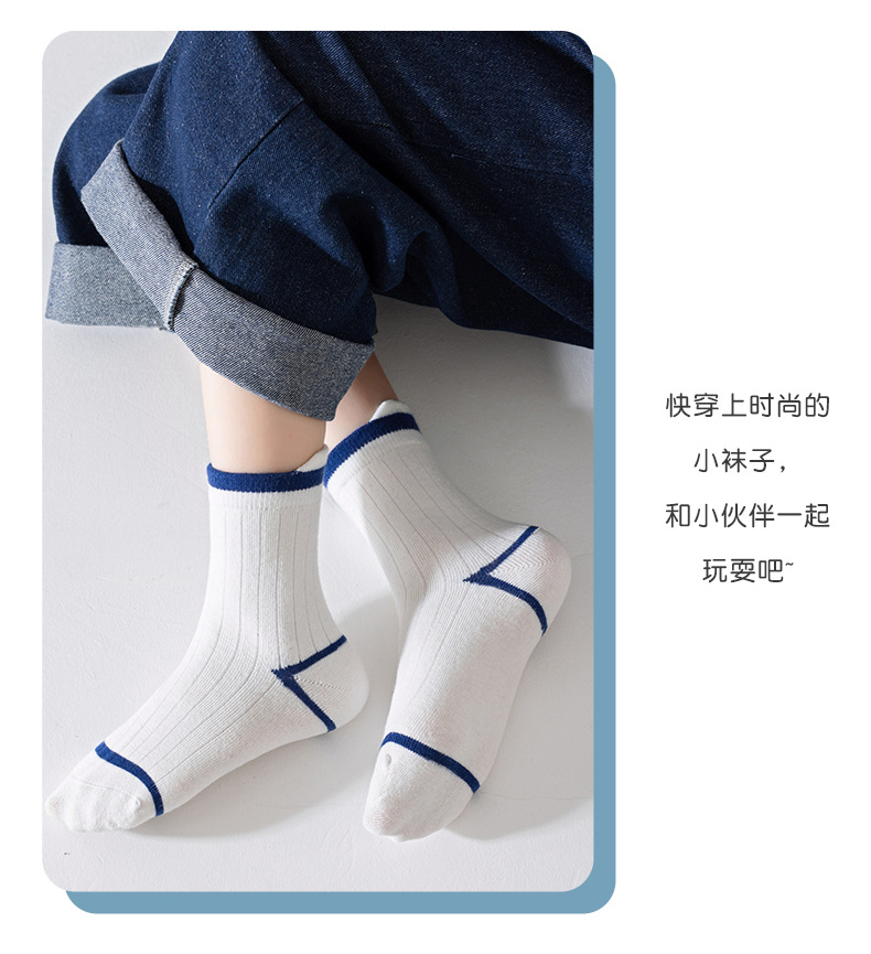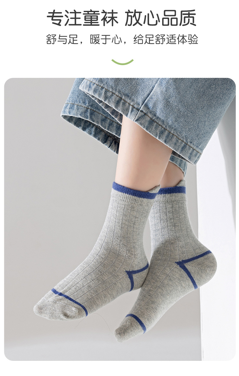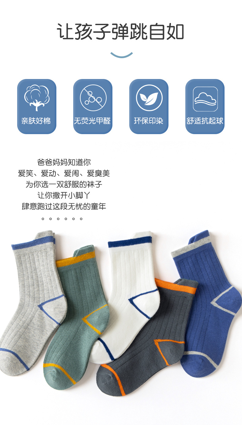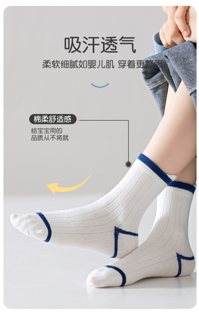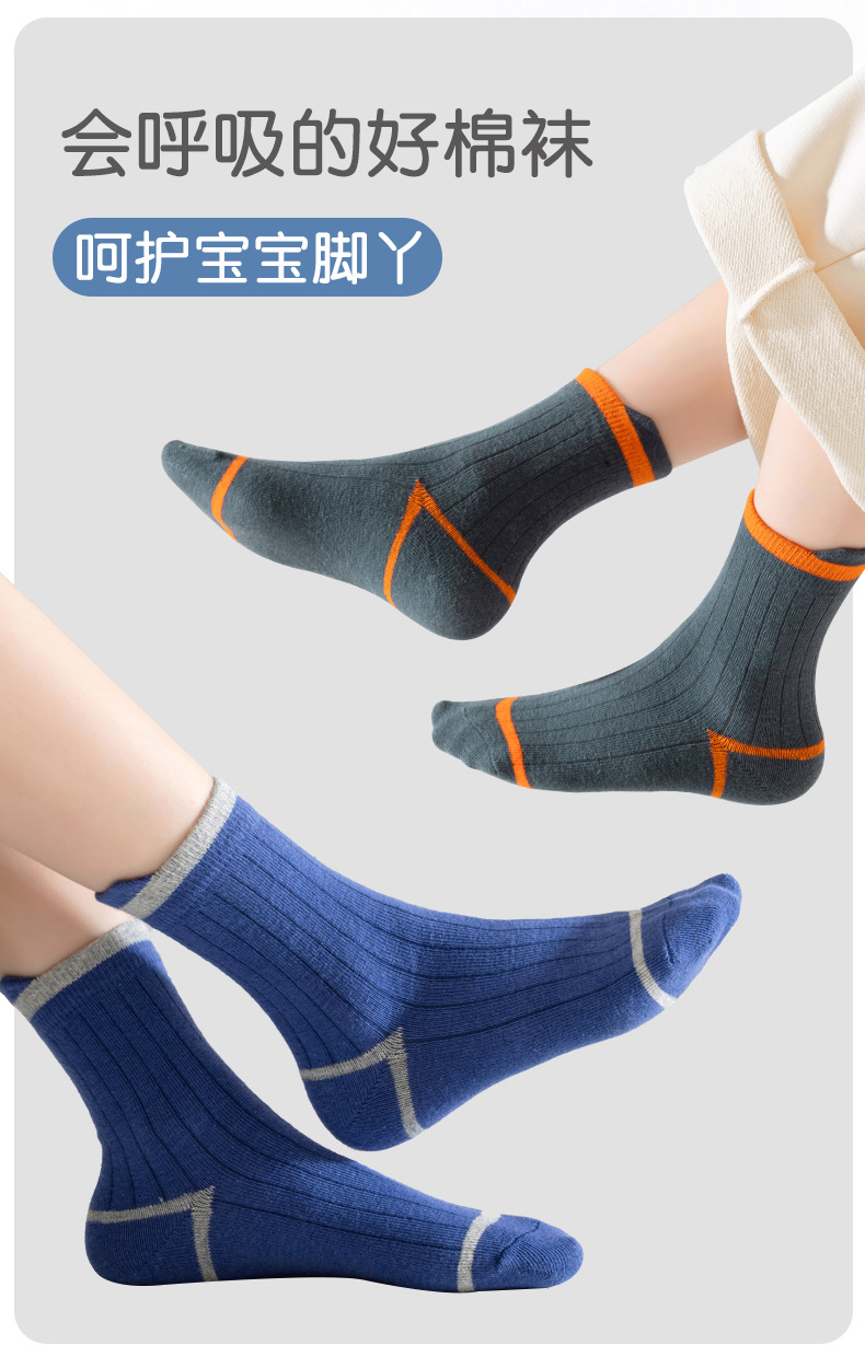 敏榴儿童袜子春秋季运动中筒袜立体后跟潮袜透气纯色百搭男童棉袜