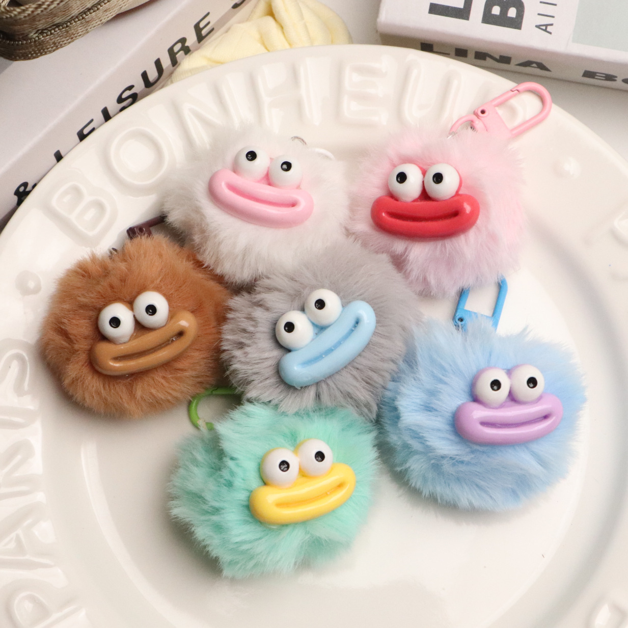 소시지 입 모피 볼 펜던트 귀여운 만화 큰 입 몬스터 키 체인 미운 귀여운 키 체인 가방 펜던트 학생 여자 친구