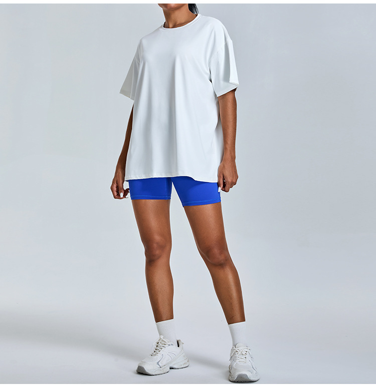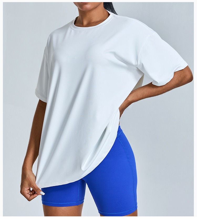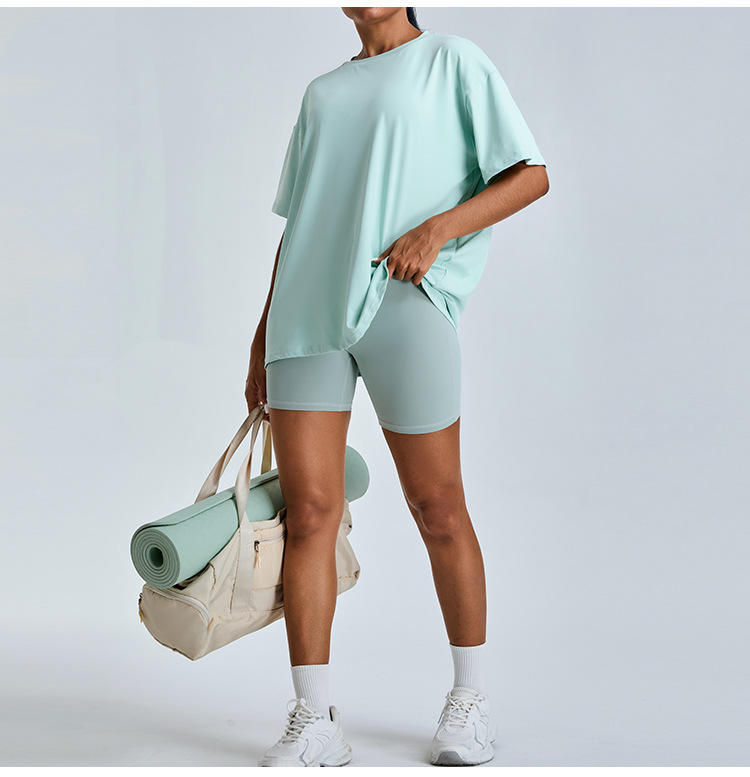 새로운 야외 통기성 스포츠 반팔 티셔츠 요가 옷 여성 올매치 느슨한 빠른 건조 경량 달리기 피트니스 탑