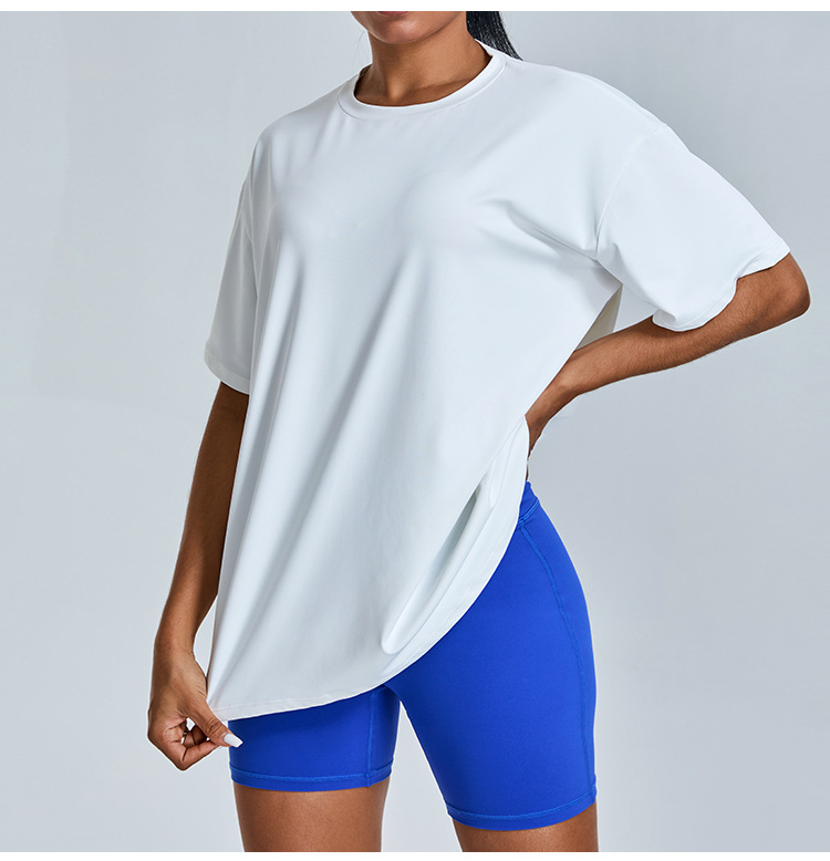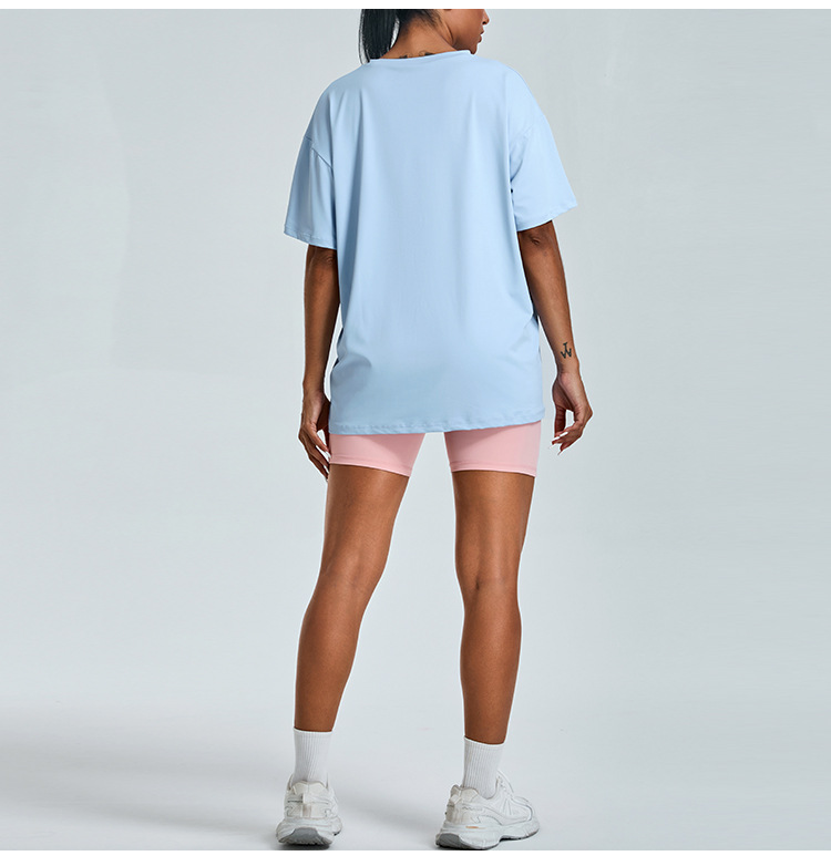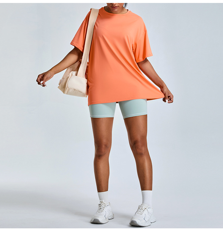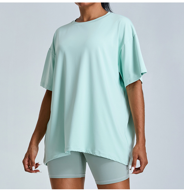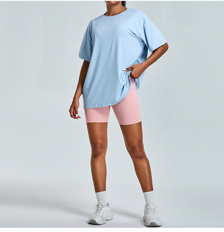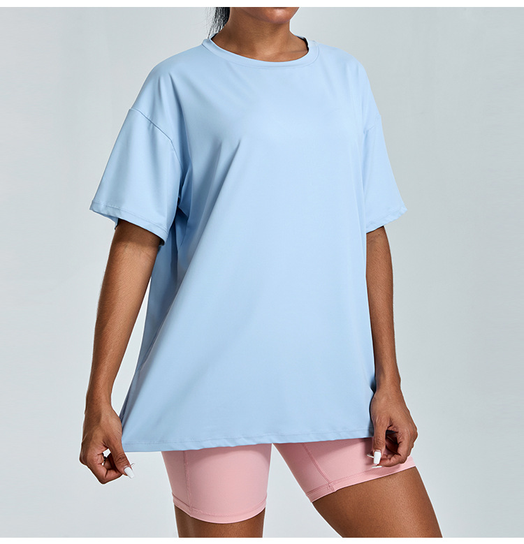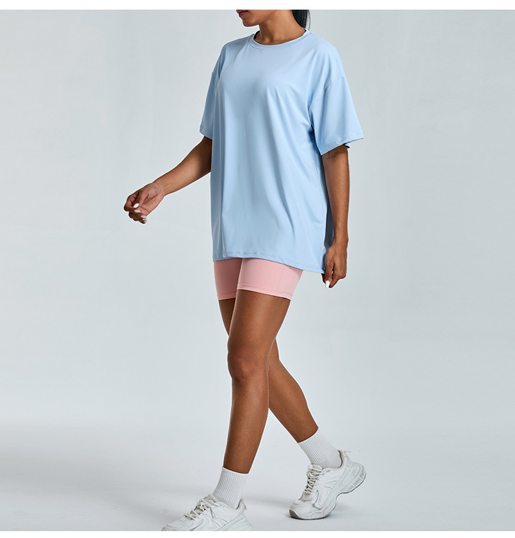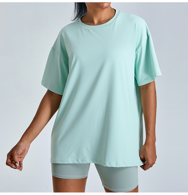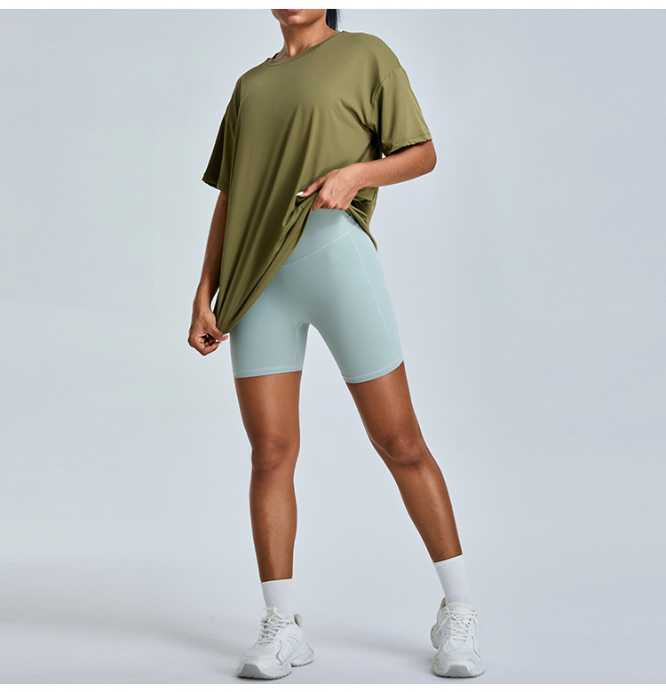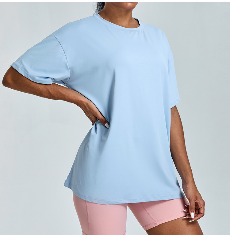 새로운 야외 통기성 스포츠 반팔 티셔츠 요가 옷 여성 올매치 느슨한 빠른 건조 경량 달리기 피트니스 탑스토어 가기