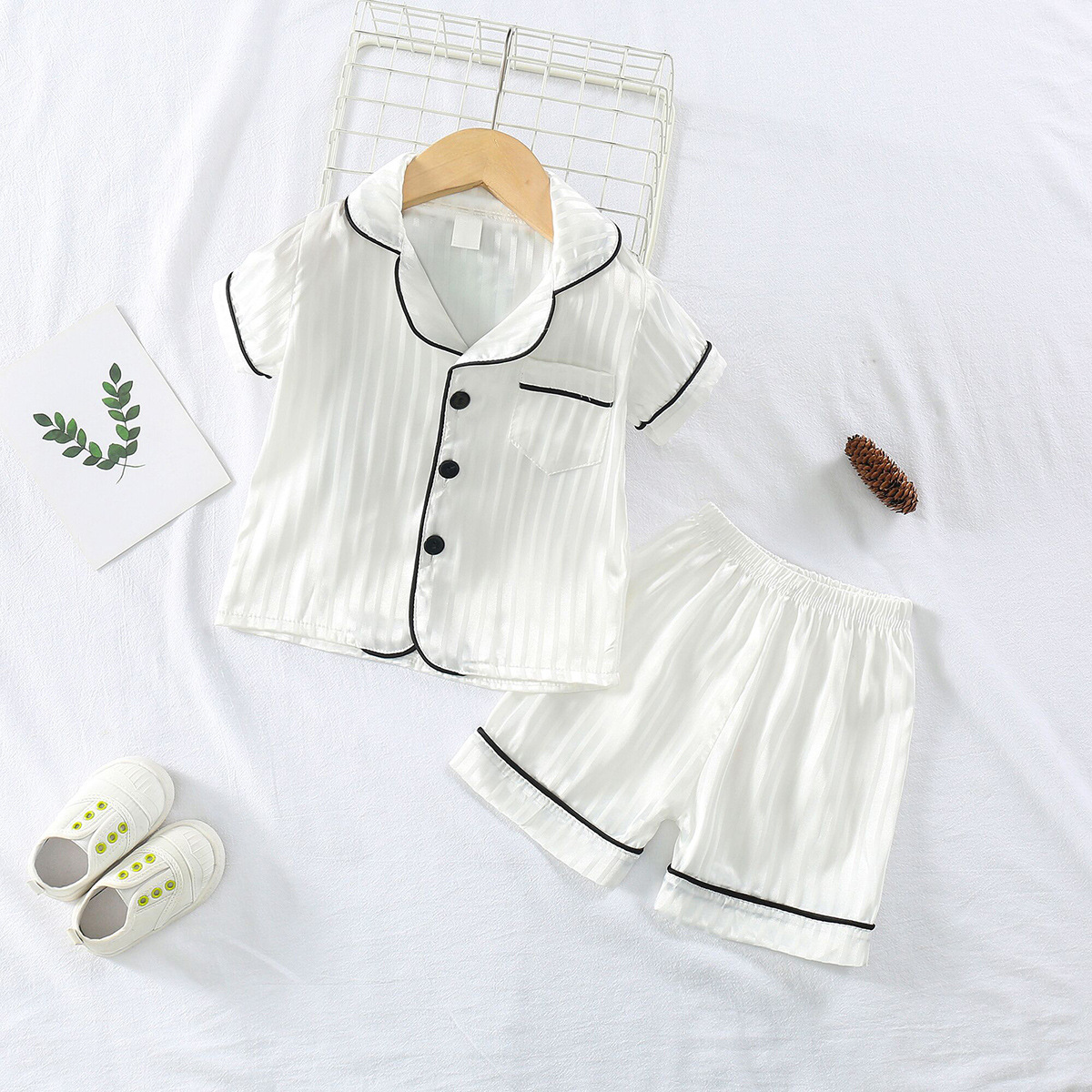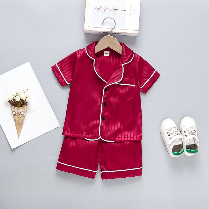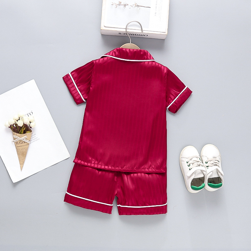 어린이 잠옷 세트 얼음 실크 얇은 섹션 아기 소녀 가정 의류 소년 시뮬레이션 실크 반팔 투피스 세트 대외 무역