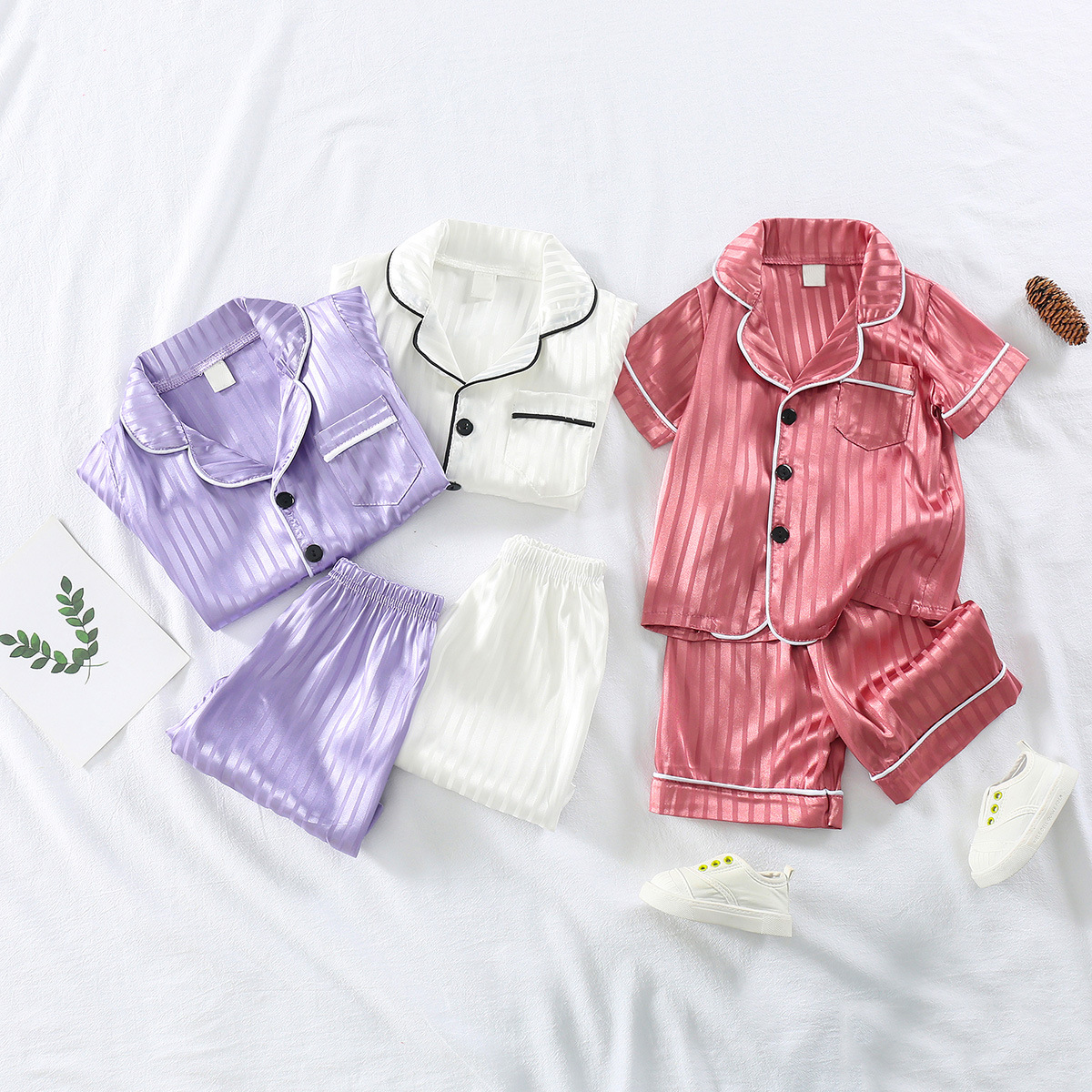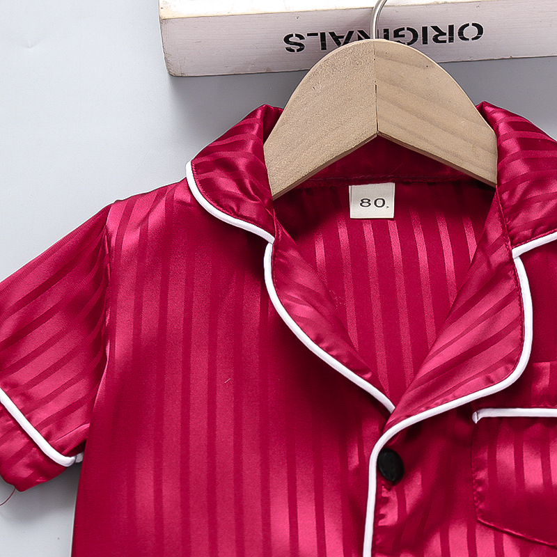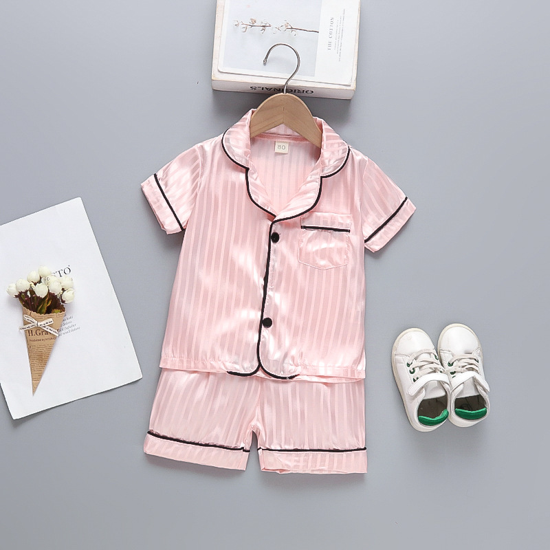 어린이 잠옷 세트 얼음 실크 얇은 섹션 아기 소녀 가정 의류 소년 시뮬레이션 실크 반팔 투피스 세트 대외 무역스토어 가기