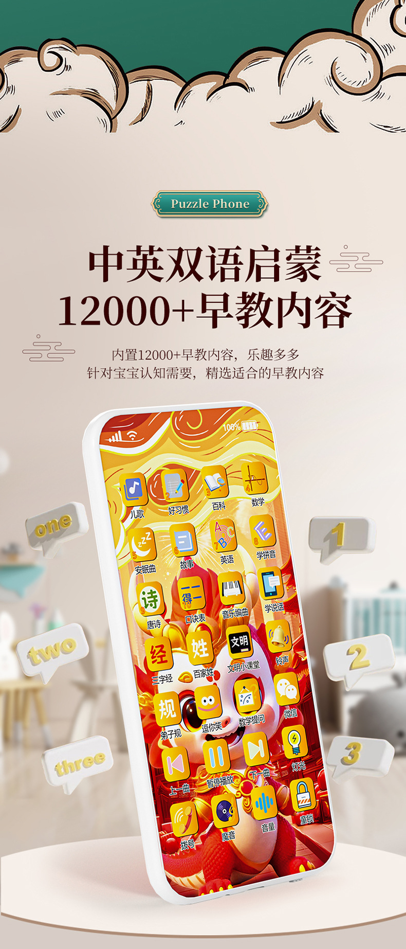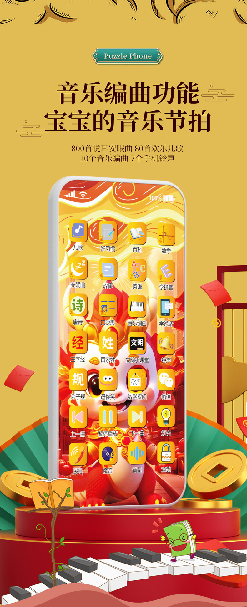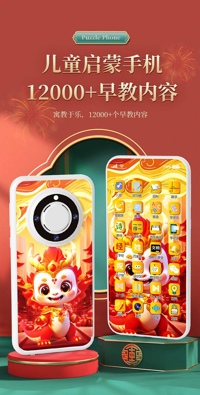 새로운 충전 다기능 어린이 휴대 전화 장난감 시뮬레이션 아기 터치 스크린 조기 학습 기계 다기능 음악스토어 가기