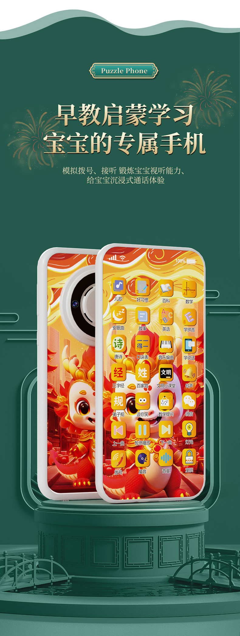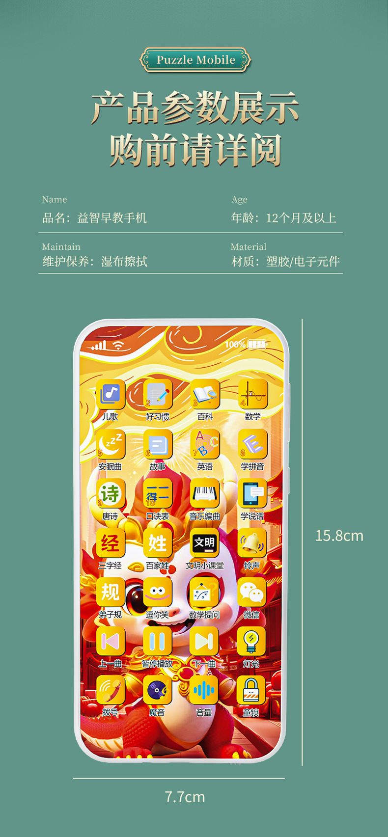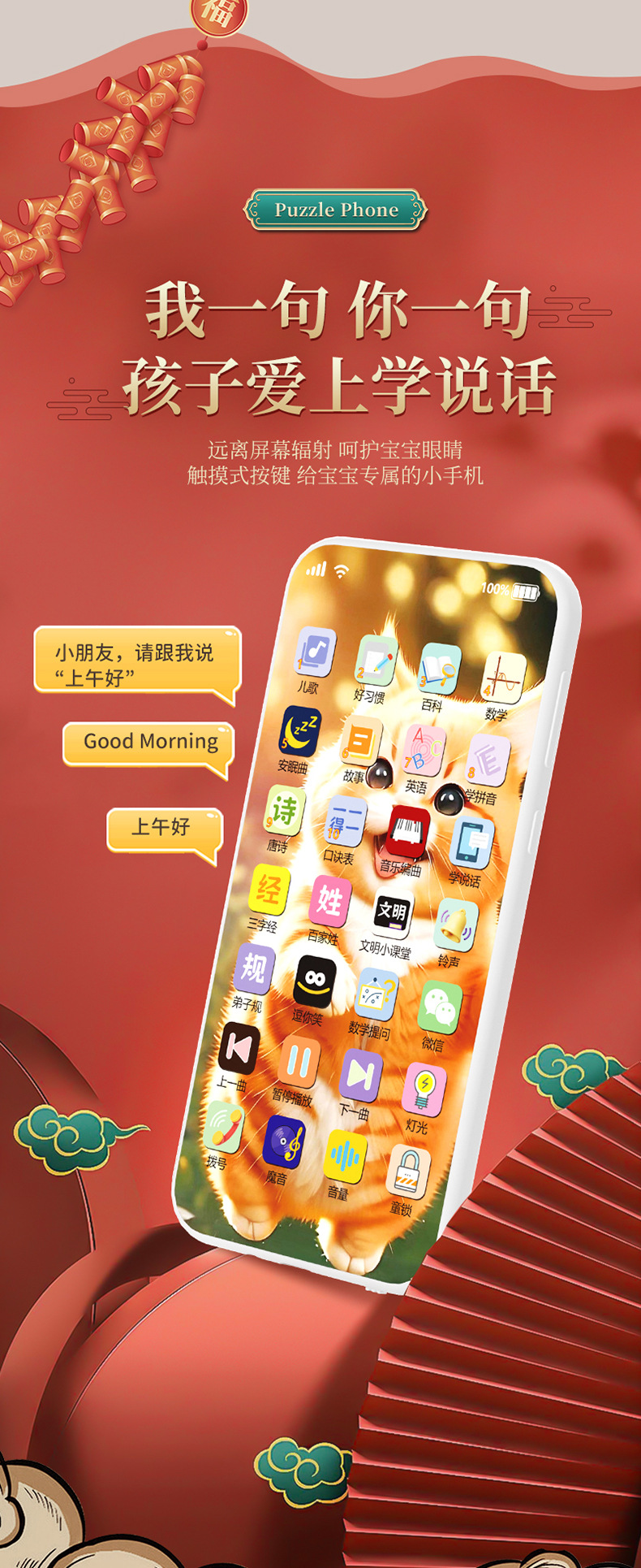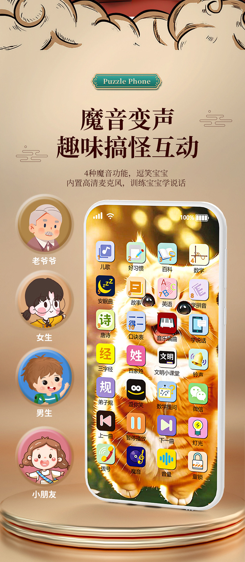 새로운 충전 다기능 어린이 휴대 전화 장난감 시뮬레이션 아기 터치 스크린 조기 학습 기계 다기능 음악스토어 가기