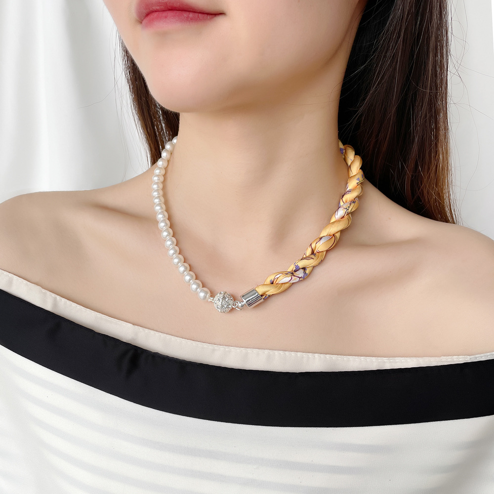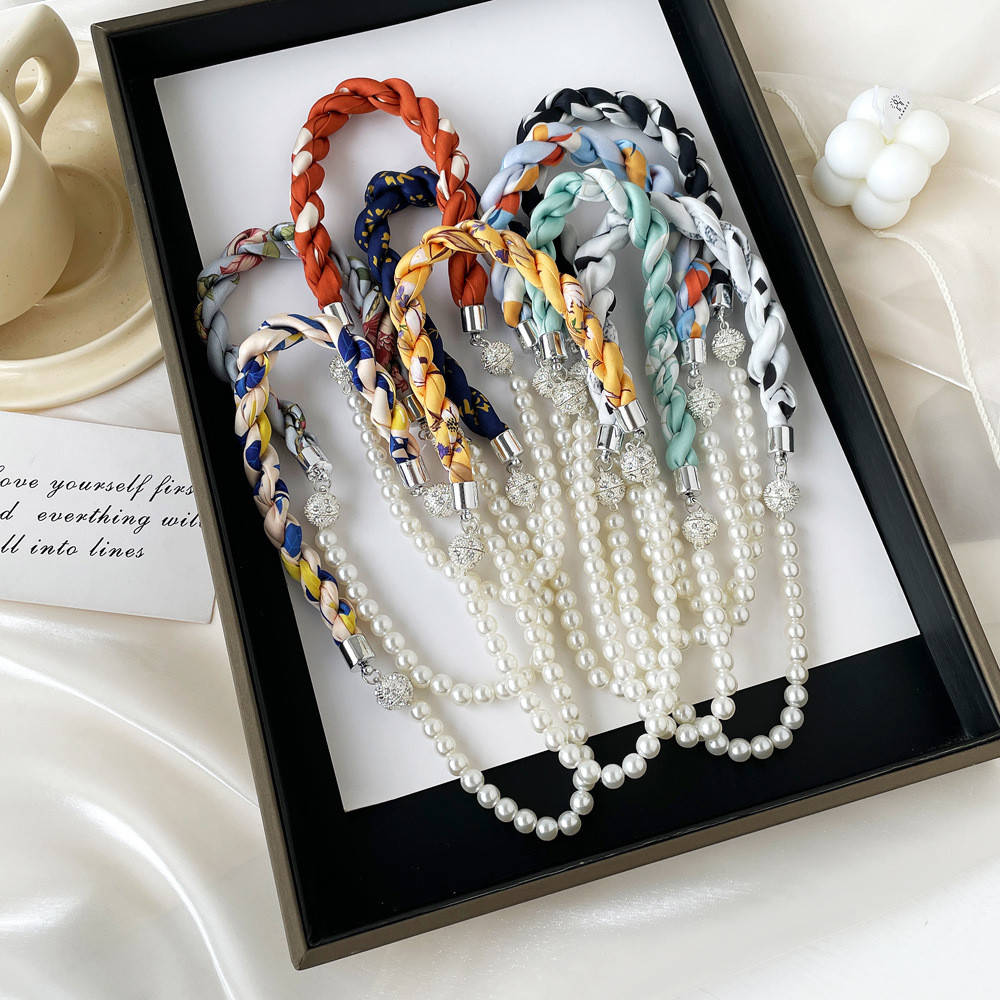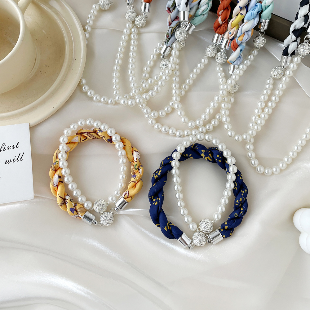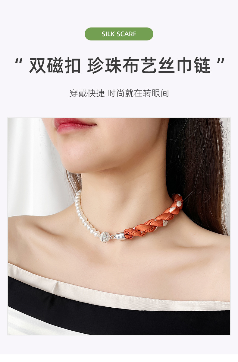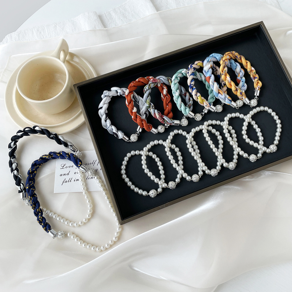 여름 새로운 진주 자석 버클 목걸이 스카프 여성용 틈새 하이 엔드 팔찌 우아한 쇄골 체인 스카프스토어 가기