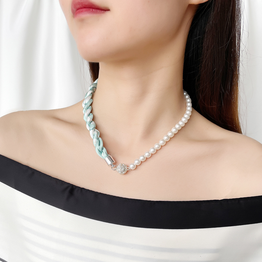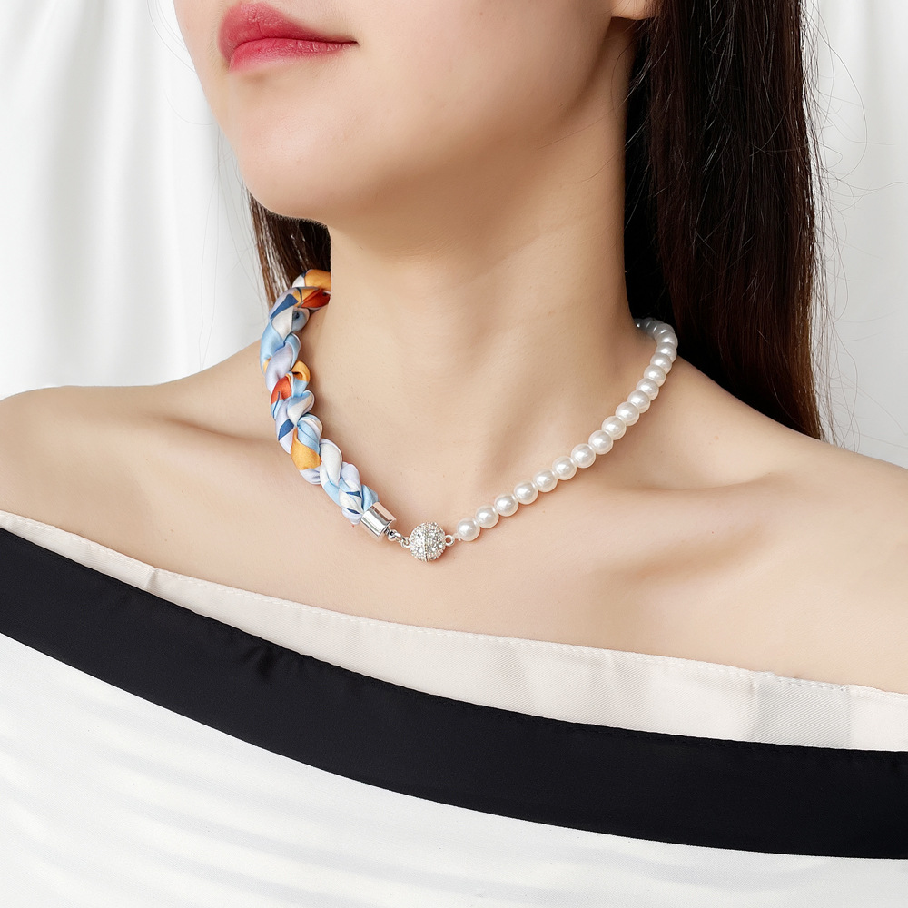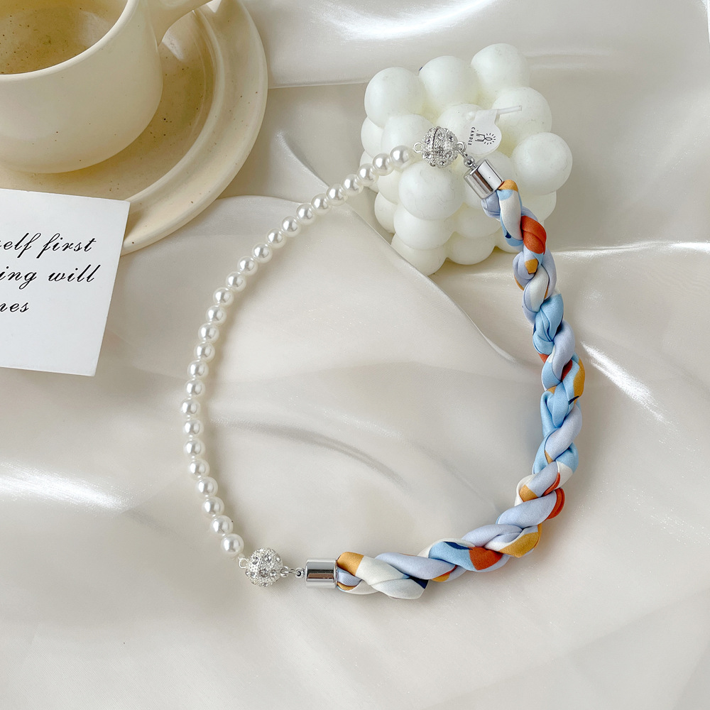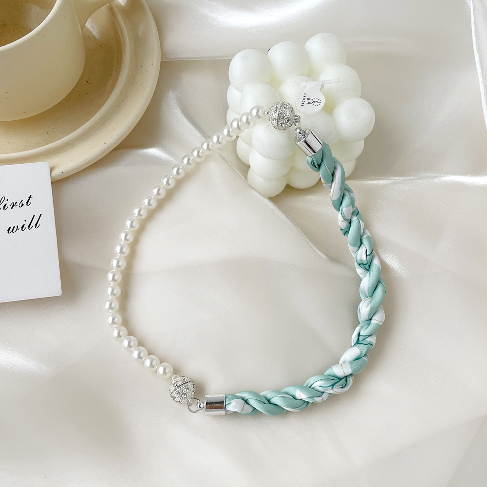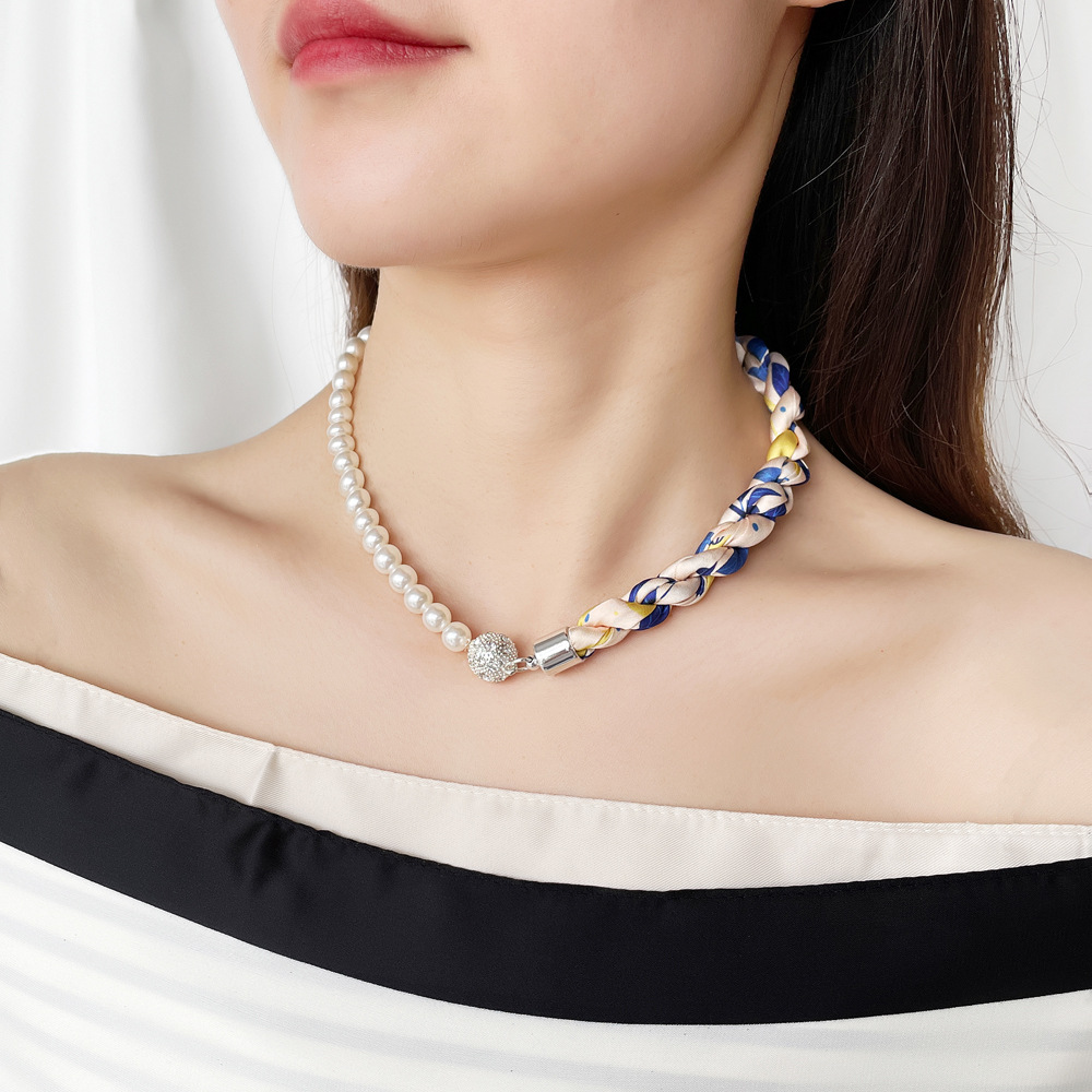 여름 새로운 진주 자석 버클 목걸이 스카프 여성용 틈새 하이 엔드 팔찌 우아한 쇄골 체인 스카프스토어 가기